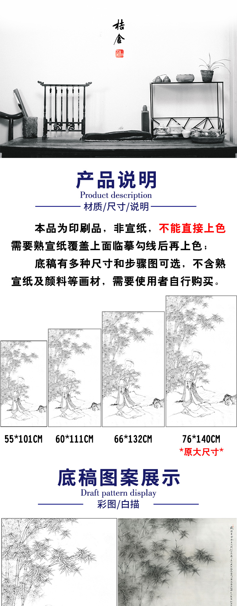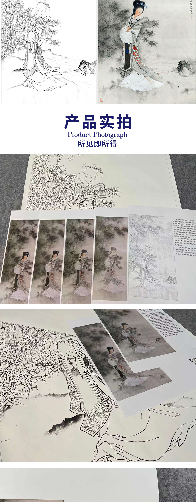 【有步骤、大彩图】李晓明竖幅工笔传统仕女人物画白描底稿《临王叔晖仕女图》KG22