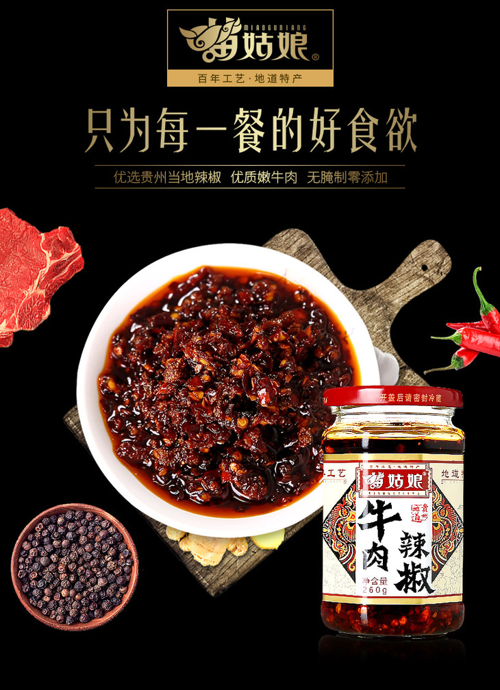 苗姑娘 牛肉辣椒酱 拌饭酱香辣辣椒酱下饭酱260g*2