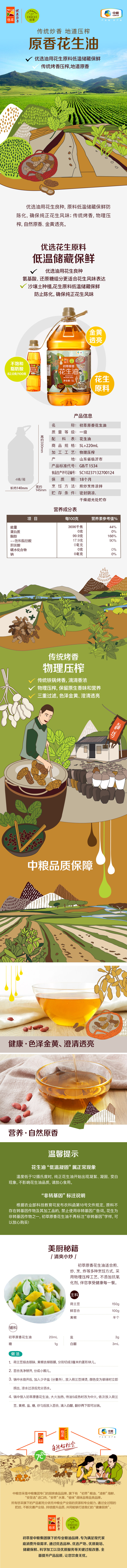 中粮初萃 原香花生油5L+220ml 中粮食用油
