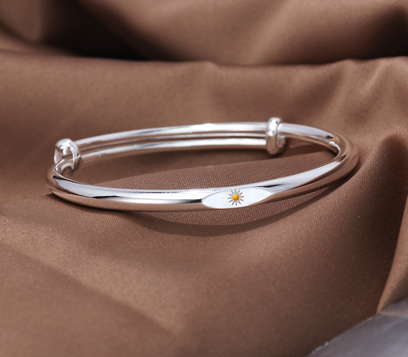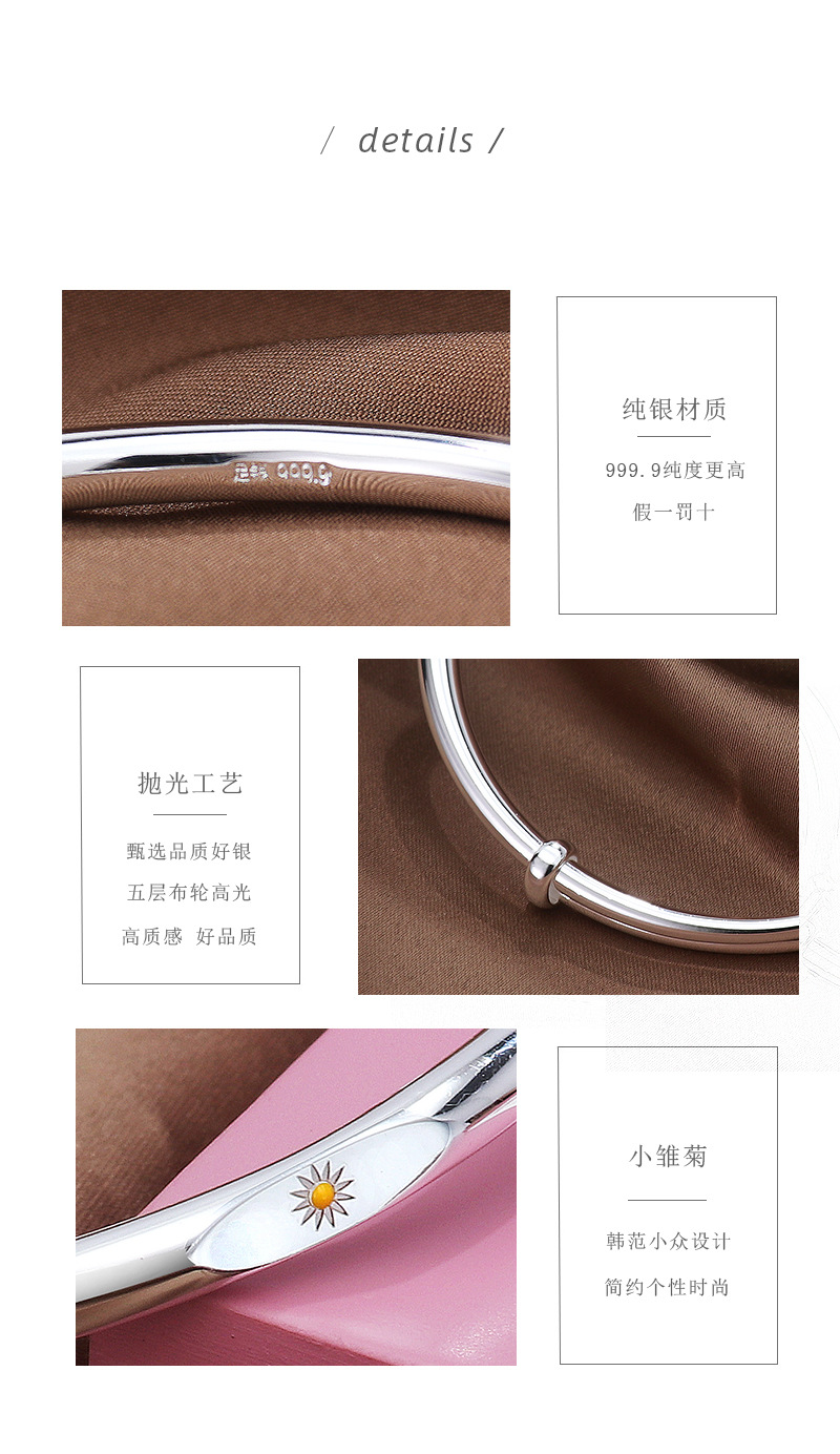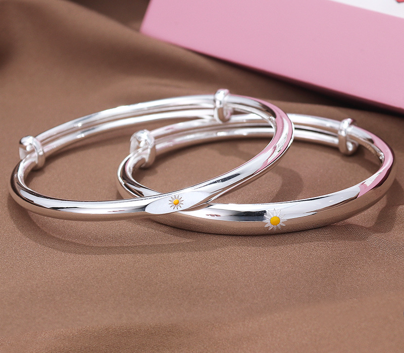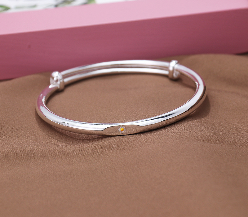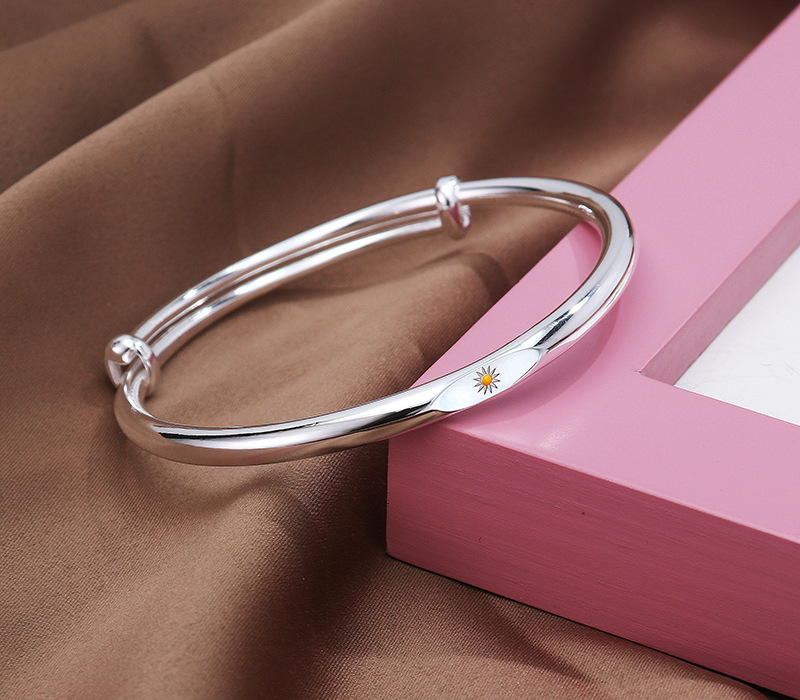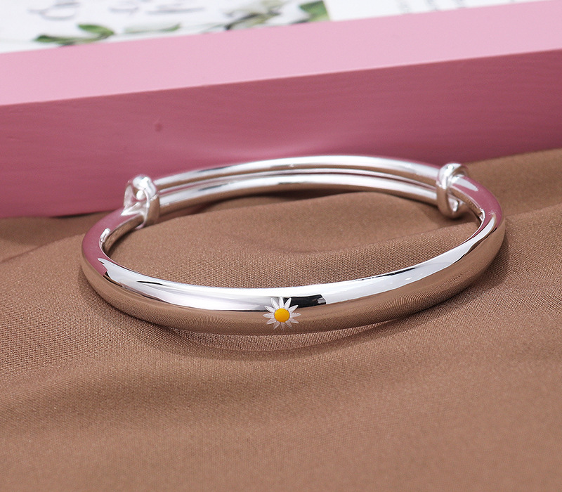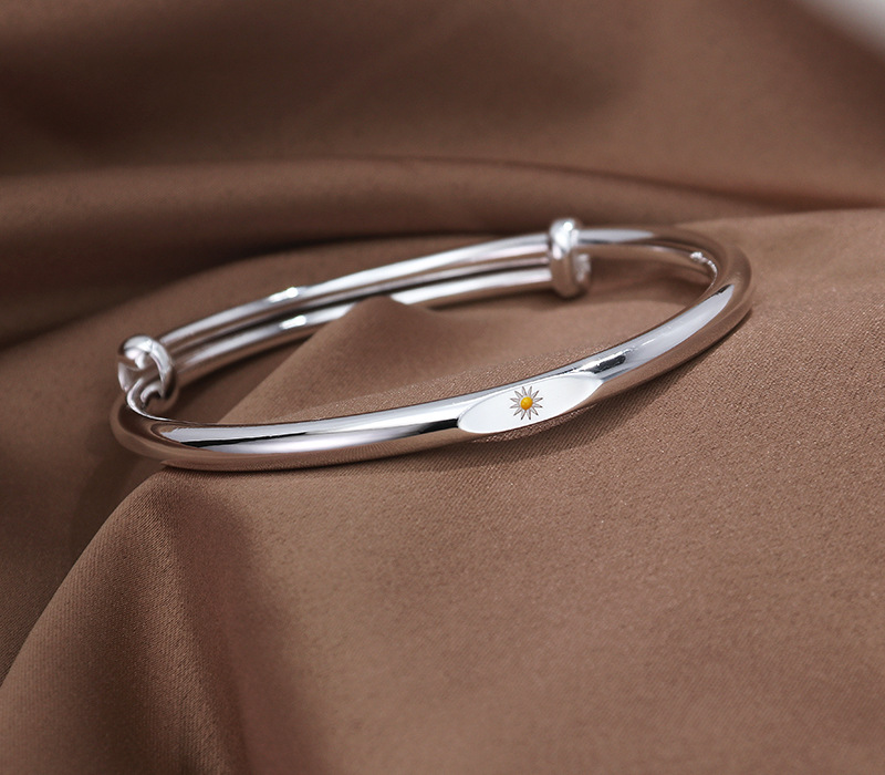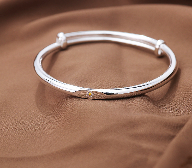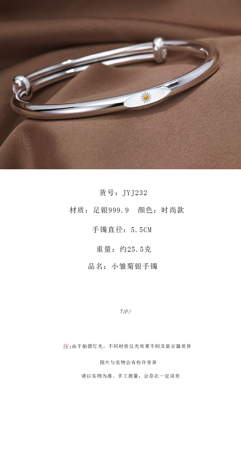 KKY-JYJ232小雏菊万足银手镯 生日礼物正品实心圆棍银镯子