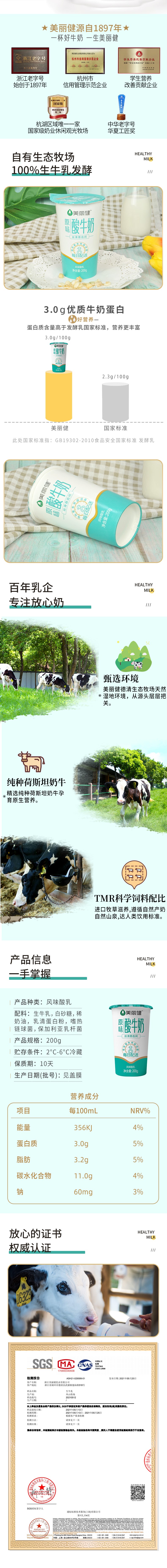 【每日鲜配】美丽健牌纸杯原味酸牛奶200g(低温酸奶,月套餐,每日配送)