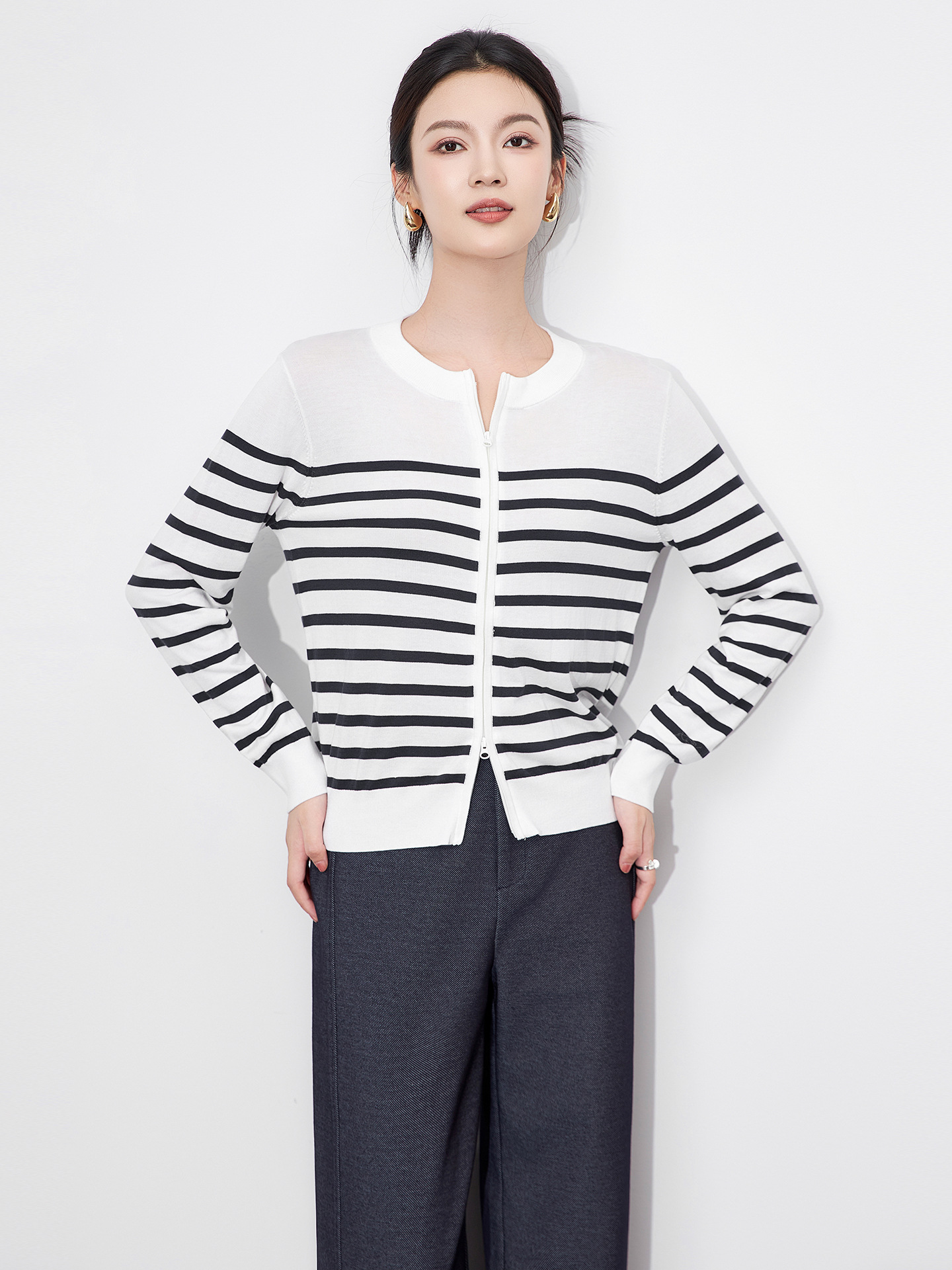 轻奢老钱风松弛,休闲条纹针织开衫毛衣WLZD-2511812