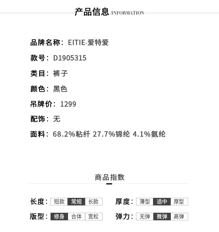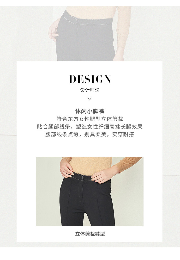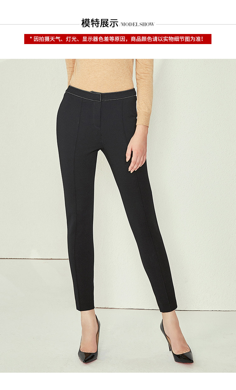 EITIE爱特爱女装新款黑色高腰修身显瘦运动休闲小脚裤长D1905315