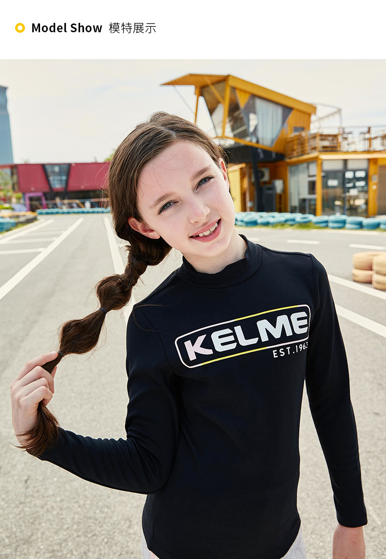 kelme(kids)女童春秋装长袖T恤儿童打底衫上薄款
