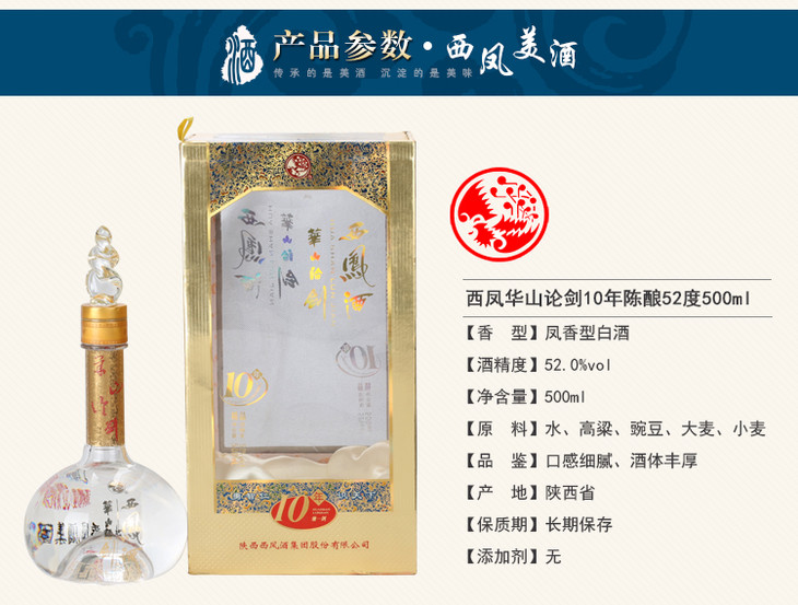 【推荐】西凤 西凤华山论剑10年 52度 500ML*6 【整箱装】