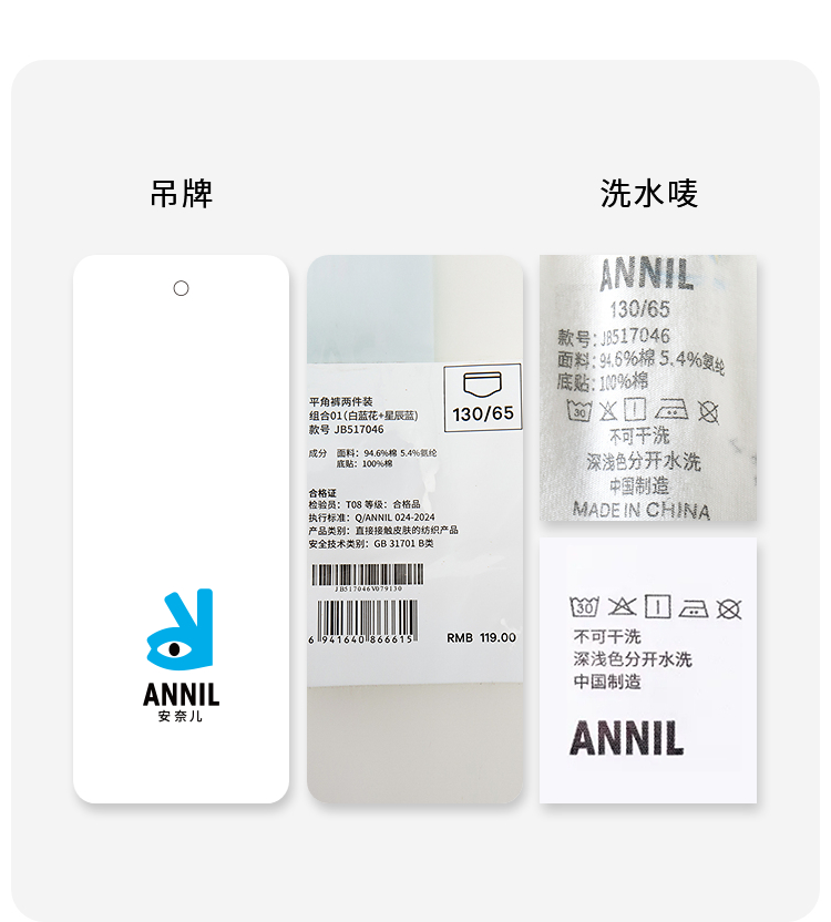 男童平角裤两件装春季新款安奈儿童装JB517046