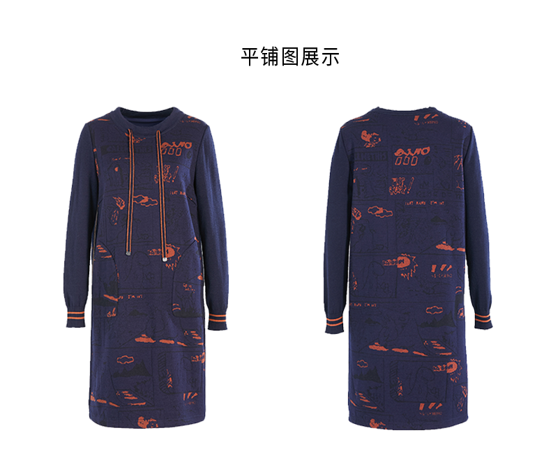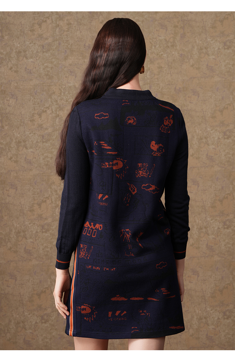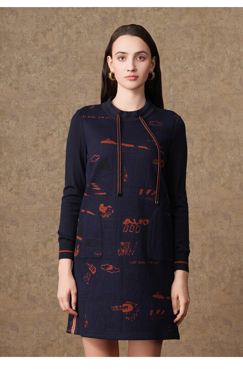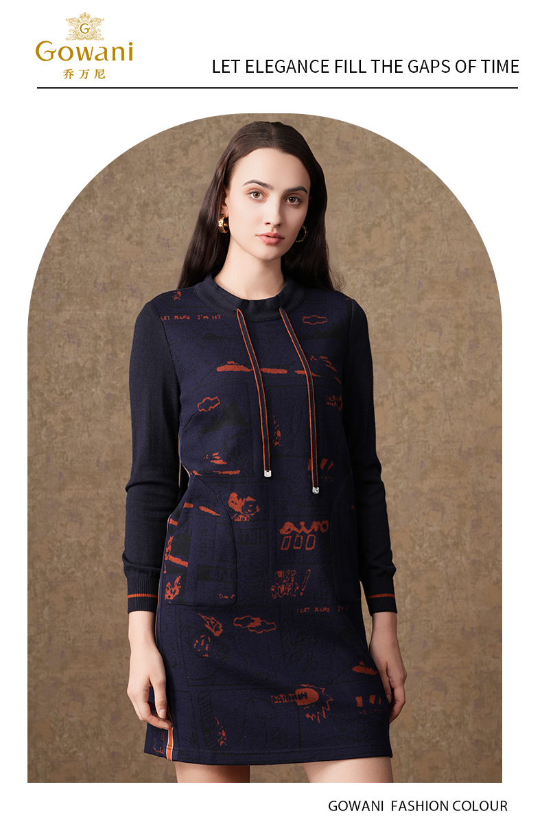 乔万尼秋冬新款针织修身绵羊毛针织面料撞色设计感圆领长袖连衣裙ES4E337