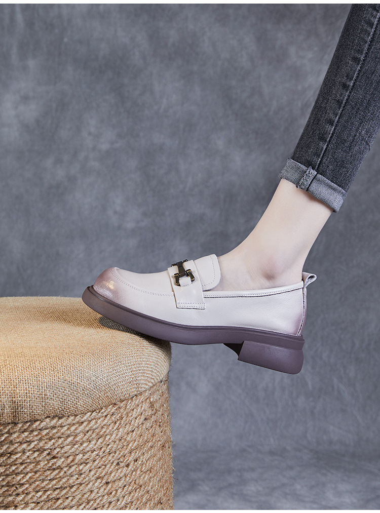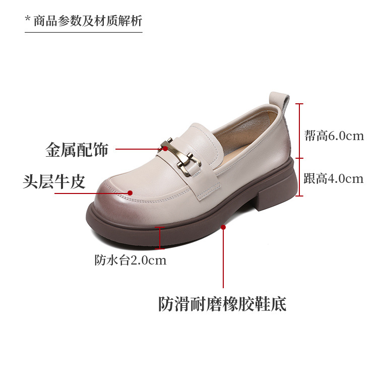 ZM 24A607真牛皮乐福鞋厚底金属扣休闲鞋一脚蹬单鞋 商品图4