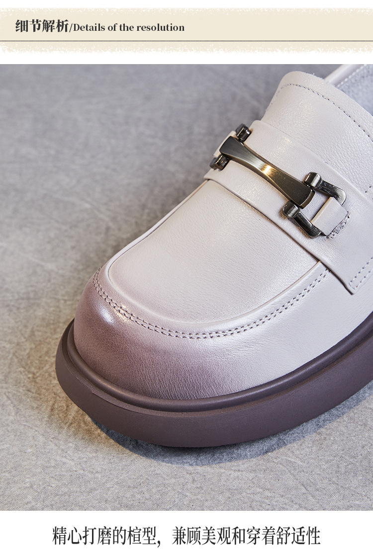 ZM 24A607真牛皮乐福鞋厚底金属扣休闲鞋一脚蹬单鞋 商品图2