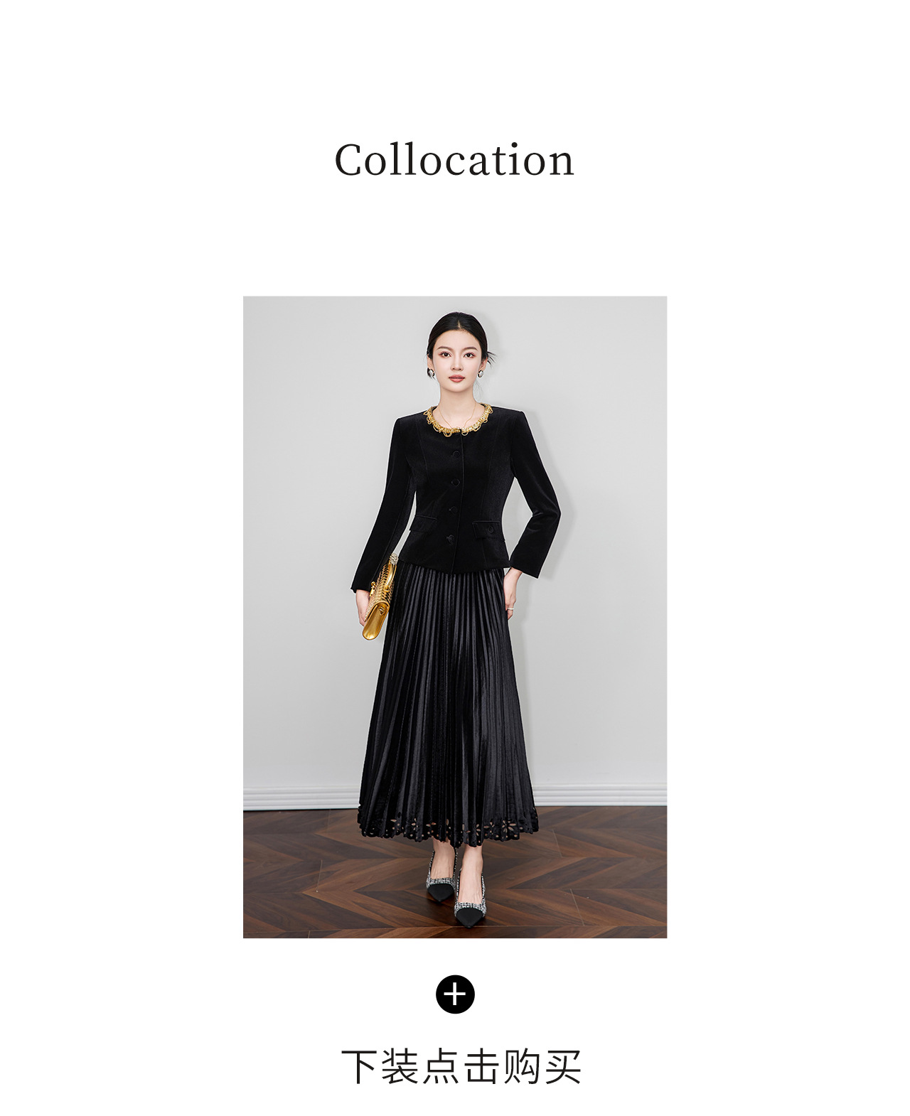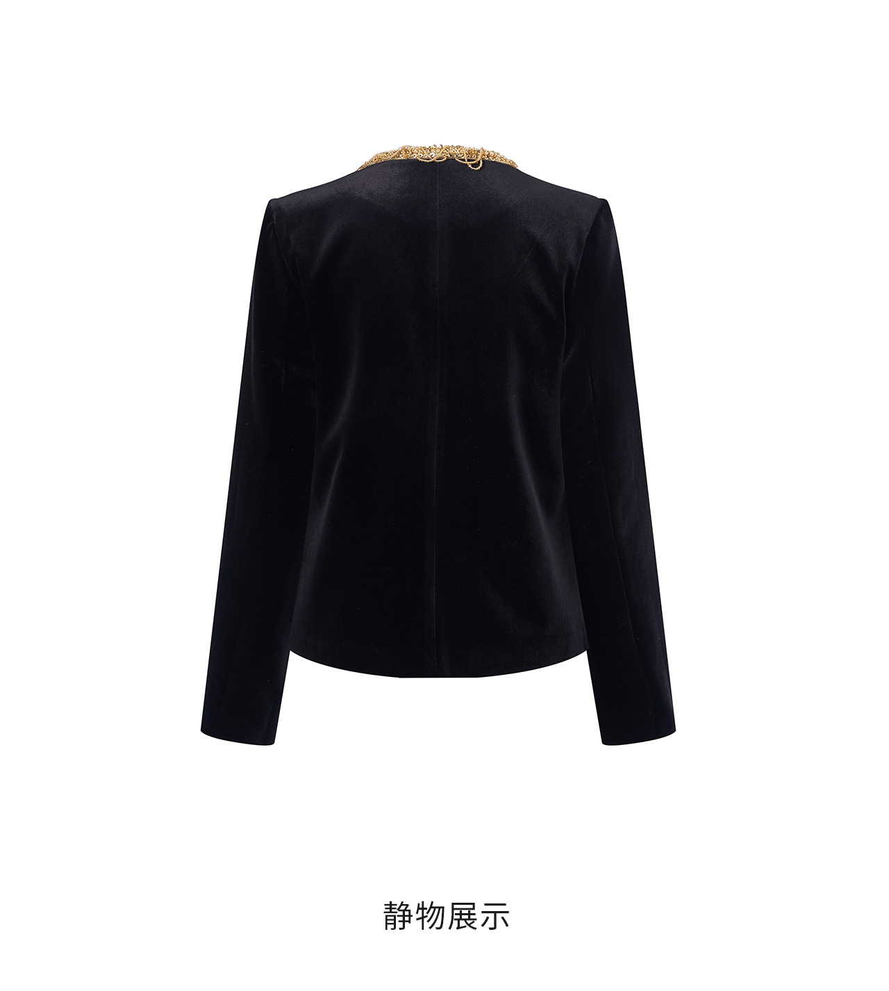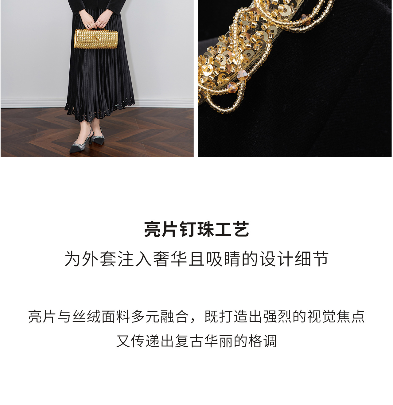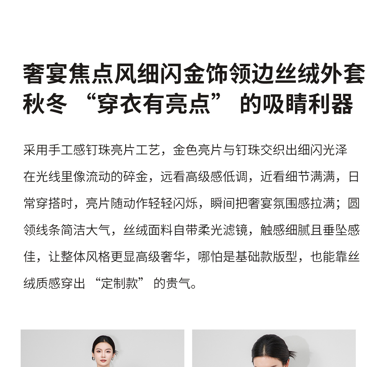 「高货wl」全新升级【铂金会员339/天猫459/差价120】(83657)洛诗琳2025秋冬轻奢名媛重工钉珠领丝绒小香风短款外套女