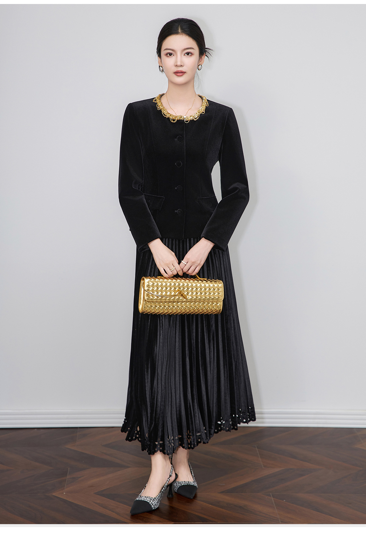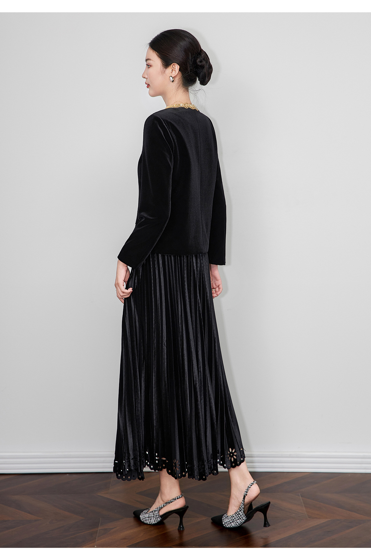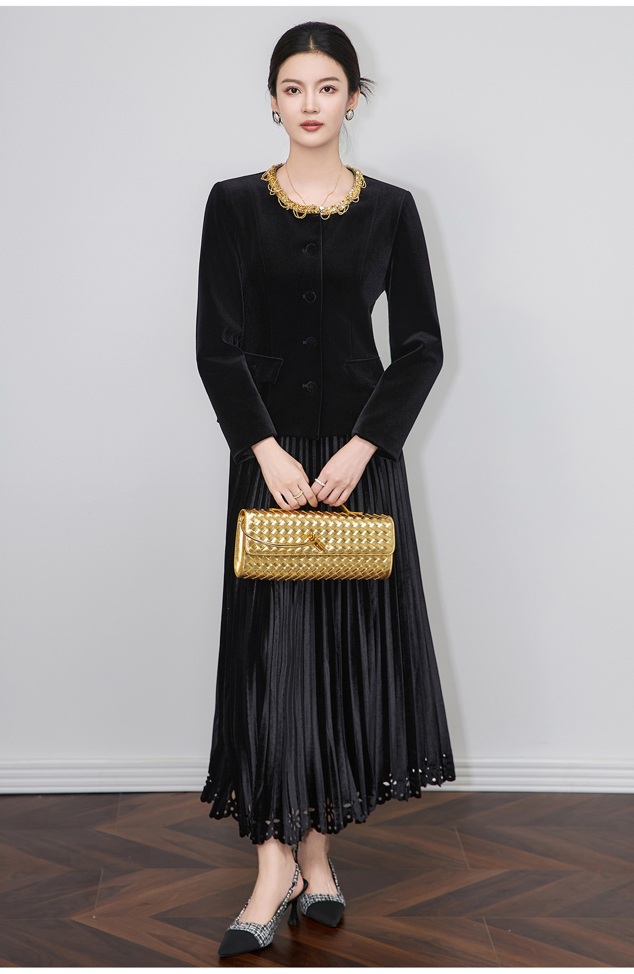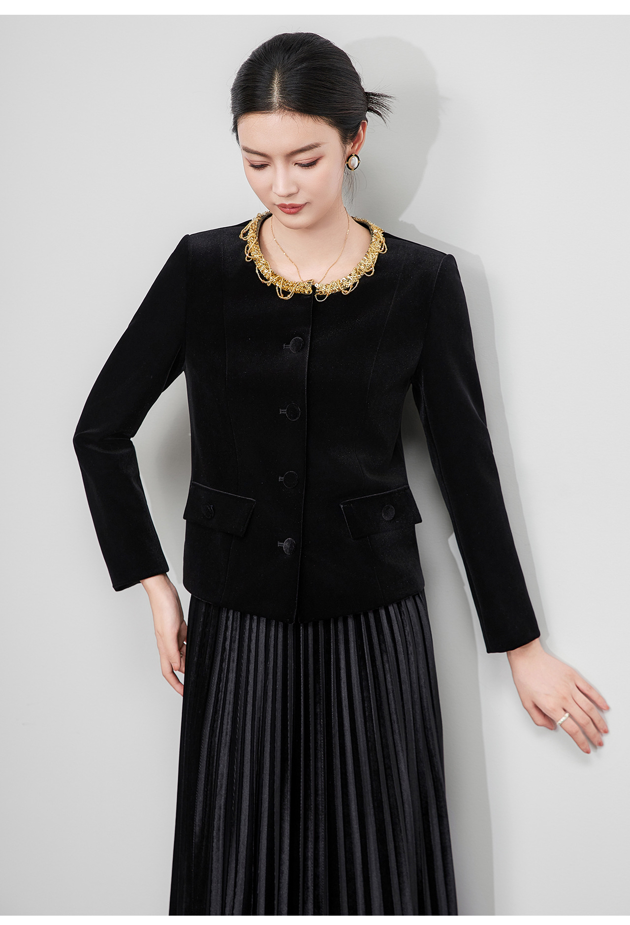 「高货wl」全新升级【铂金会员339/天猫459/差价120】(83657)洛诗琳2025秋冬轻奢名媛重工钉珠领丝绒小香风短款外套女