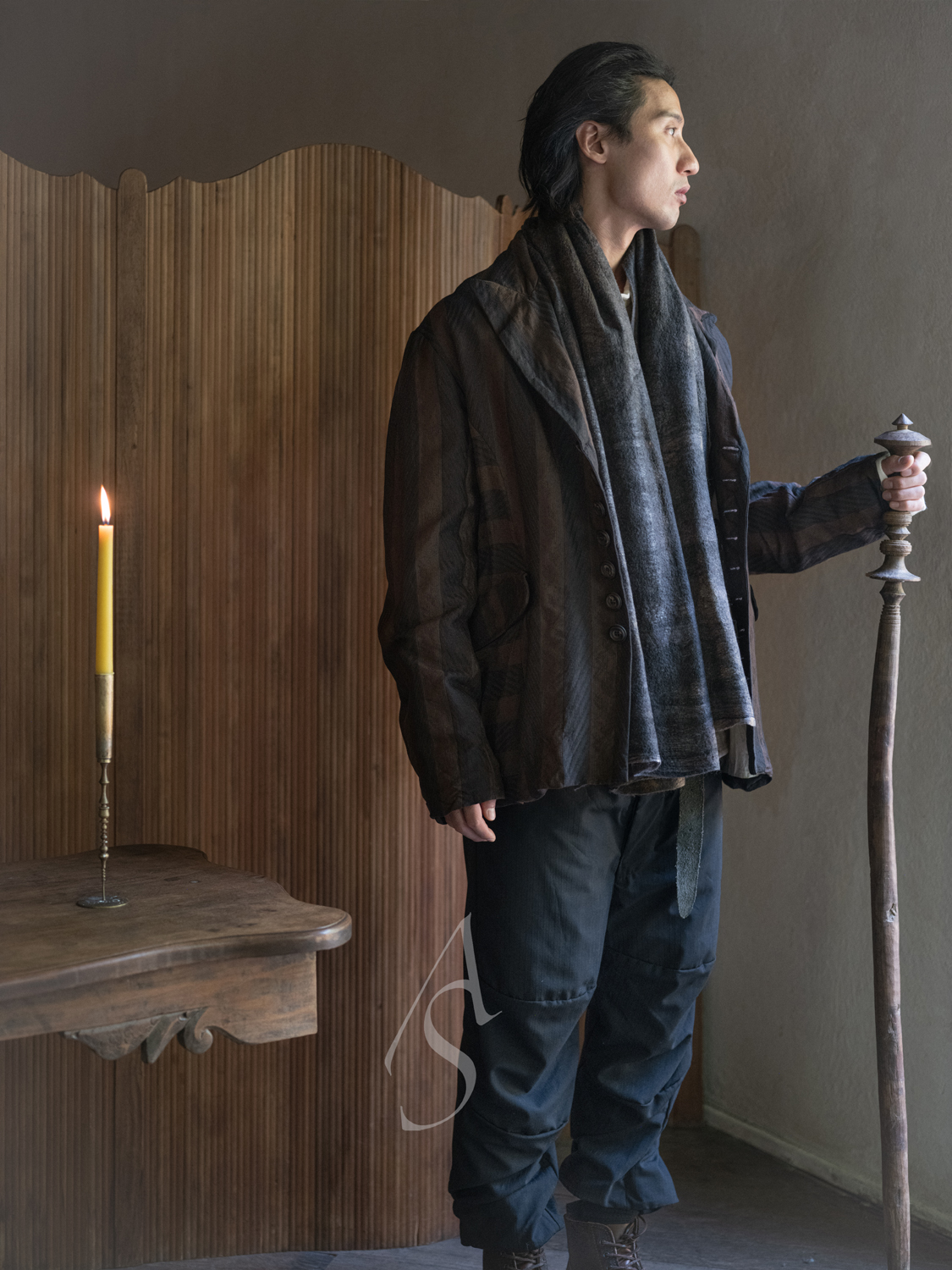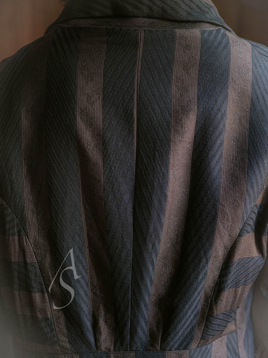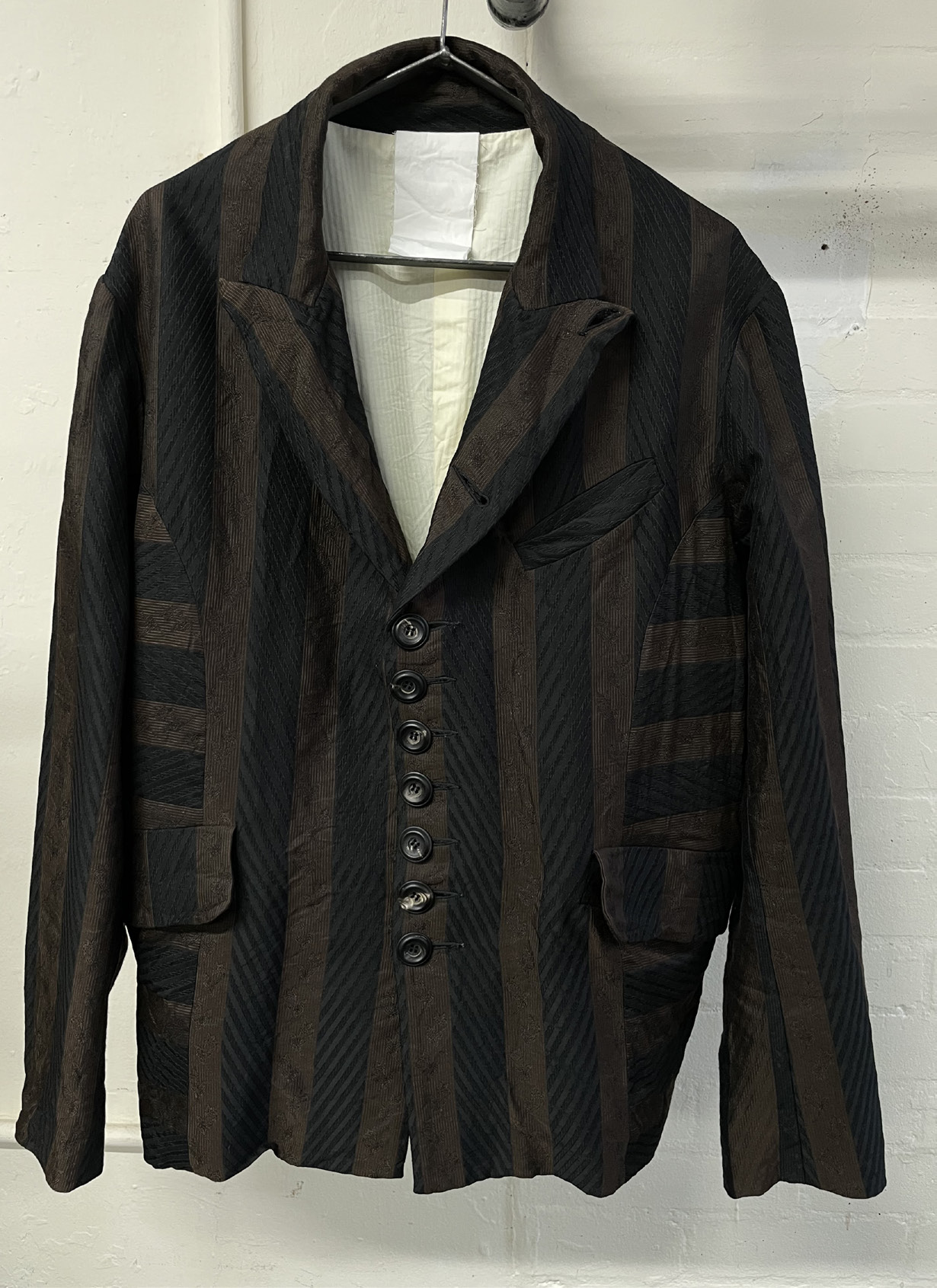 John Alexander Skelton 25AW 黑棕条纹蜂鸟提花丝棉中世纪夹克