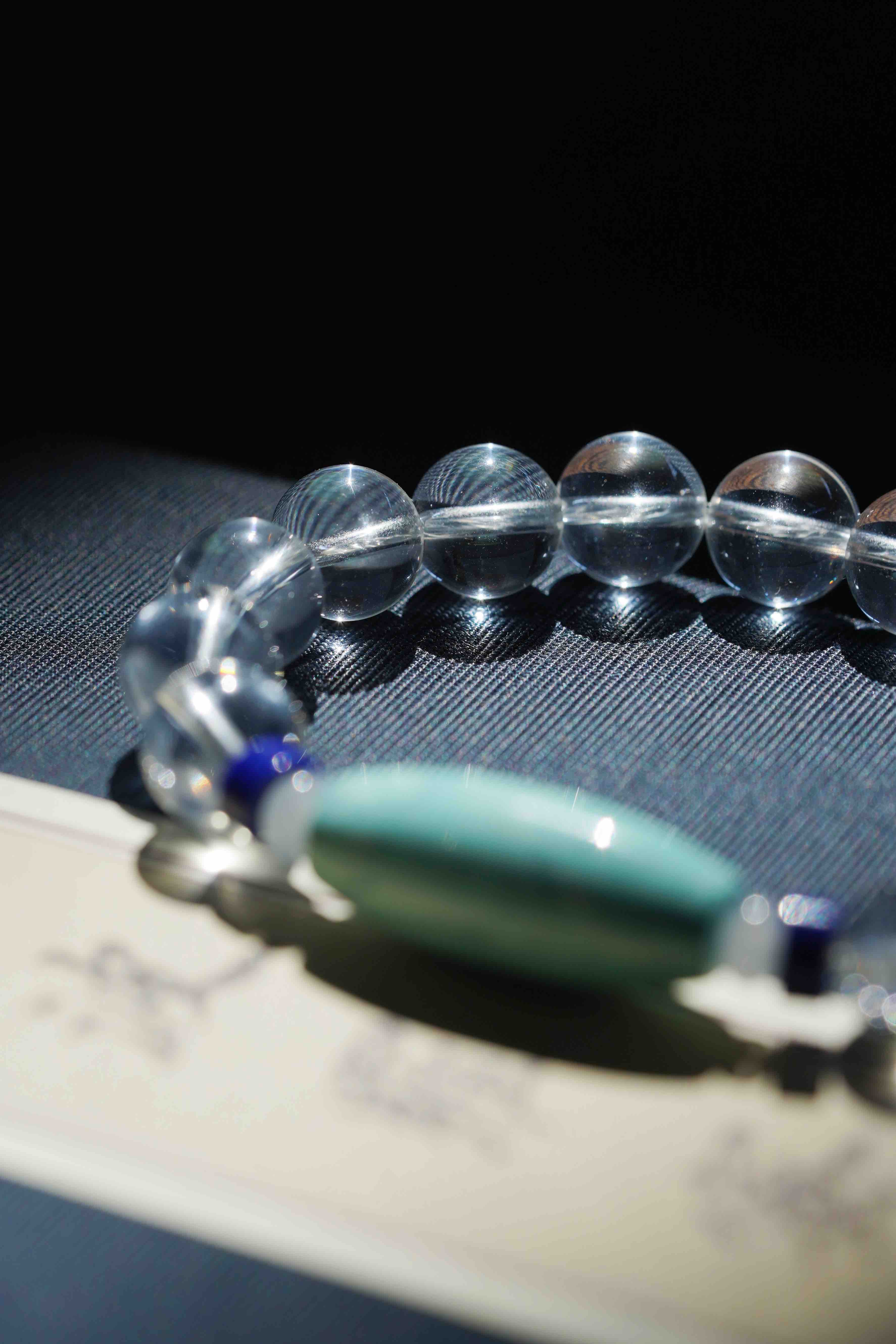单独一颗绿松是美,但是搭配了白水晶