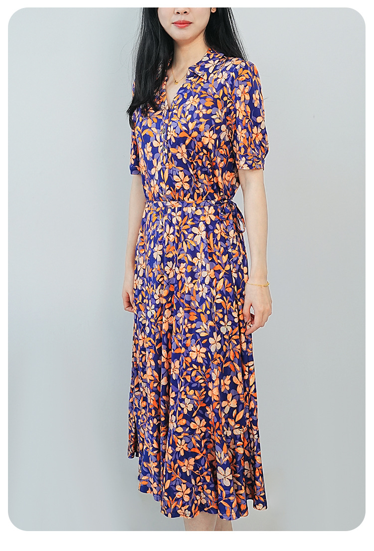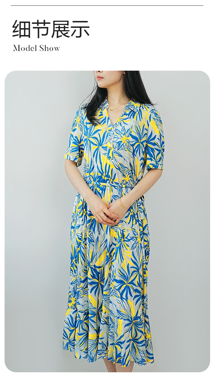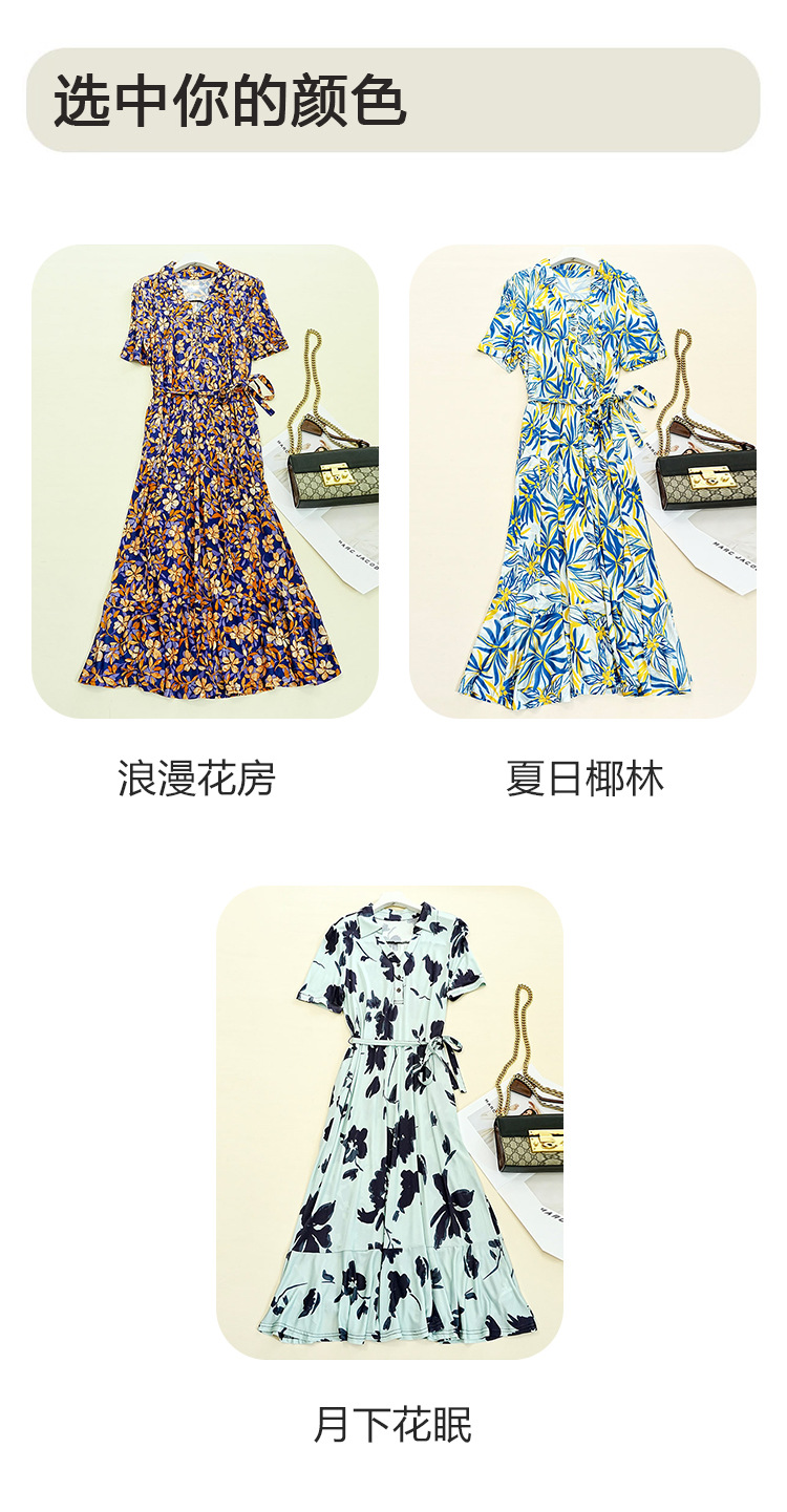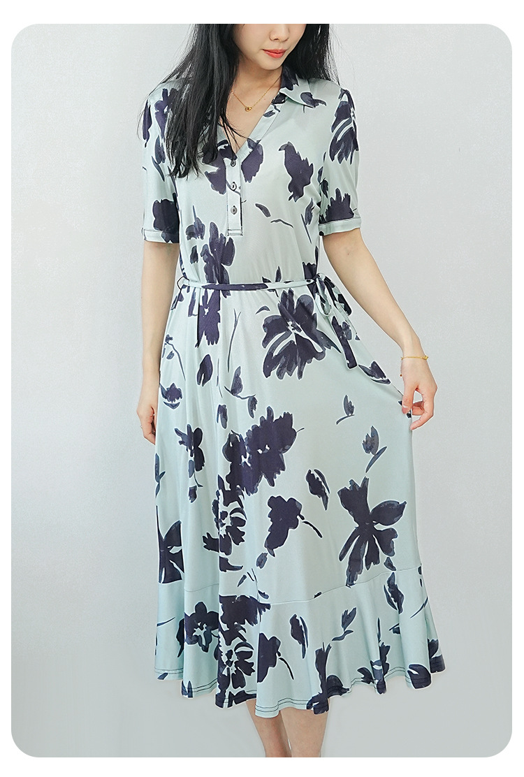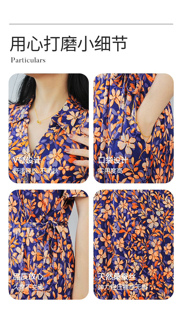 丁摩 桑蚕丝V领翻领收腰连衣裙S351