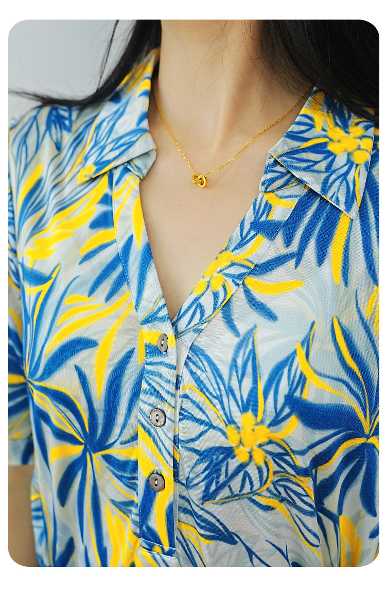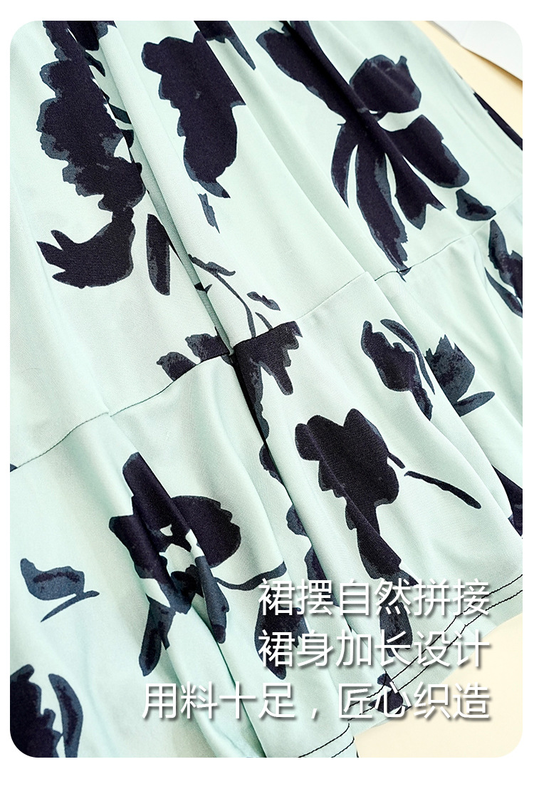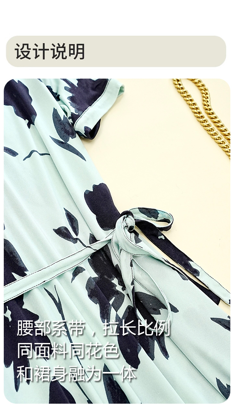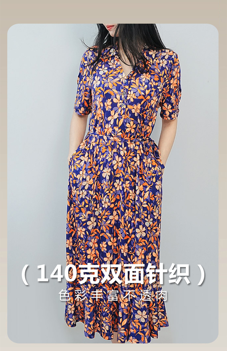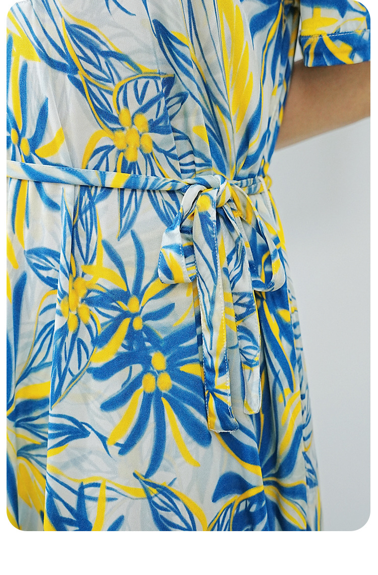 丁摩 桑蚕丝V领翻领收腰连衣裙S351