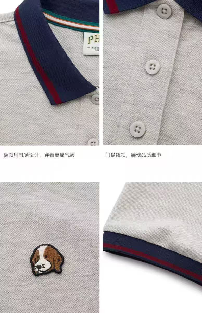 宋佳同款‼️胸前是哈家立体的小狗刺绣,瓦片式立体设计,图案立体生动,刺绣线迹扎实,狗狗形态逼真自然,100%纯棉珠地网眼面料,布面网孔细密紧实,夏天穿清爽不热,吸汗透气不粘身,会呼吸的空气感~