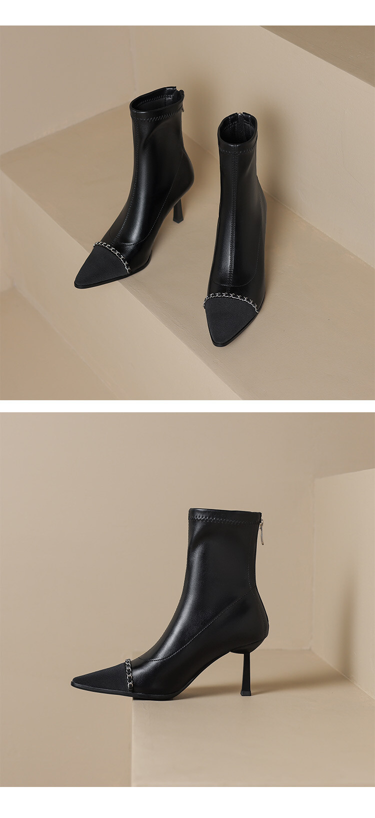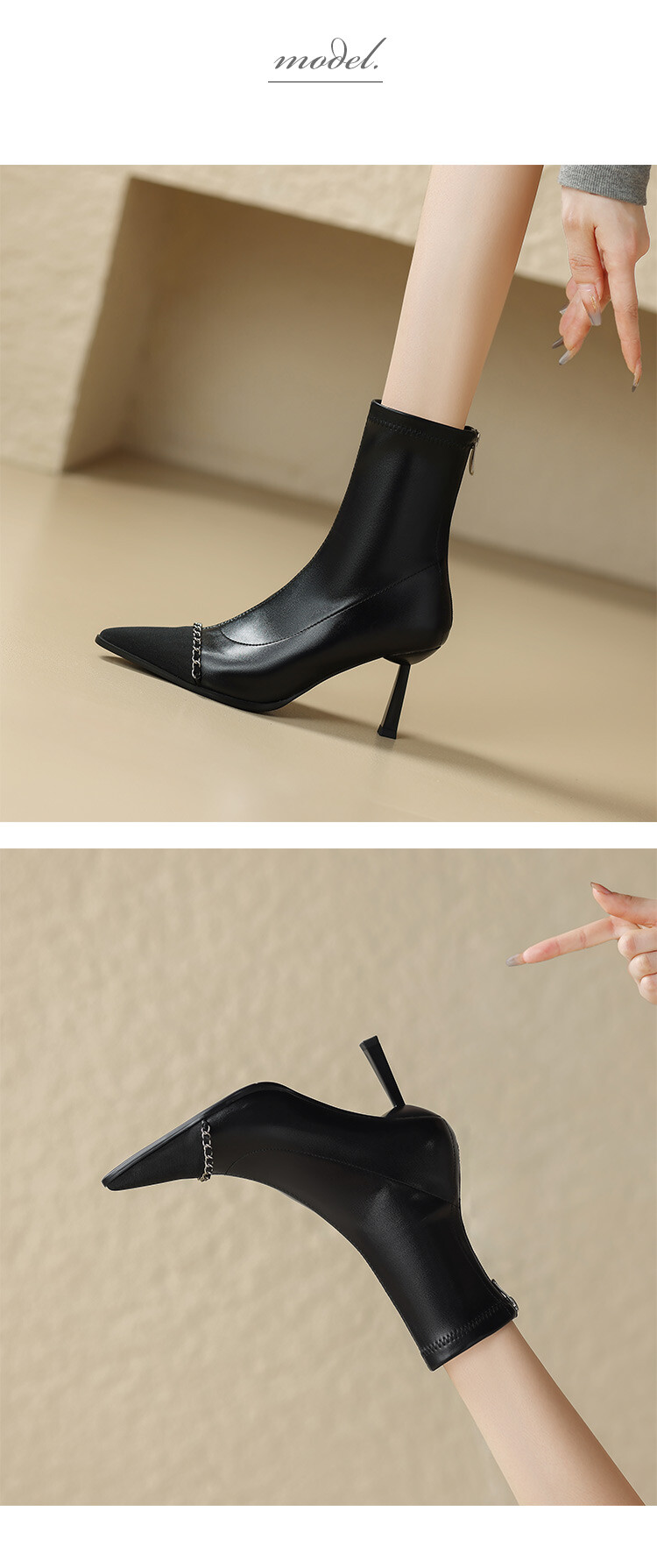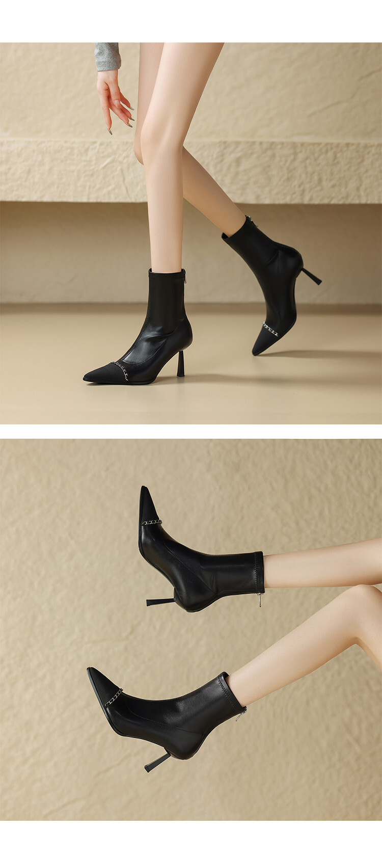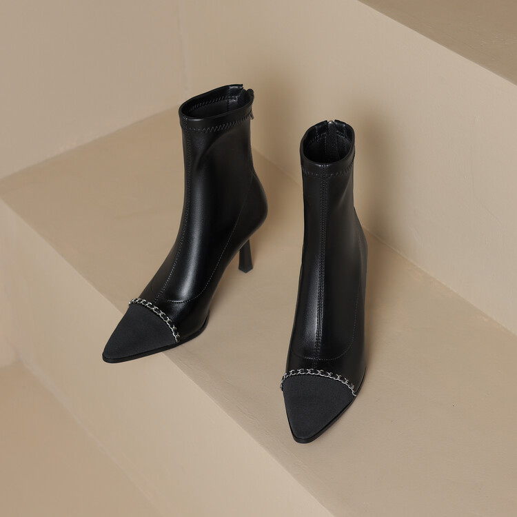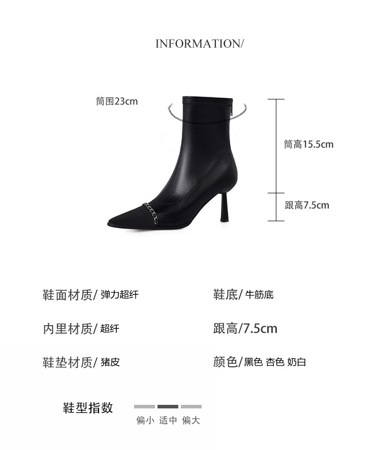 【预售5天】气质小香风链条百搭弹力瘦瘦靴秋冬新款细高跟尖头显瘦短靴女DMJFG&81366F
