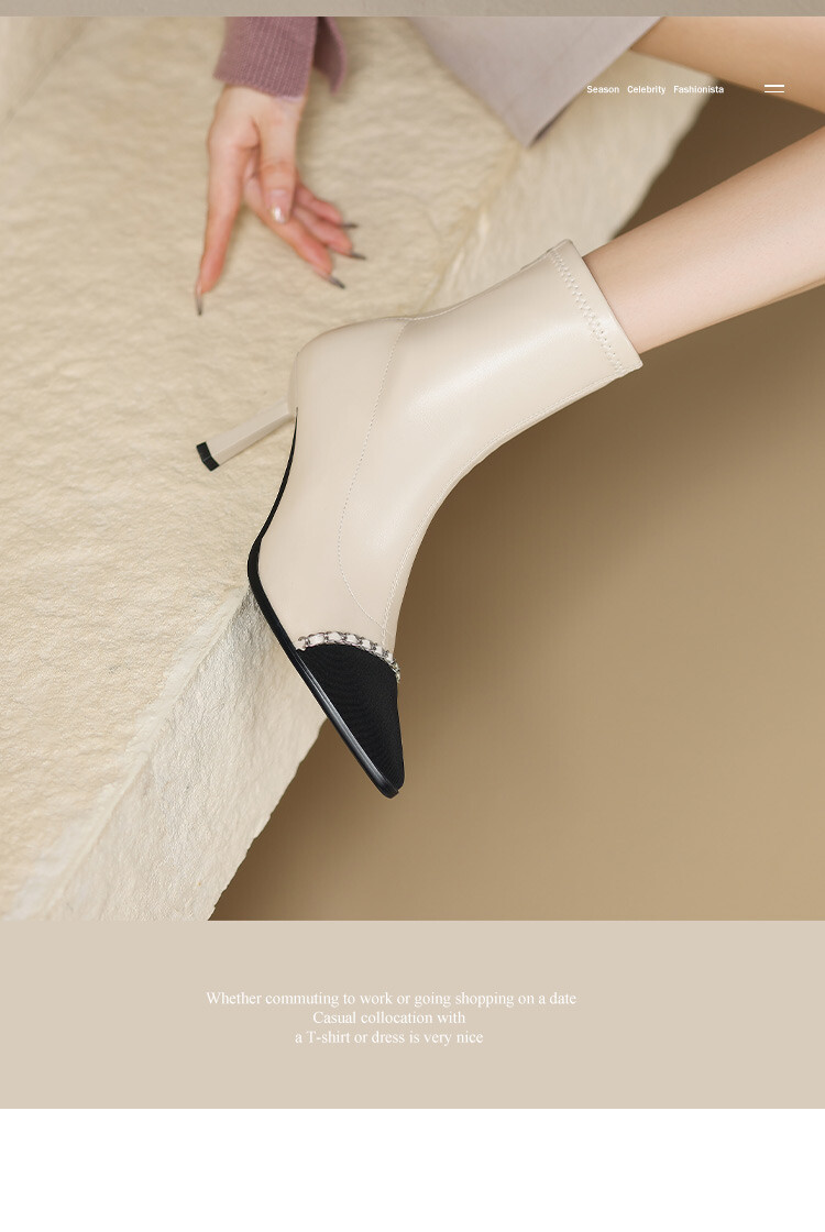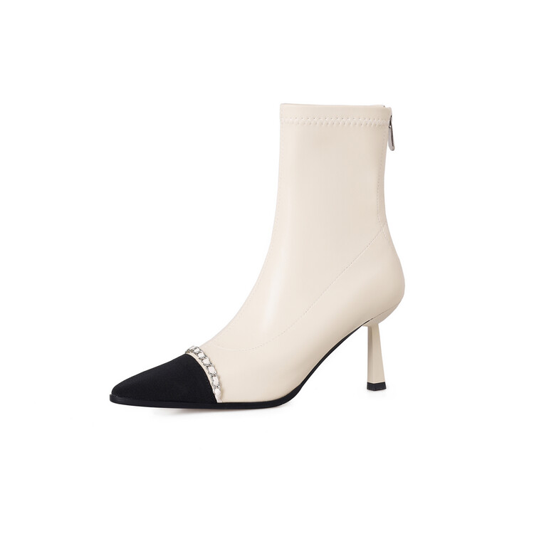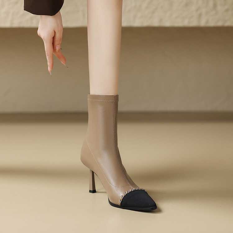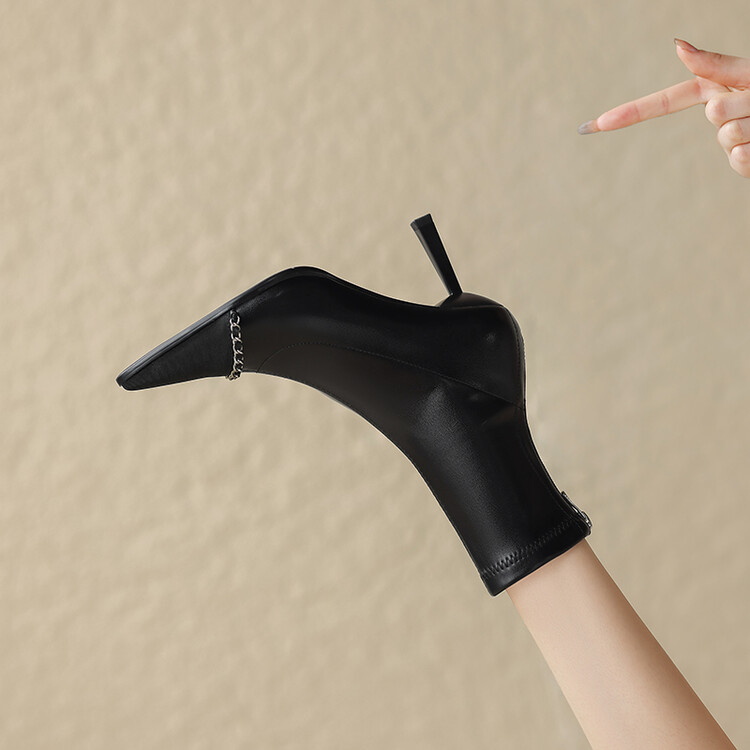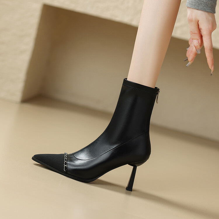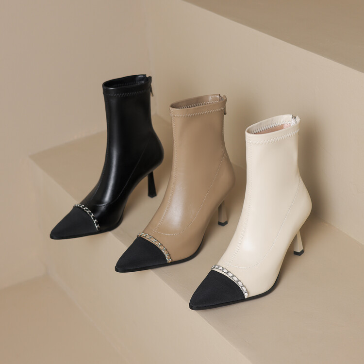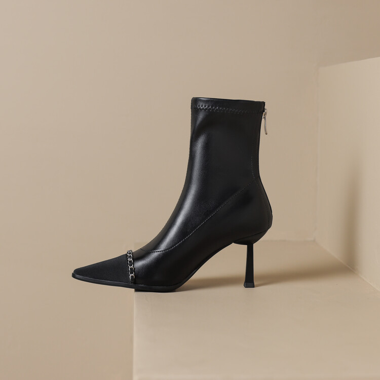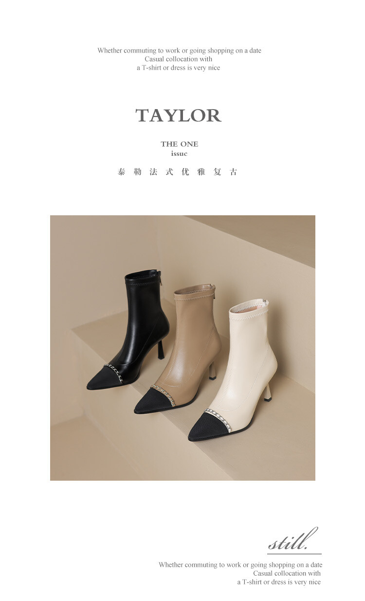 【预售5天】气质小香风链条百搭弹力瘦瘦靴秋冬新款细高跟尖头显瘦短靴女DMJFG&81366F