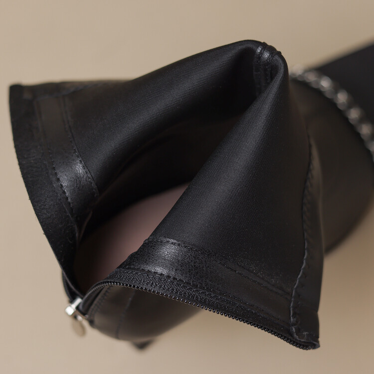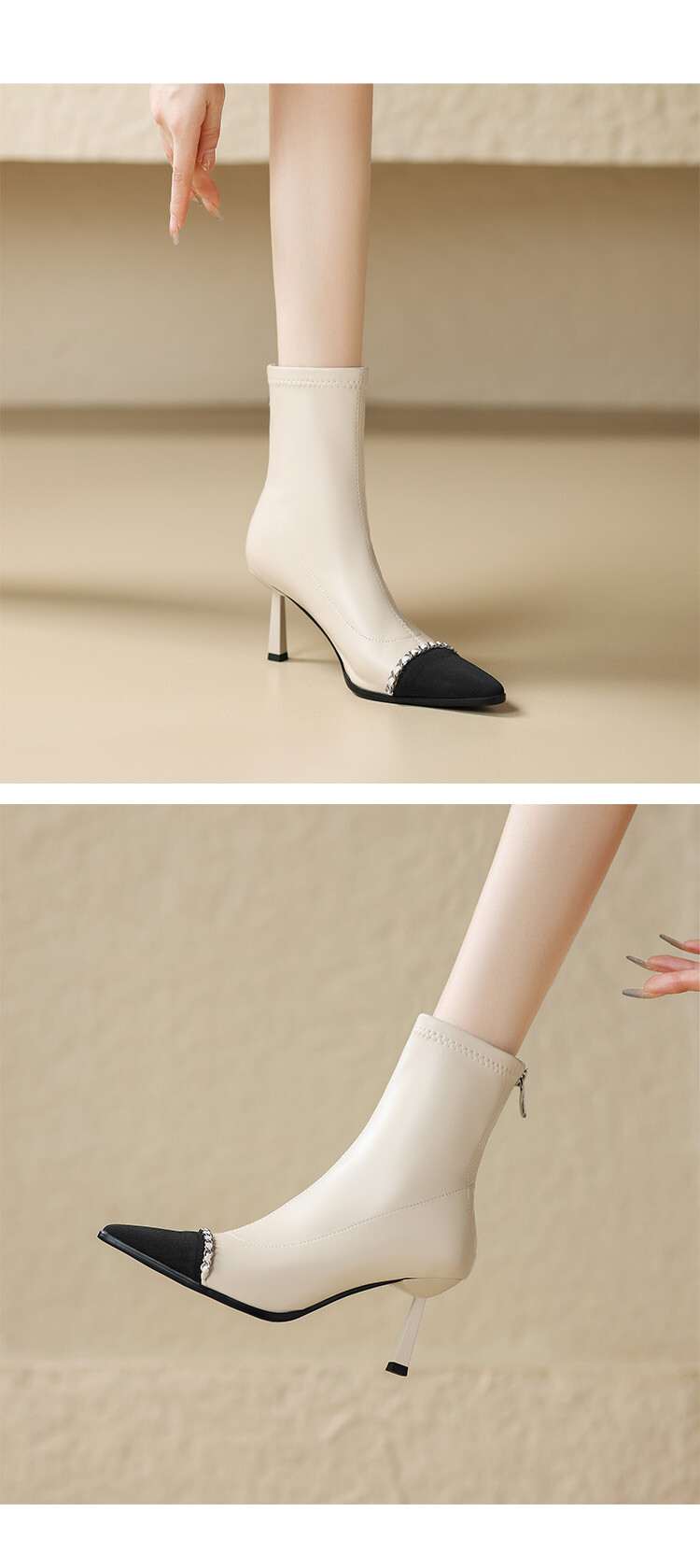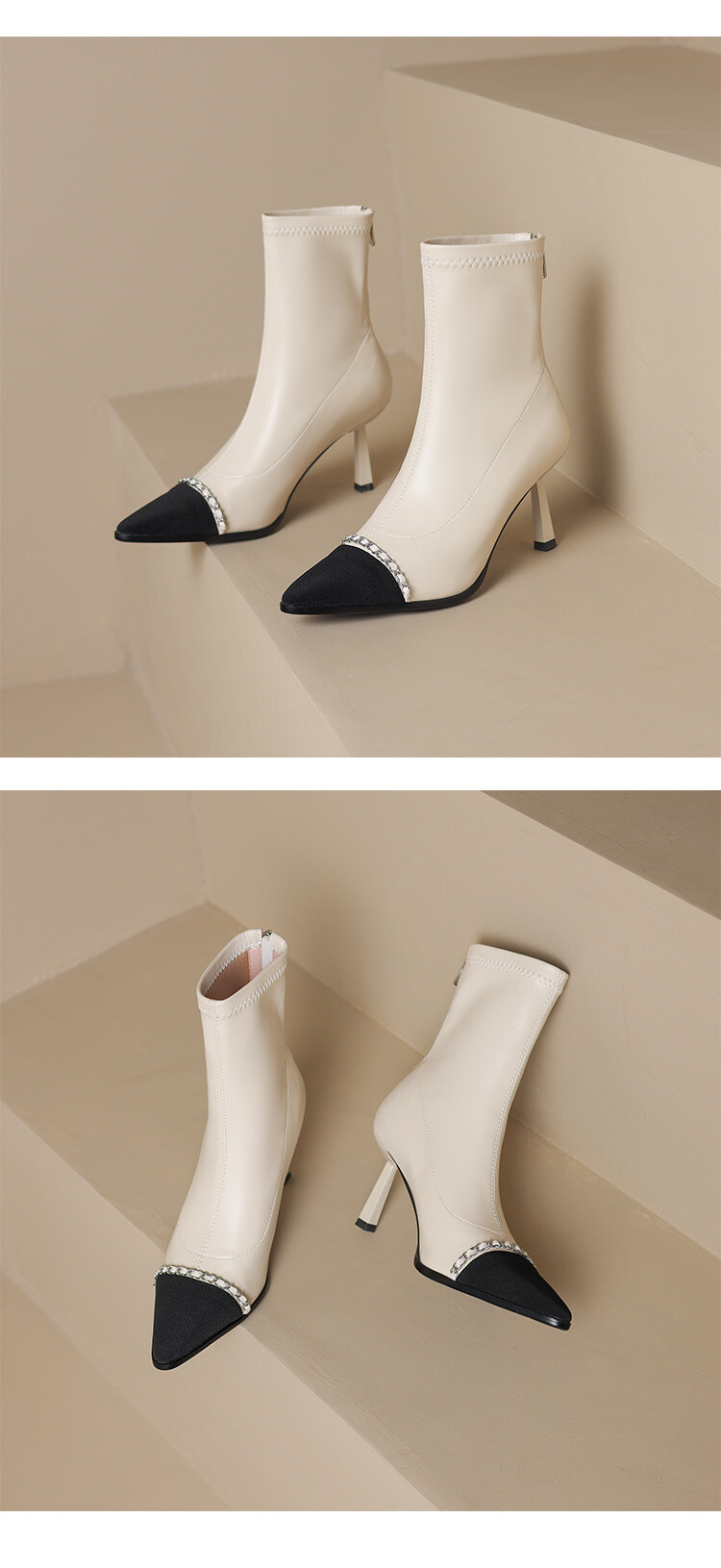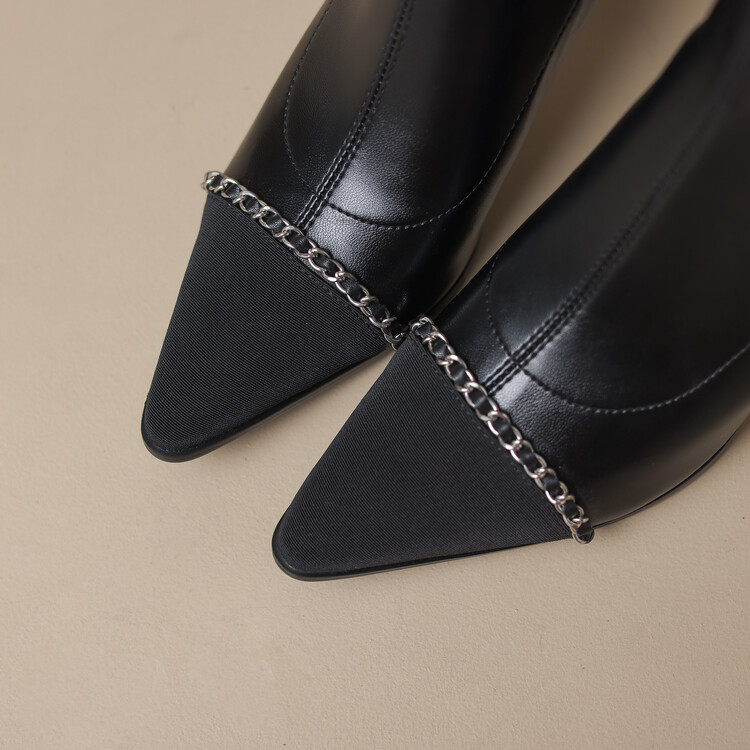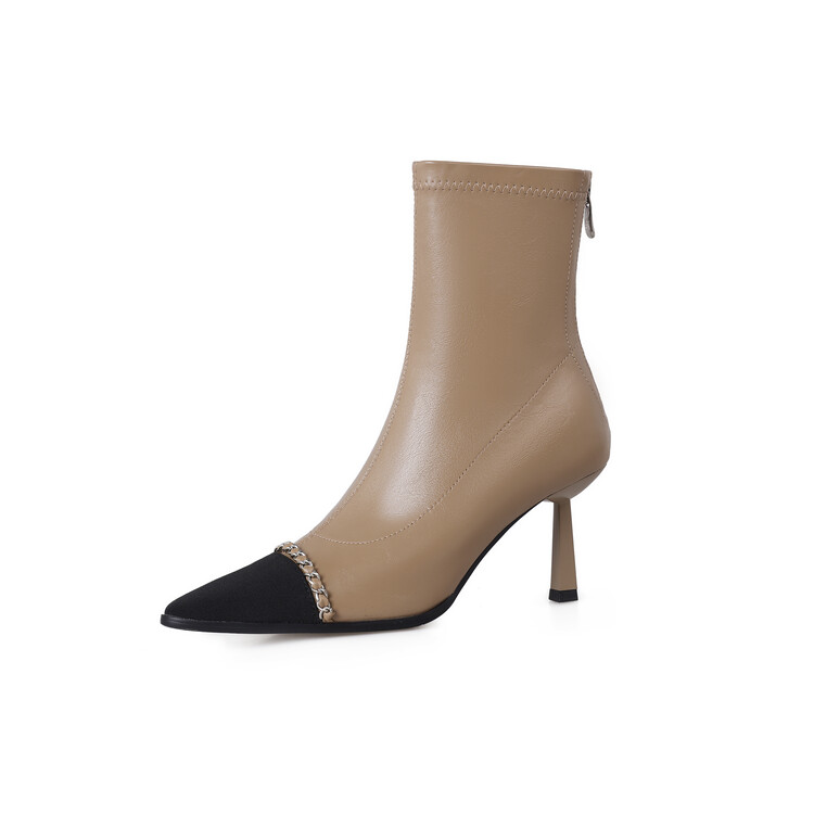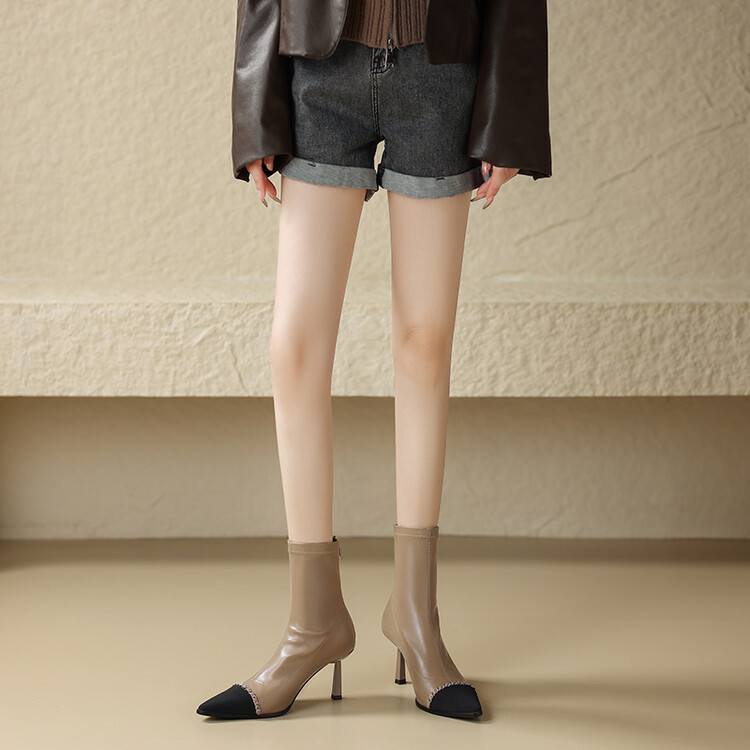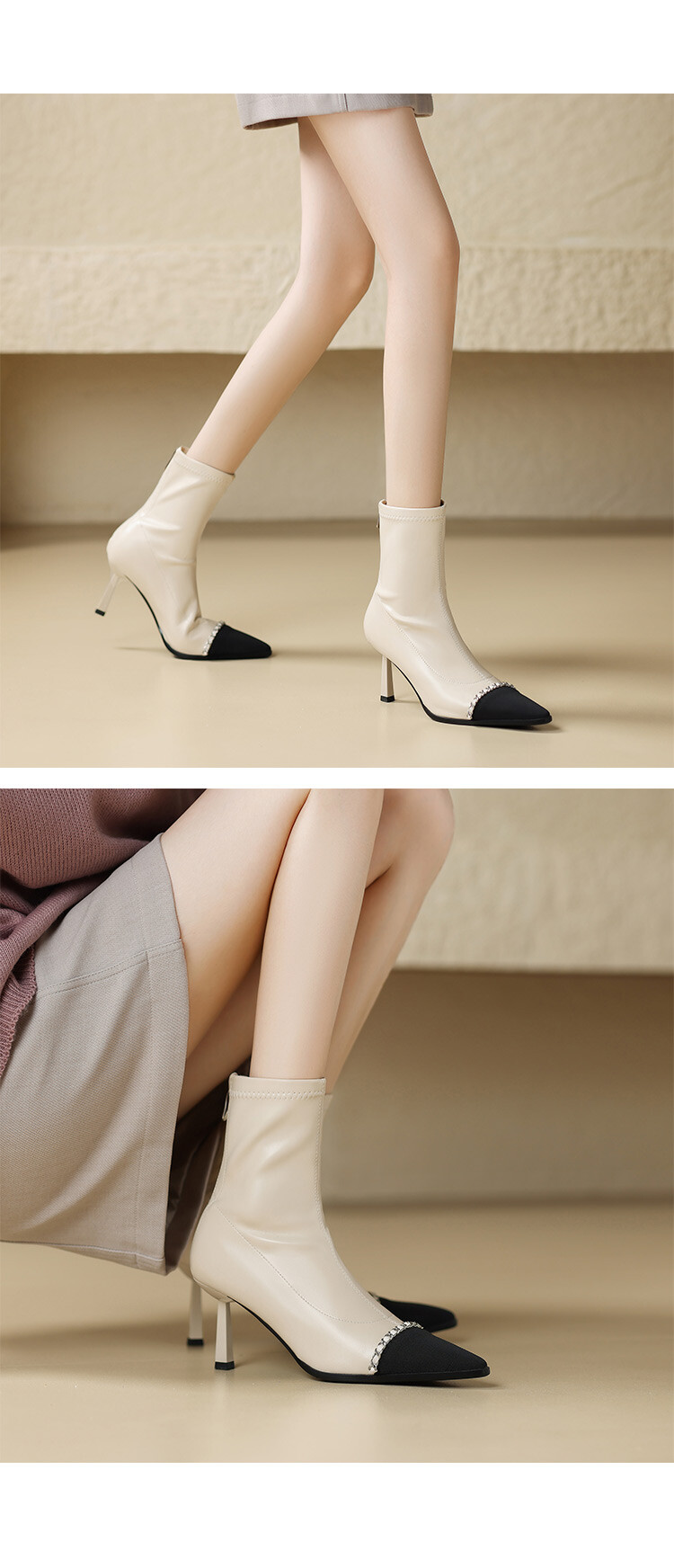 【预售5天】气质小香风链条百搭弹力瘦瘦靴秋冬新款细高跟尖头显瘦短靴女DMJFG&81366F