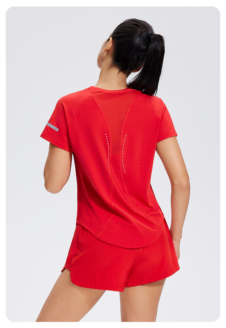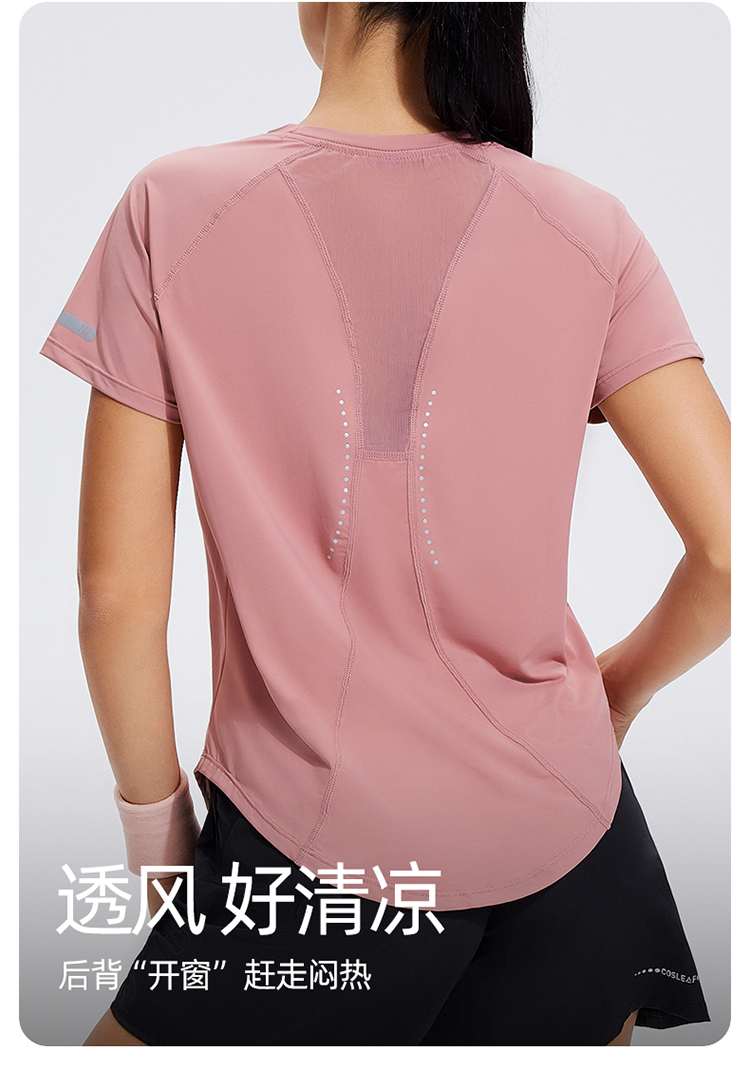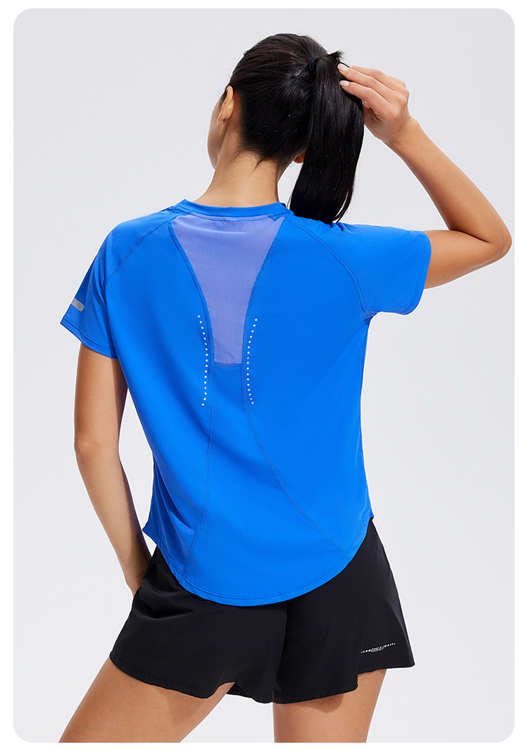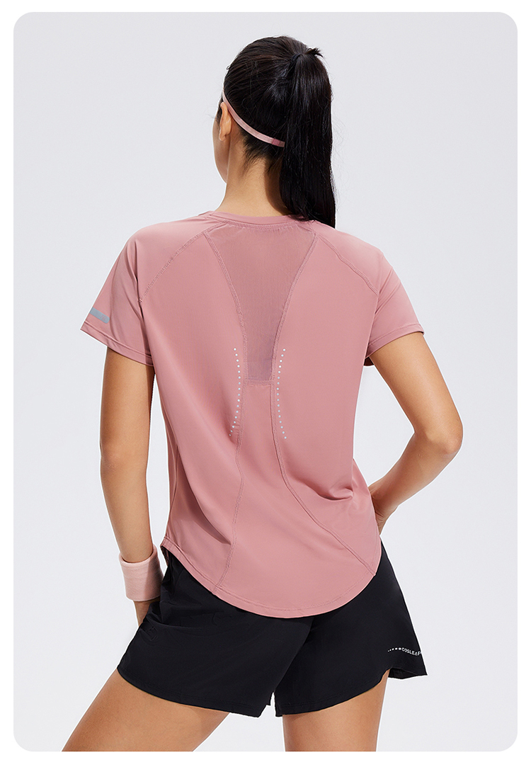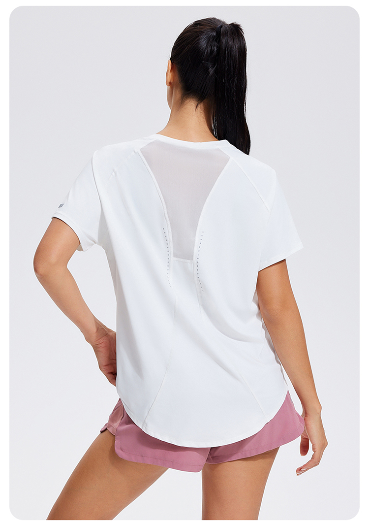 【热销】科里芙宽松版型后背拼网圆领运动速干短袖