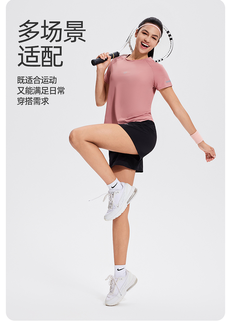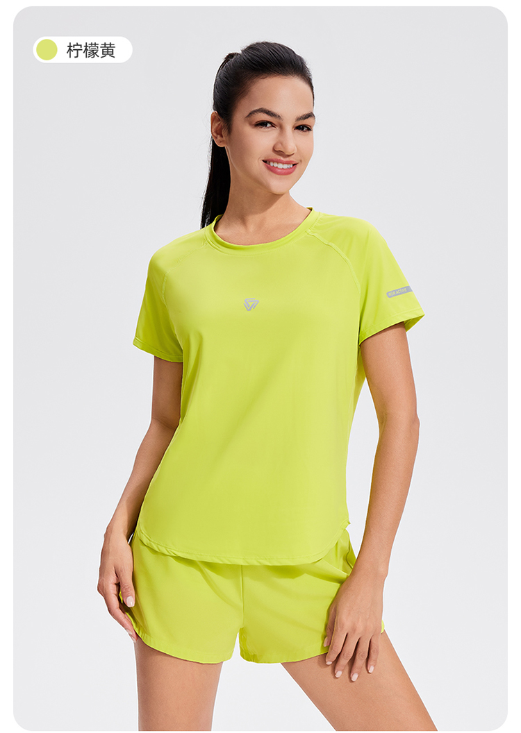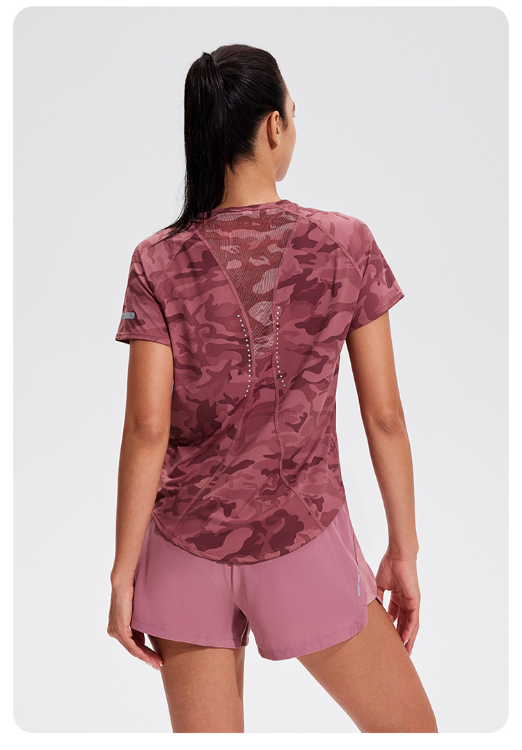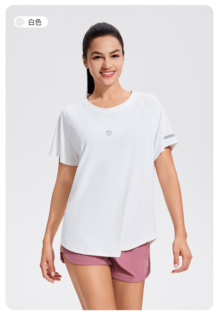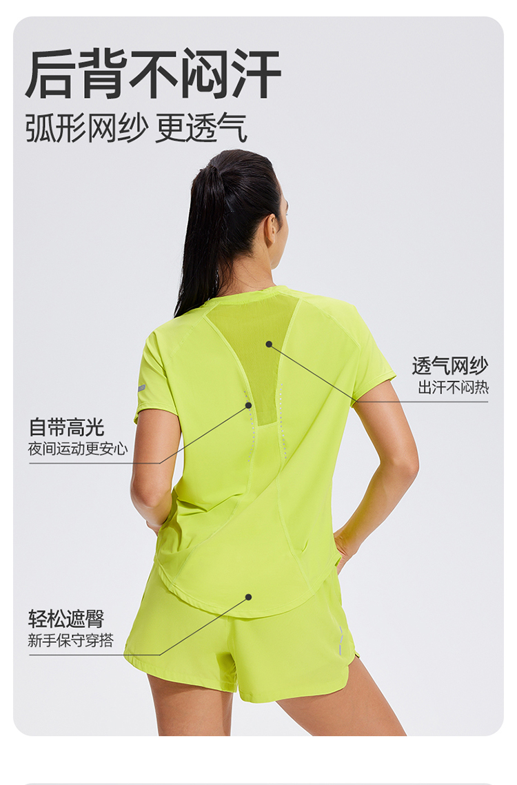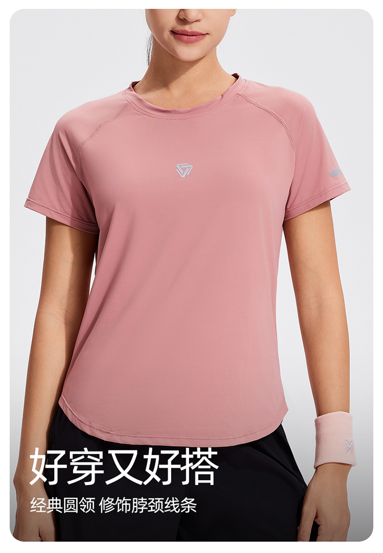 【热销】科里芙宽松版型后背拼网圆领运动速干短袖