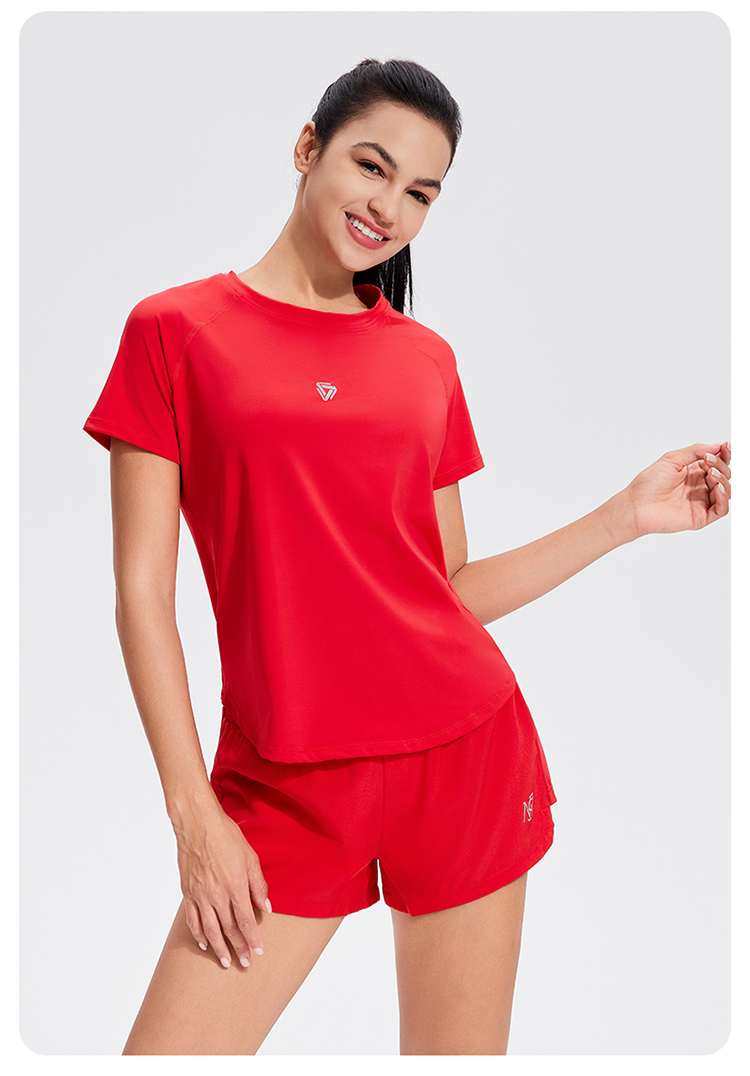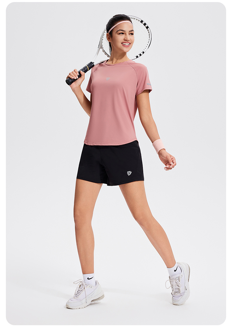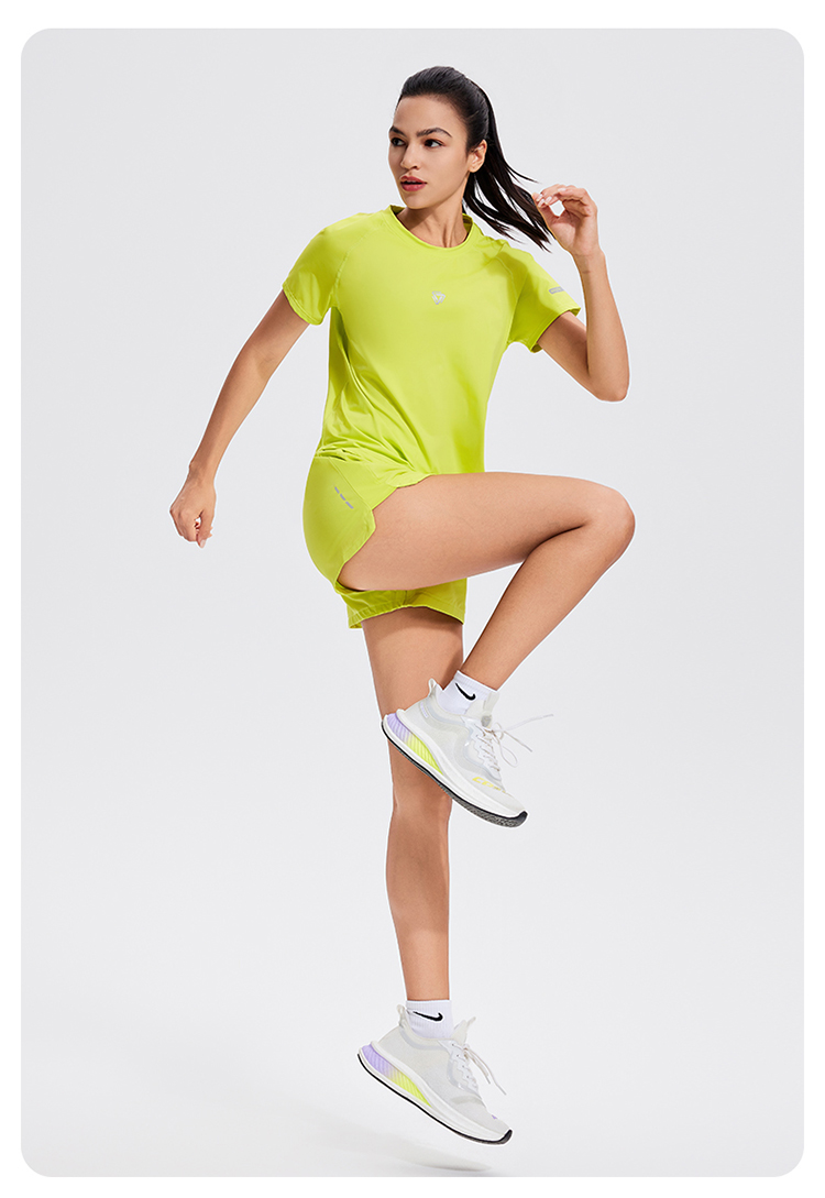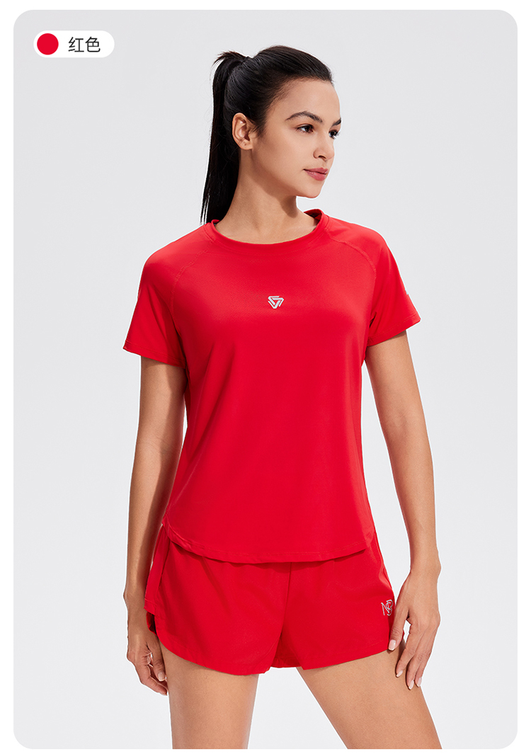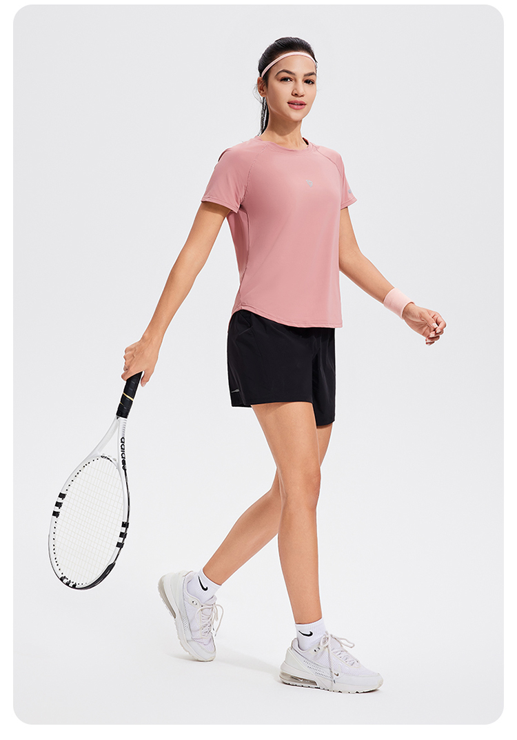 【热销】科里芙宽松版型后背拼网圆领运动速干短袖
