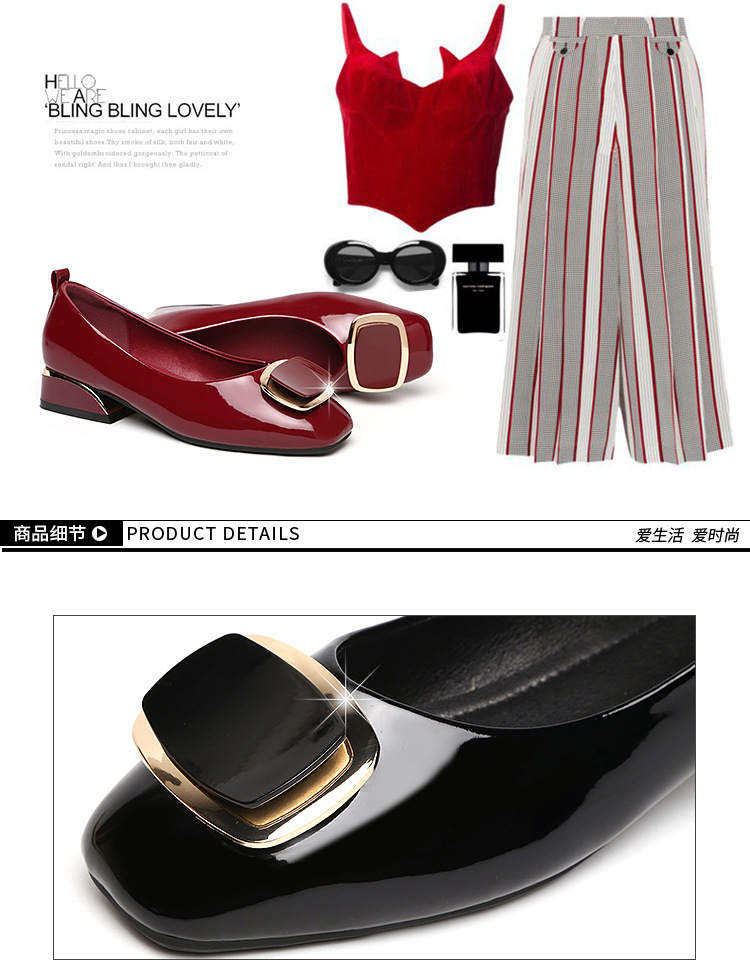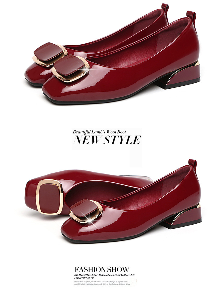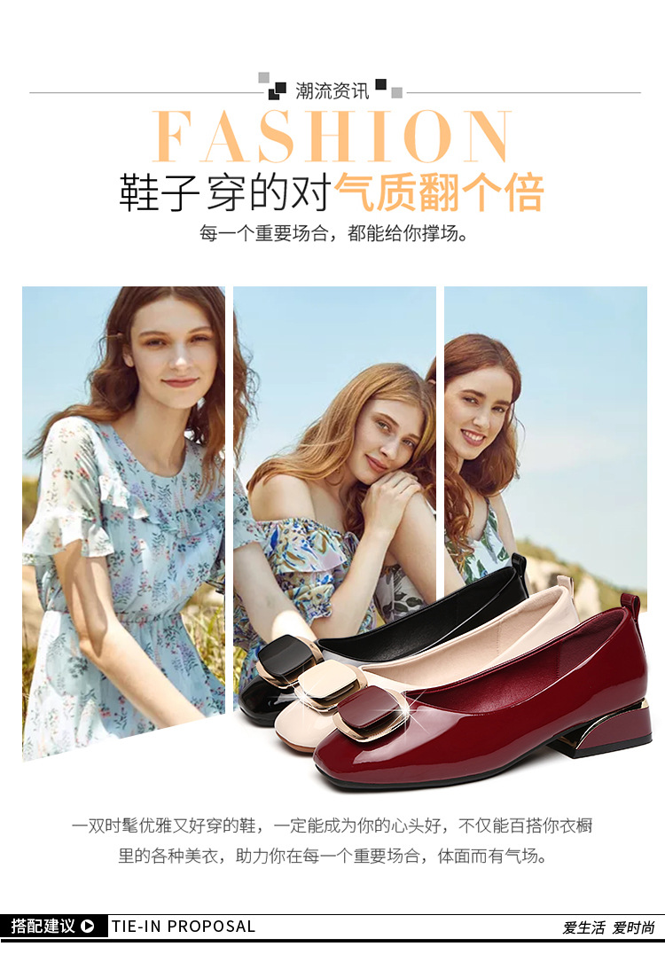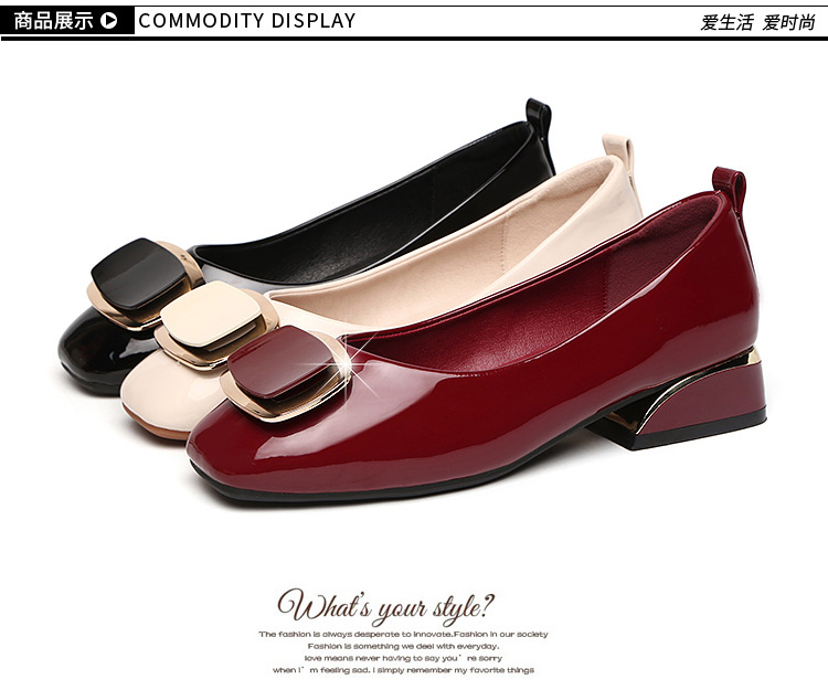 漆皮平底单鞋软皮软底中跟浅口鞋 LXHX3099