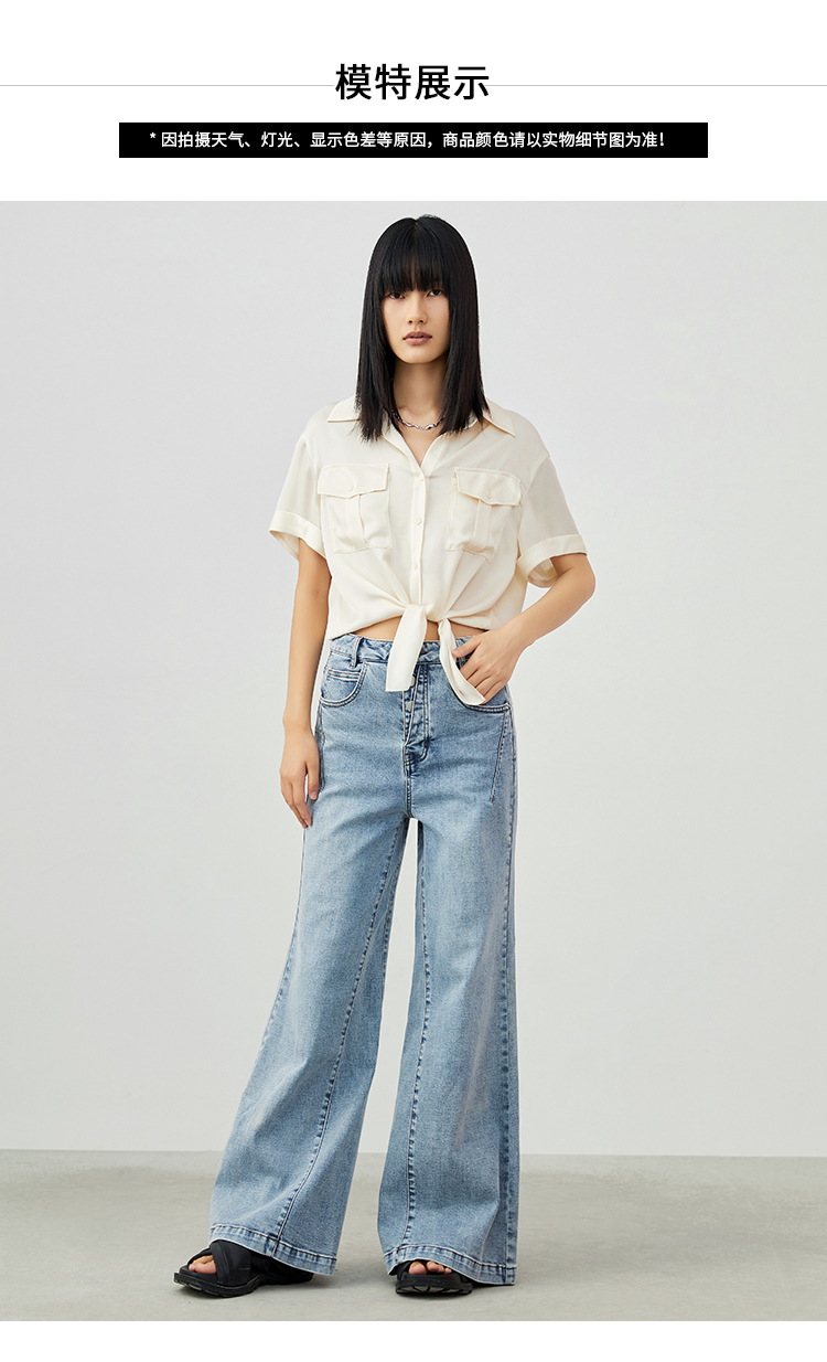 VIMAGE纬漫纪夏季新款高腰阔腿裤通勤宽松百搭纯色裤V1905526