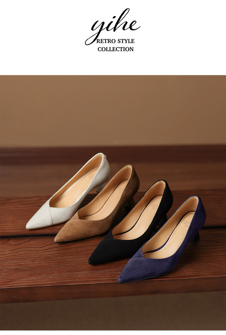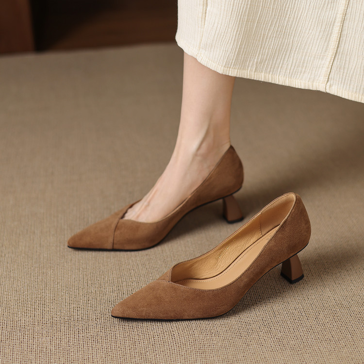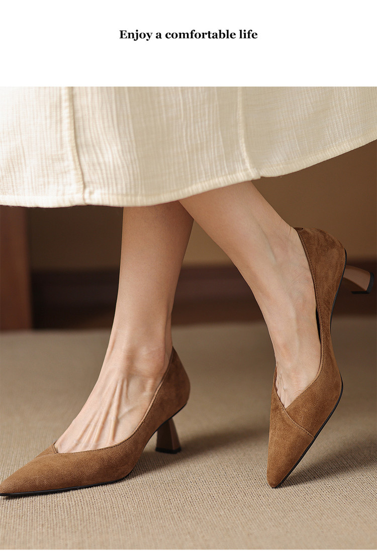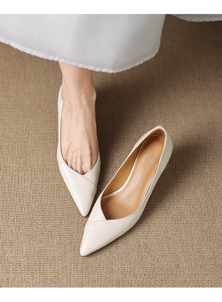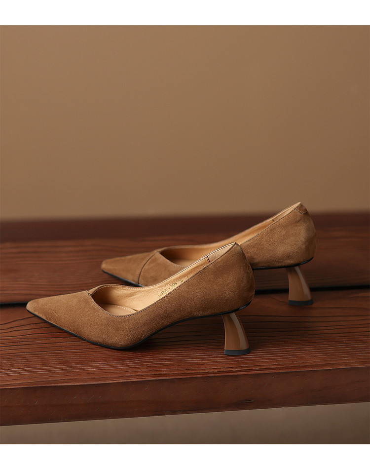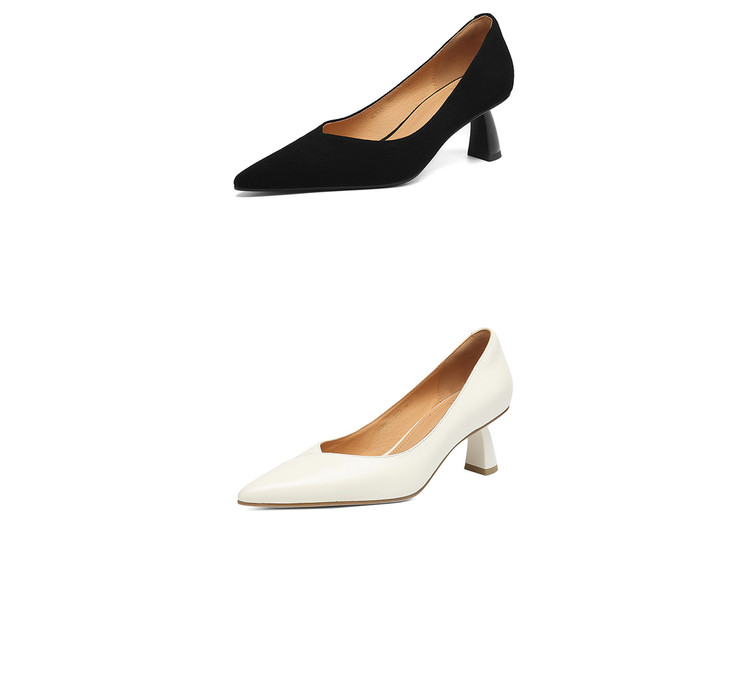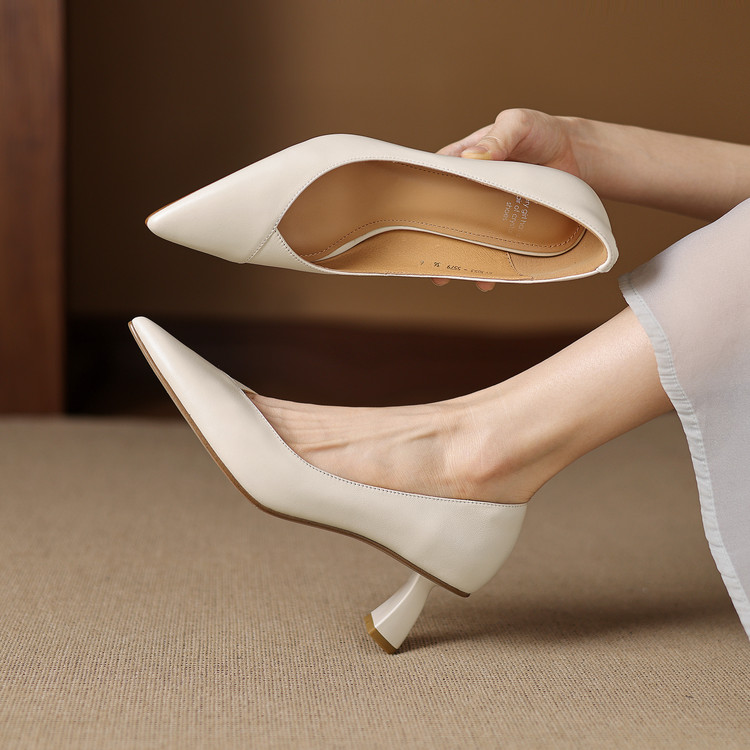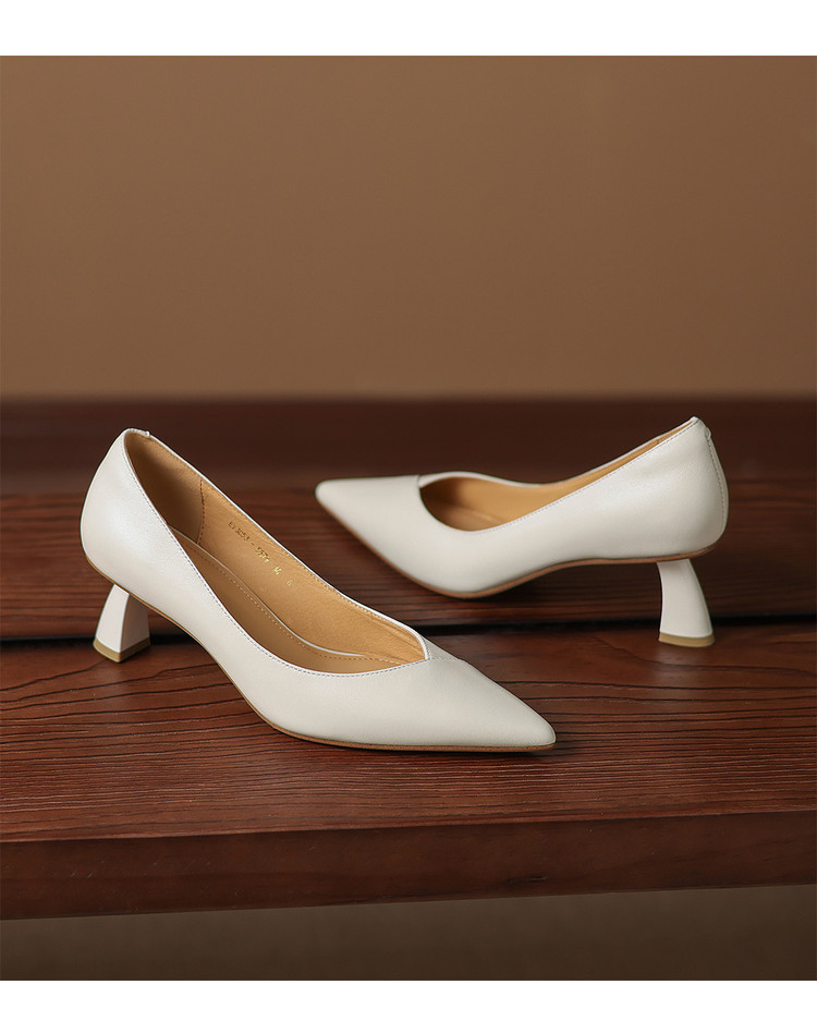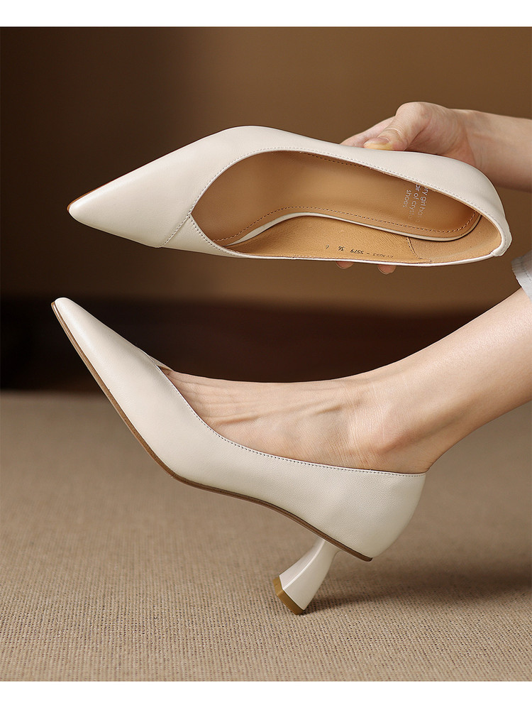 【预售5天】百搭舒适通勤气质尖头高跟鞋女新款韩版简约真皮浅口单鞋HB&5579