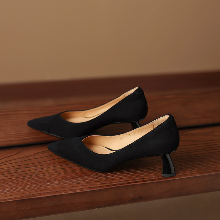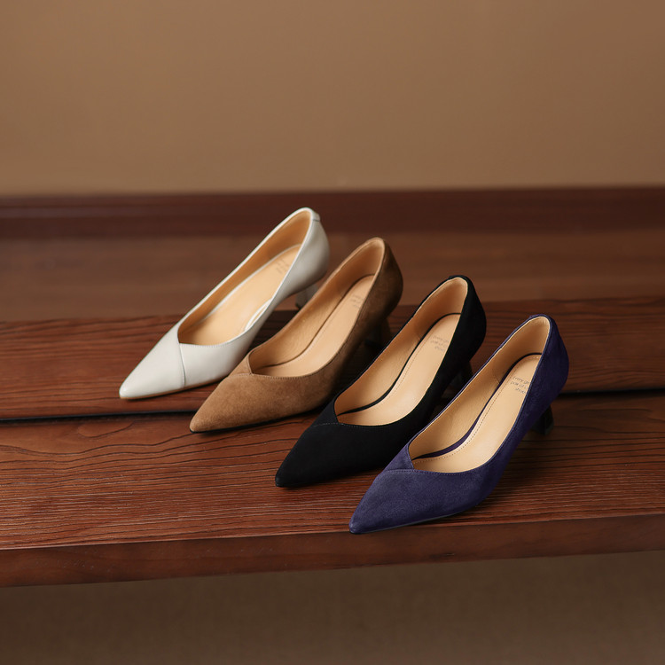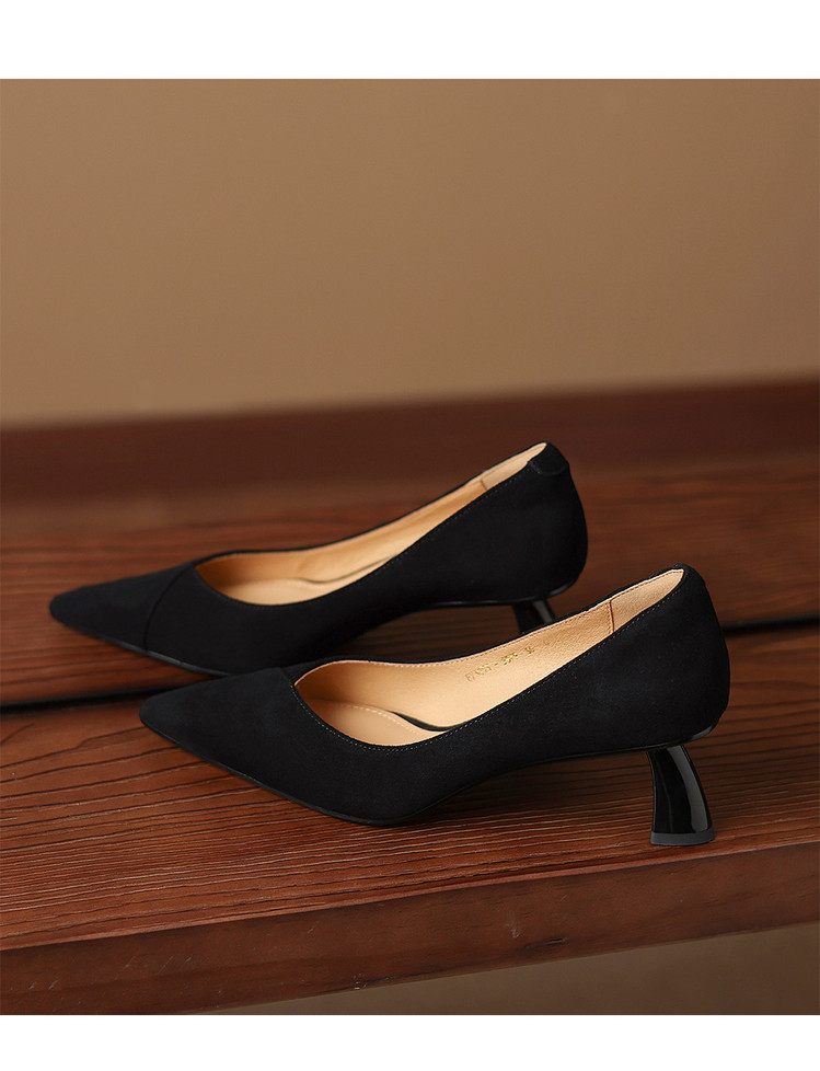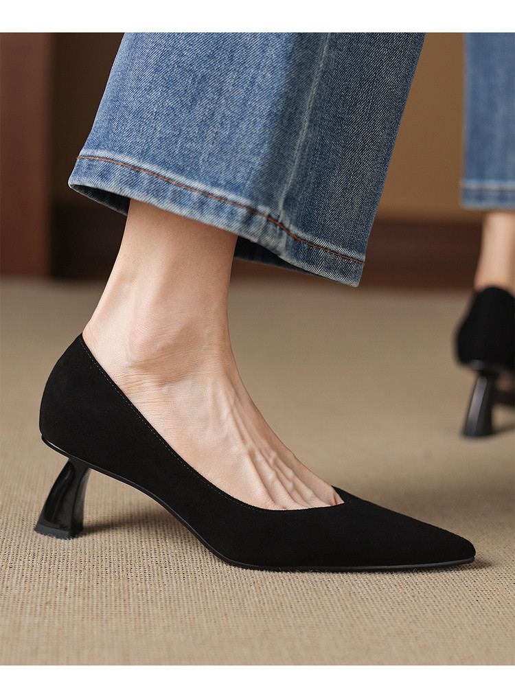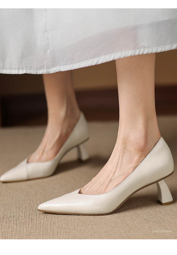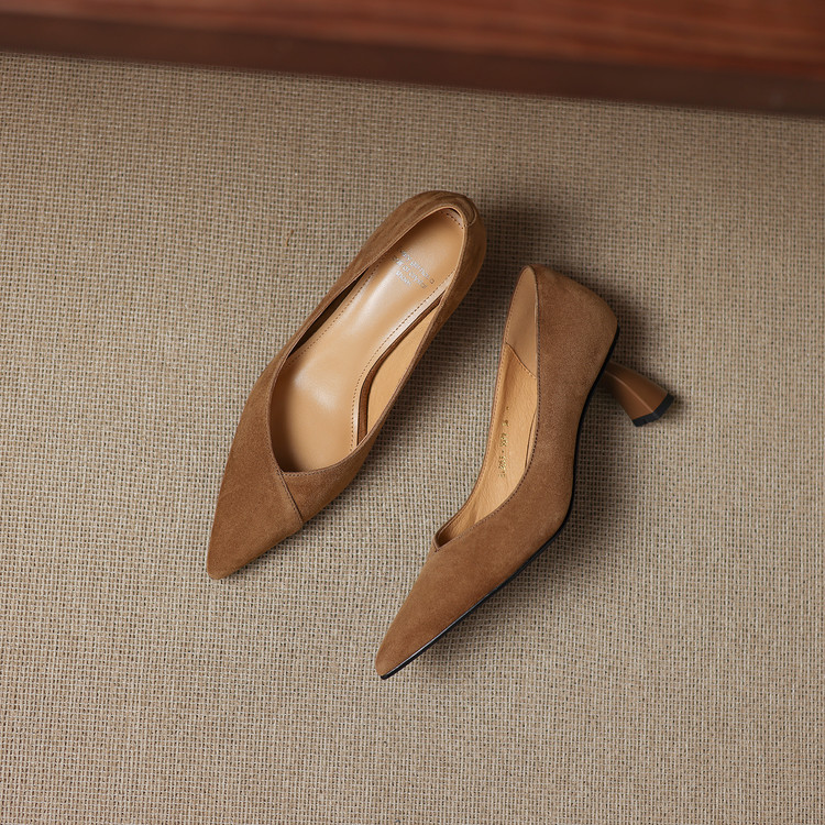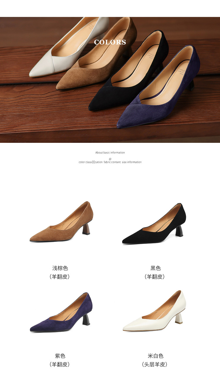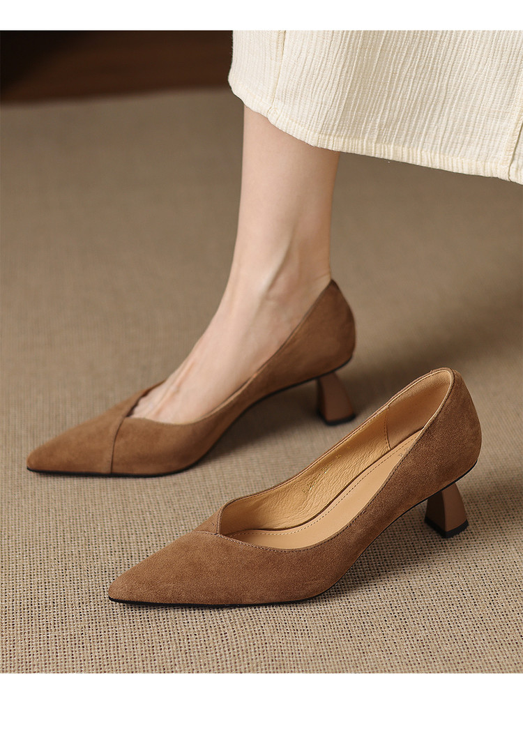 【预售5天】百搭舒适通勤气质尖头高跟鞋女新款韩版简约真皮浅口单鞋HB&5579
