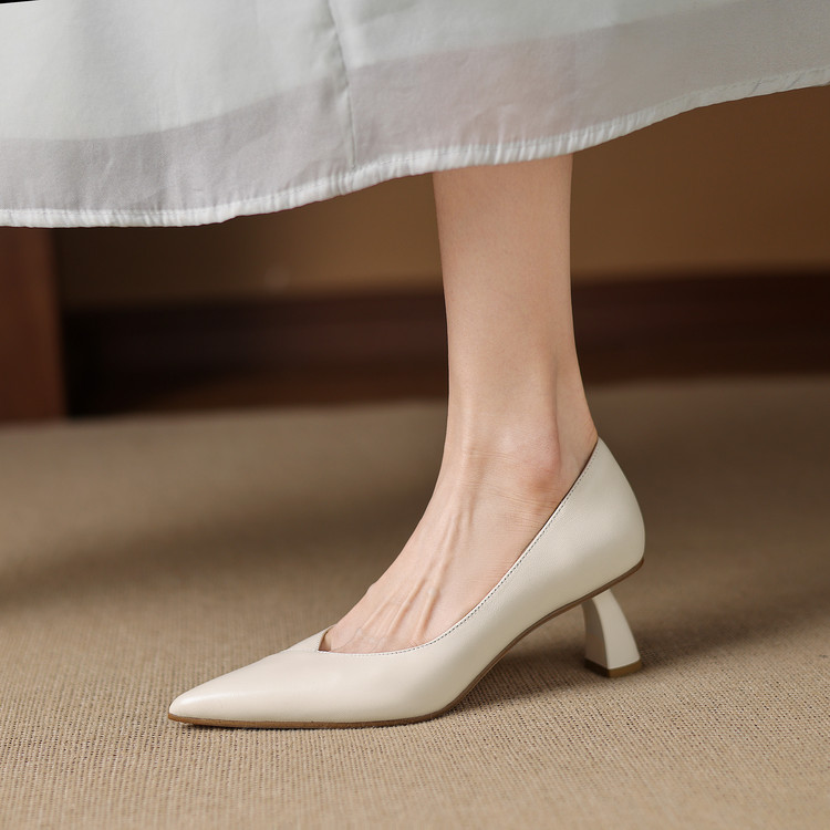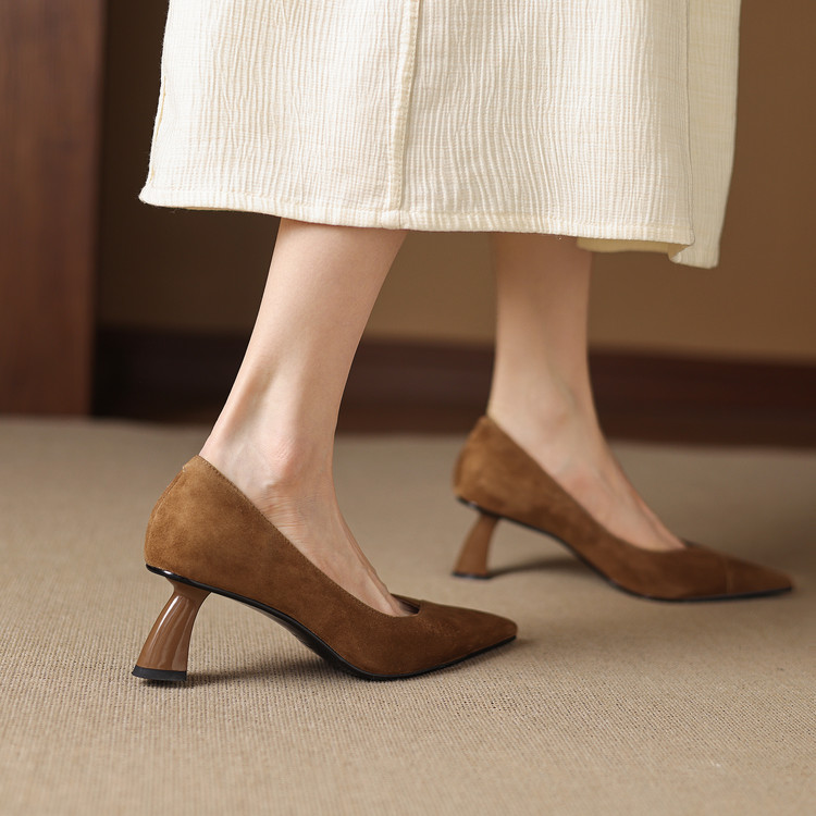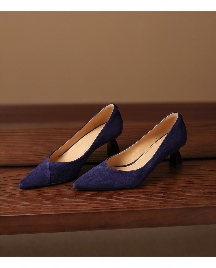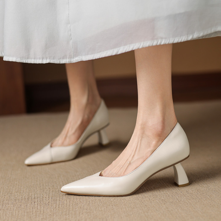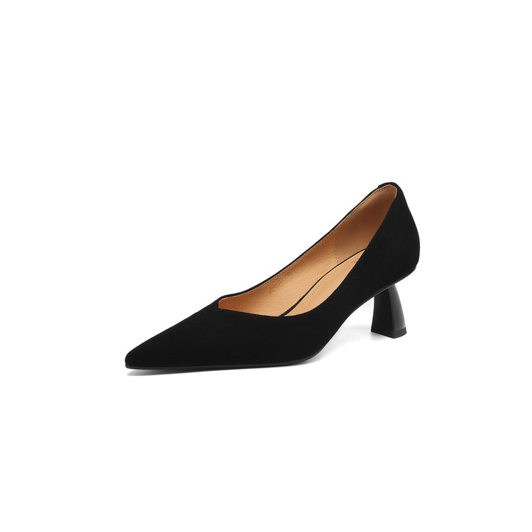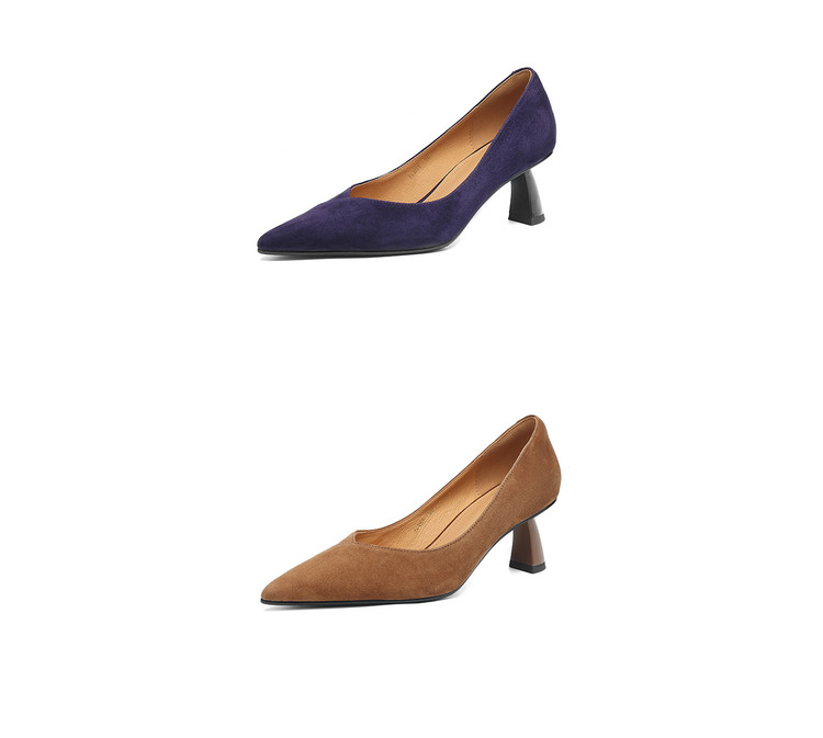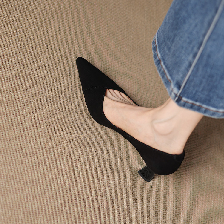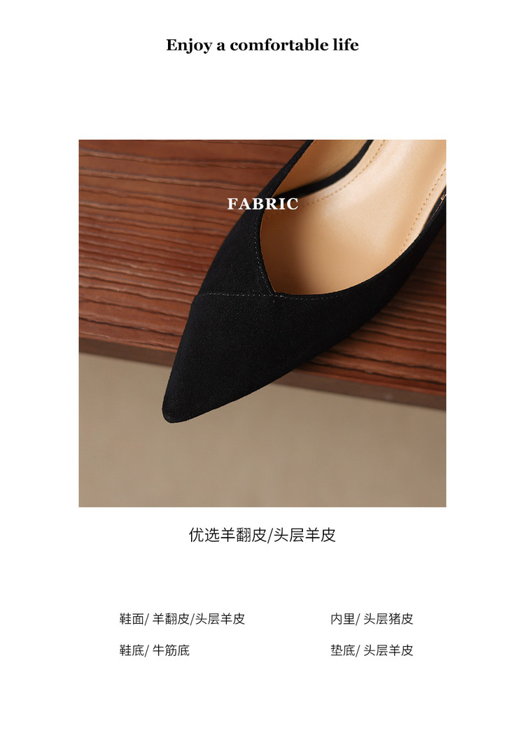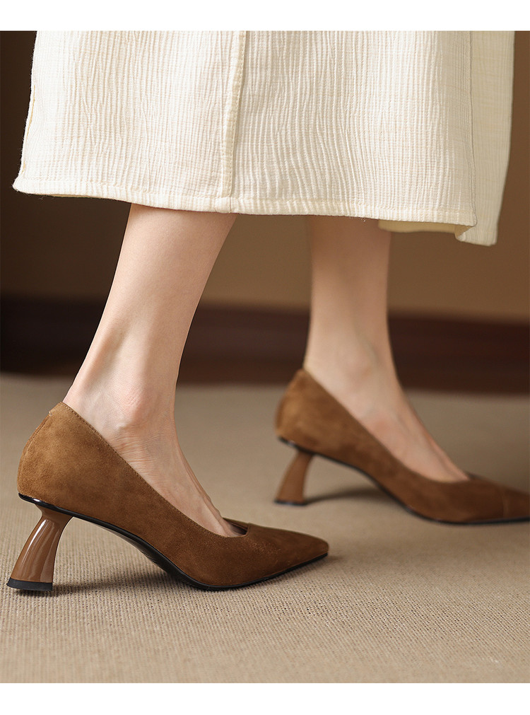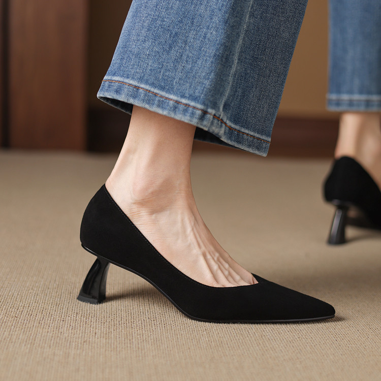 【预售5天】百搭舒适通勤气质尖头高跟鞋女新款韩版简约真皮浅口单鞋HB&5579