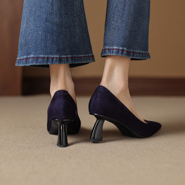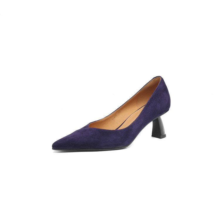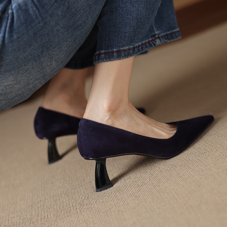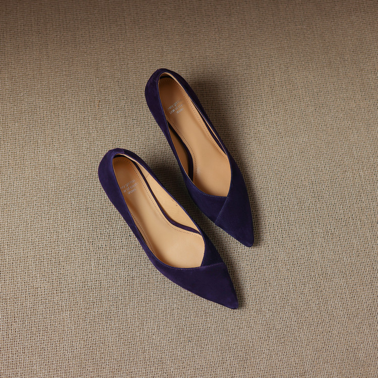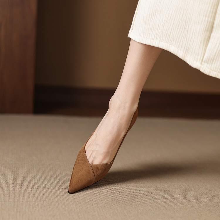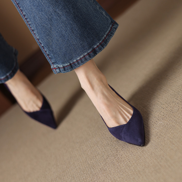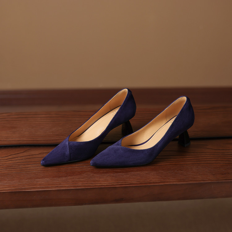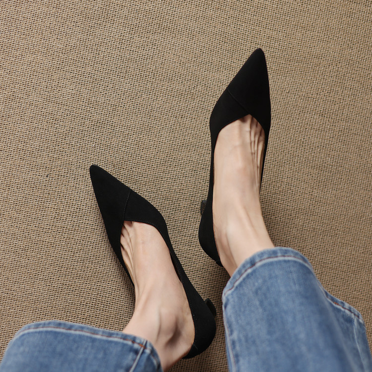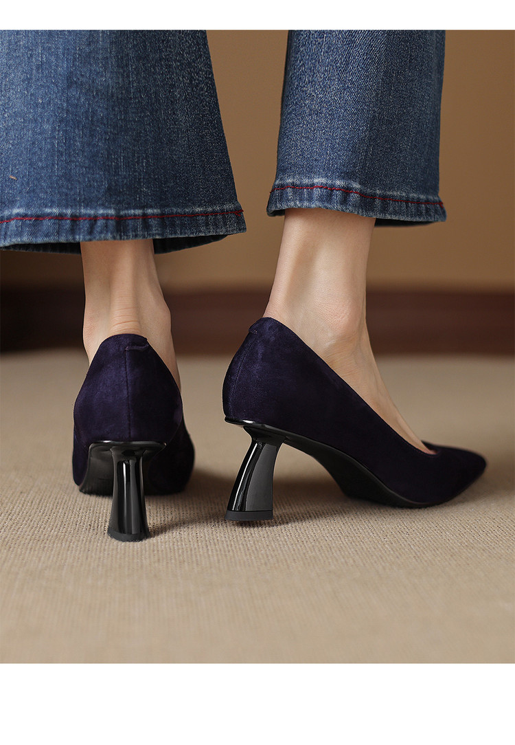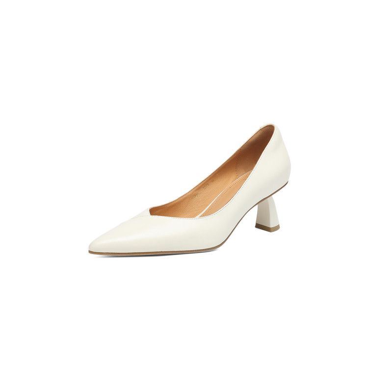 【预售5天】百搭舒适通勤气质尖头高跟鞋女新款韩版简约真皮浅口单鞋HB&5579