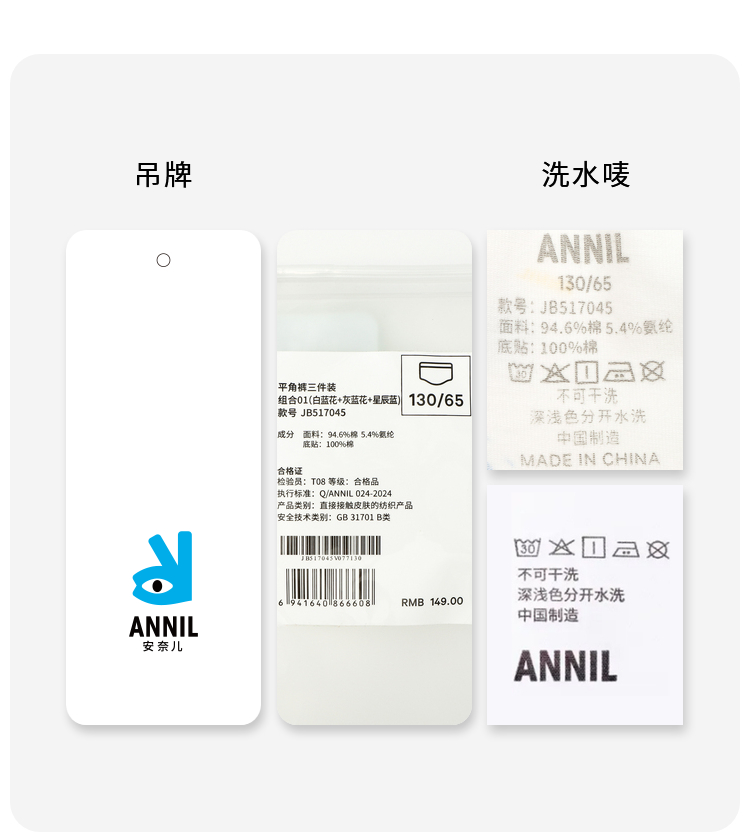 男童平角裤三件装春季新款安奈儿童装JB517045