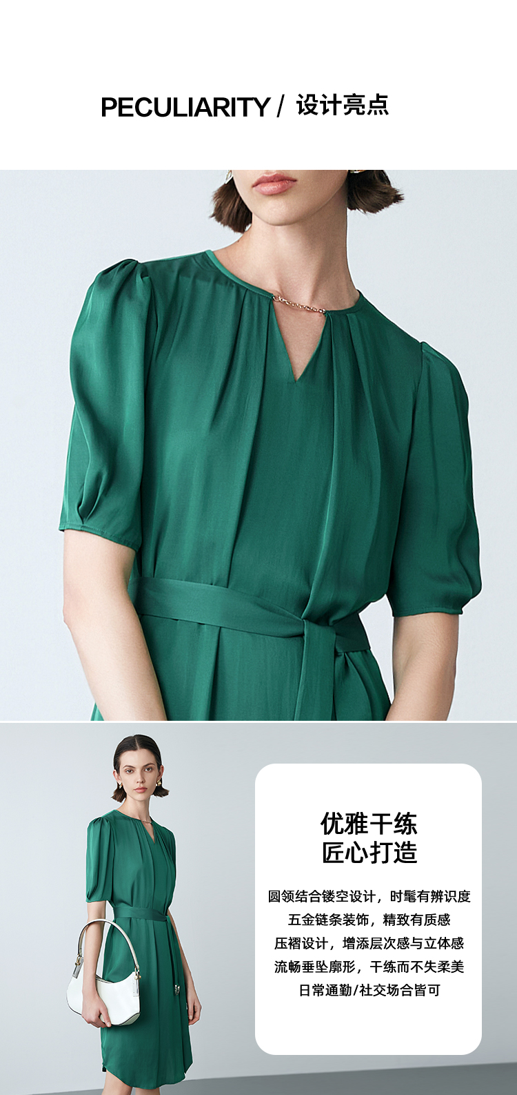 EITIE爱特爱夏季新款气质设计感收腰显瘦通勤连衣裙7807537