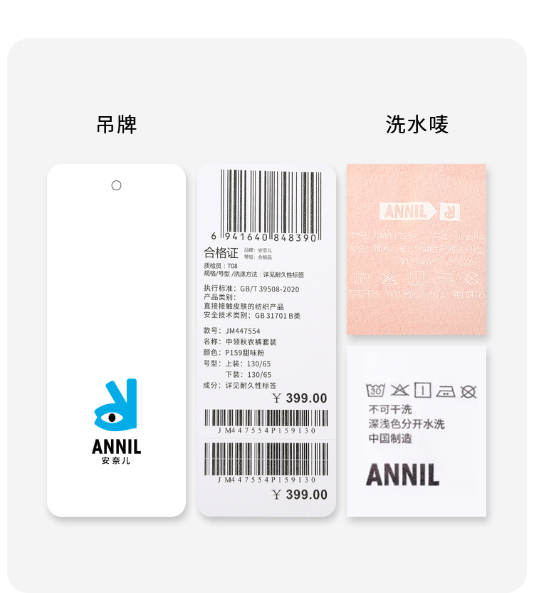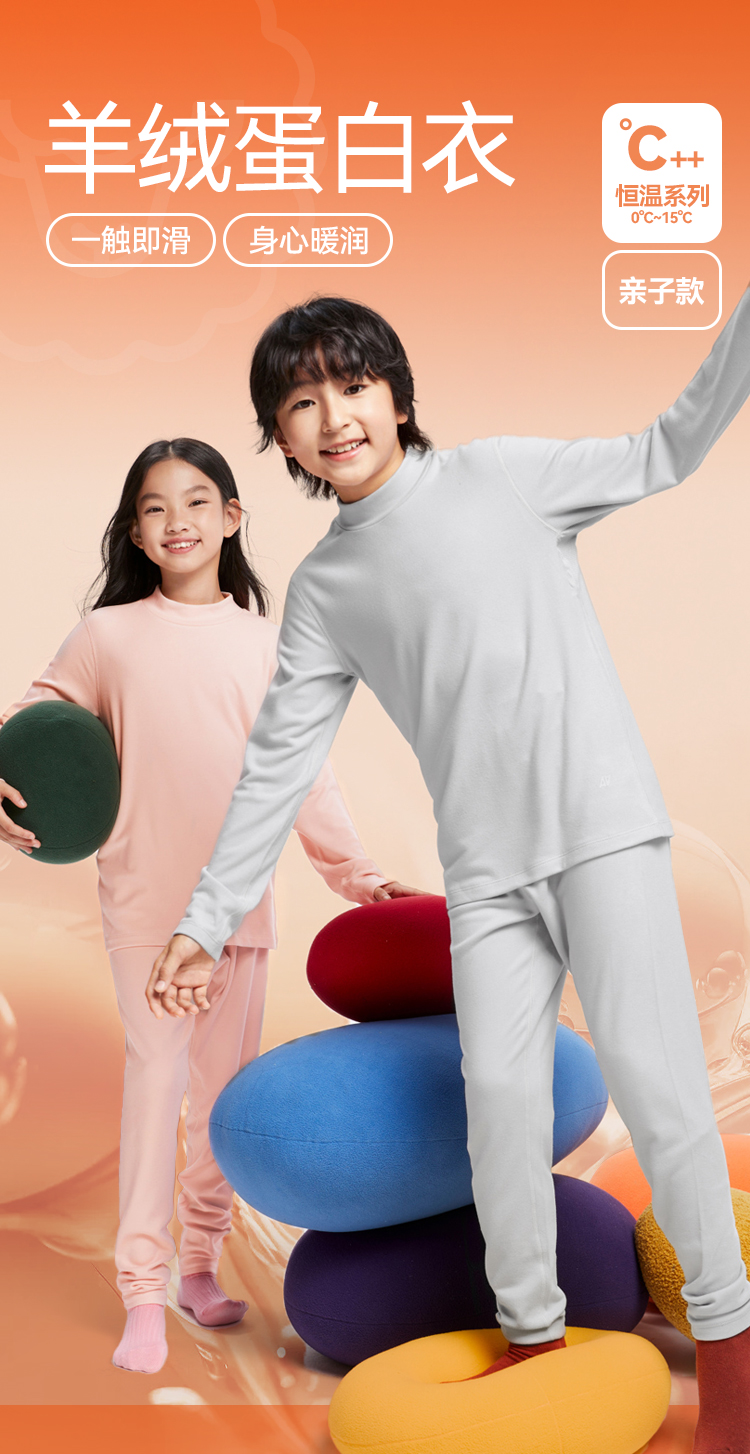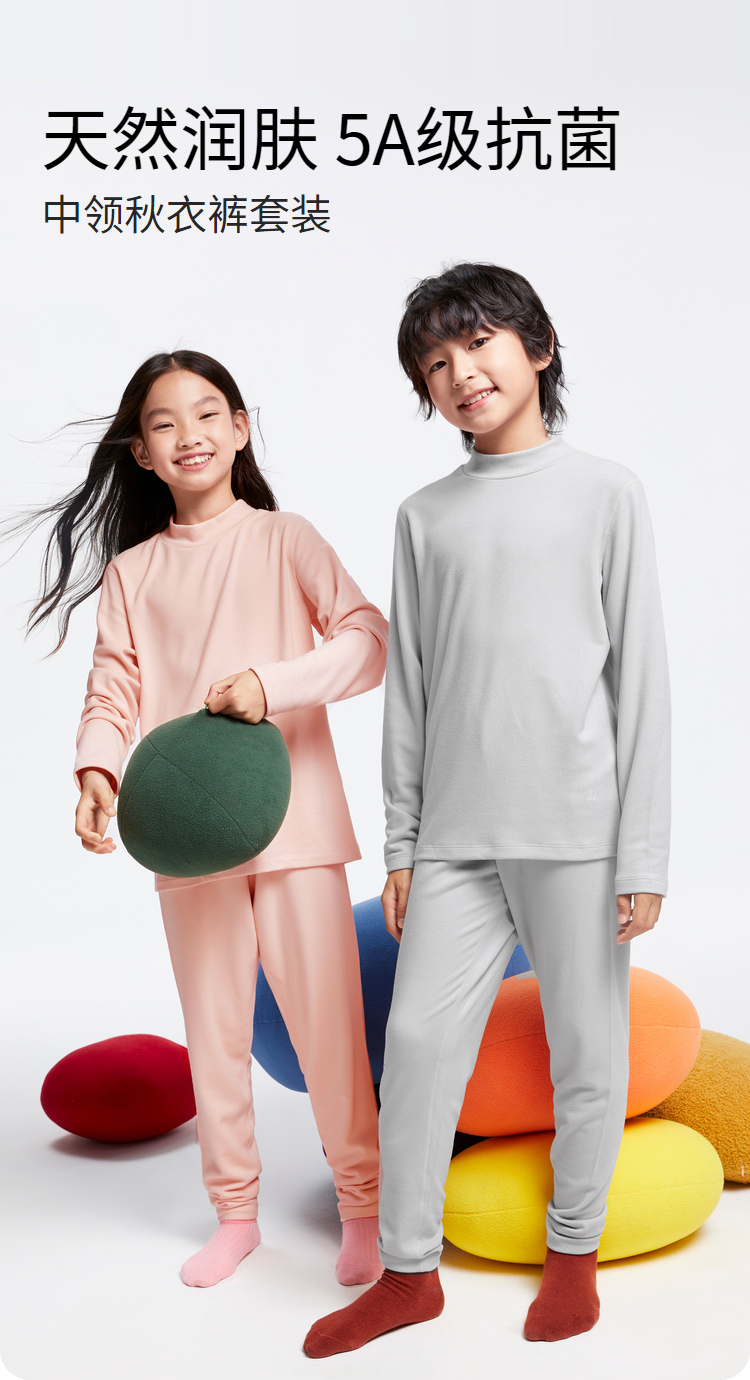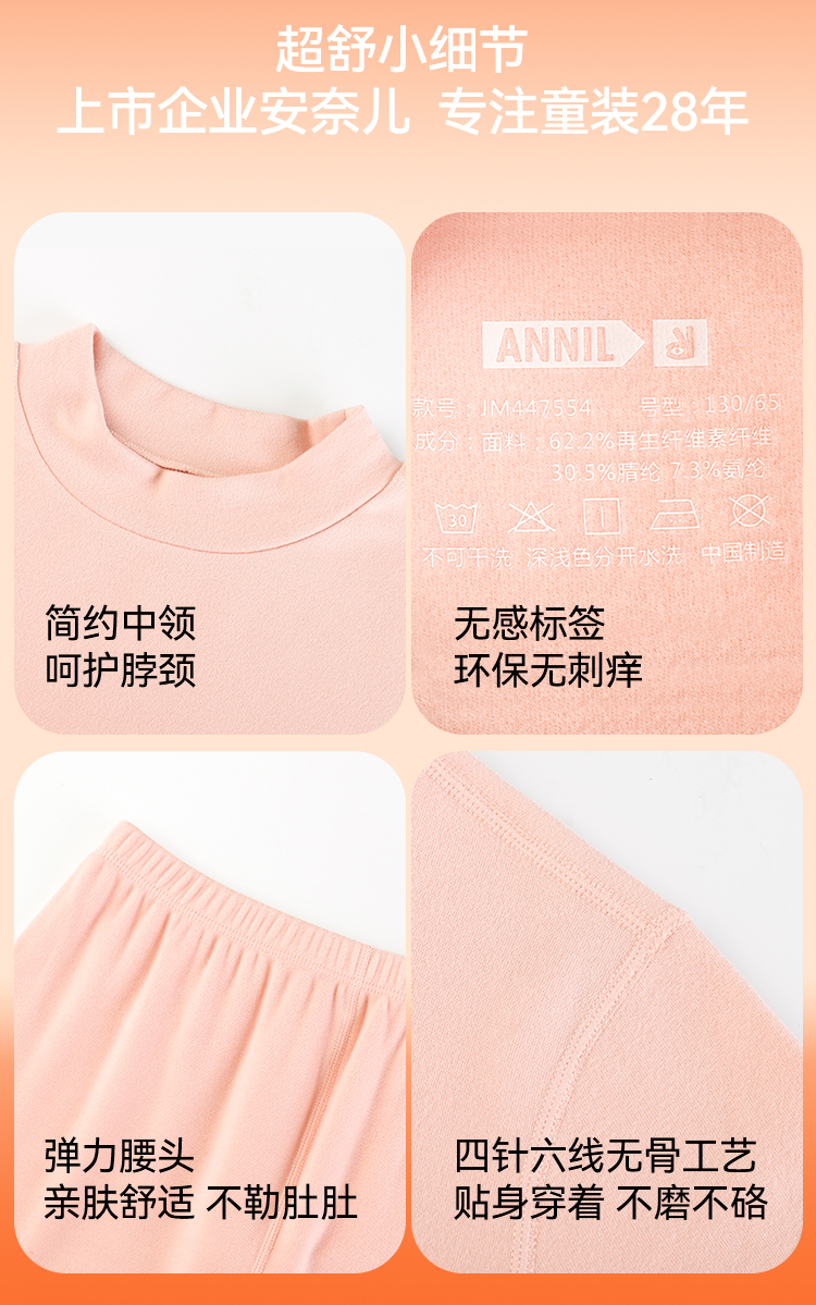 【5A抗菌羊绒蛋白】男女童加厚中领秋衣裤套装冬季新款安奈儿童装JM447554