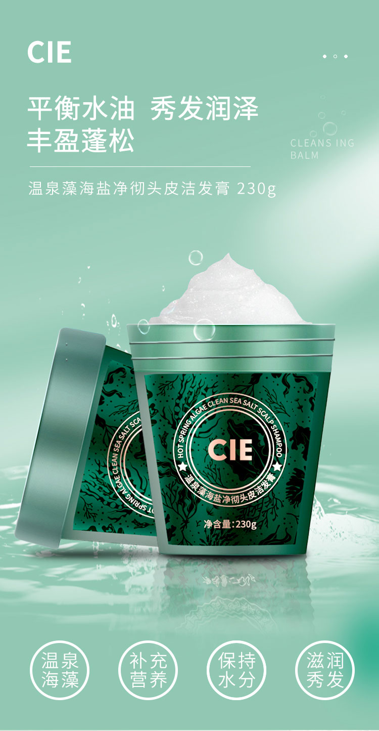 买一送一【CIE海盐洗发膏】平衡水油秀发润泽丰盈蓬松温泉海藻补充营养保持水分一冲即净洗头无忧虑触水起泡丝滑蓬松头皮