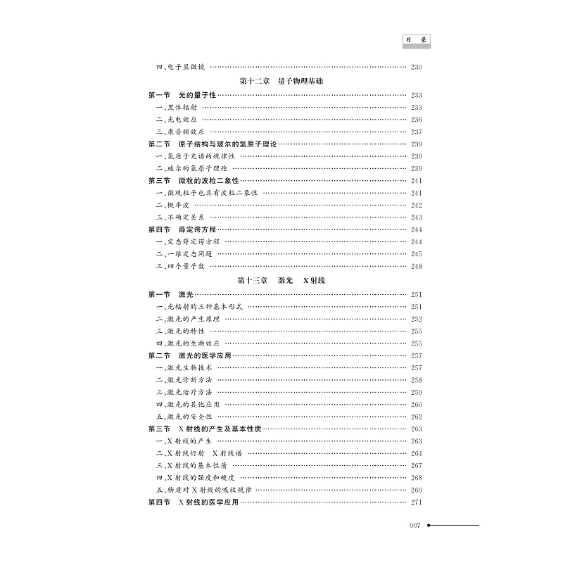 本书内容共14章,涉及到物理学的经典理论与现代技术发展前沿,基本涵盖了医学各专业所需的物理学基础理论及在医学中的重要应用。在每章开始都对本章内容进行了简单说明,每章附有练习题,难易适中,既考虑了对知识点的覆盖面,又注意了题型的多样性。