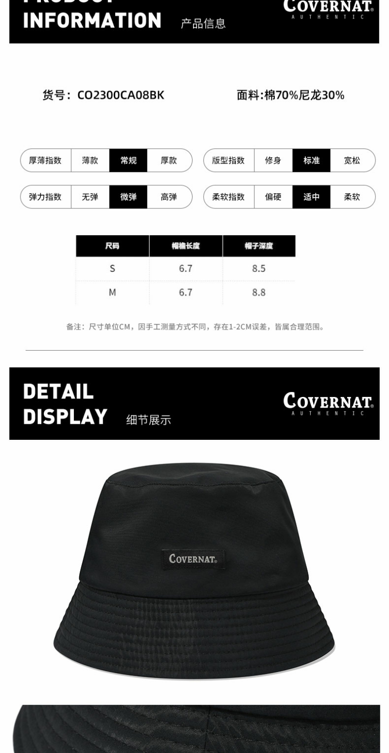 Covernat渔夫帽春季新品经典字母logo白色帽子防晒遮阳帽CO2300CA08BK