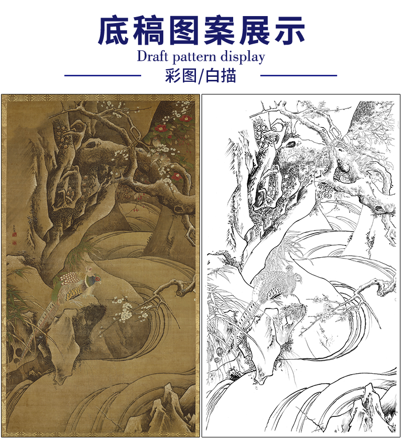 吕纪花鸟工笔画白描底稿《四季花鸟图》临摹勾线高清打印稿MD13