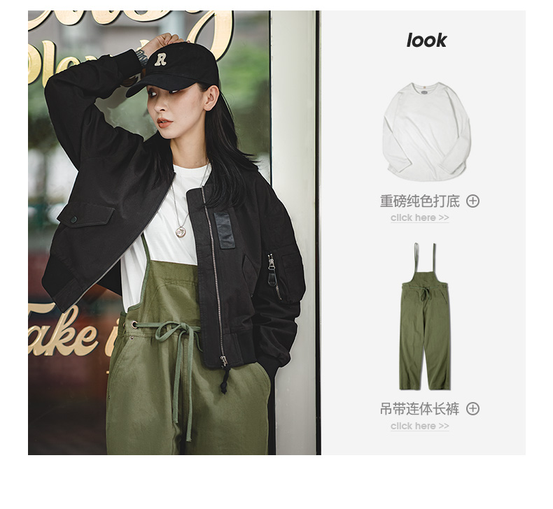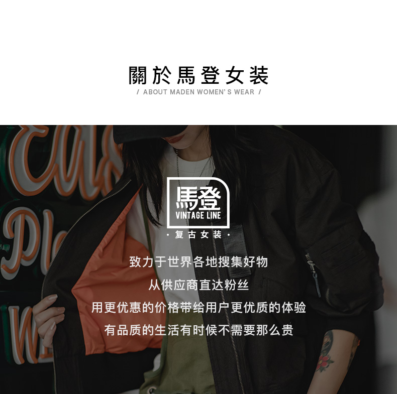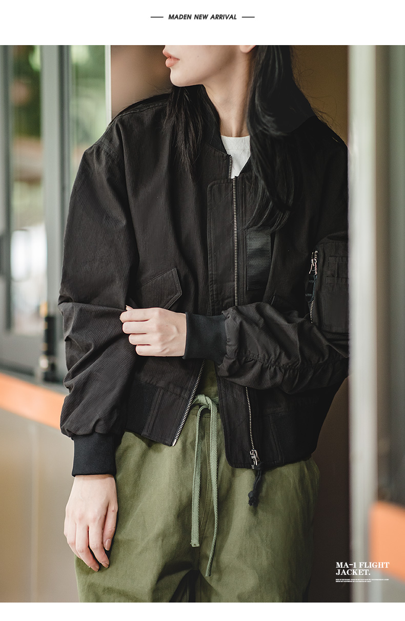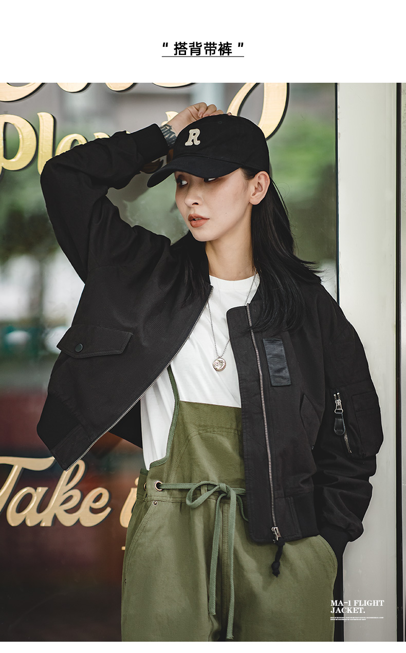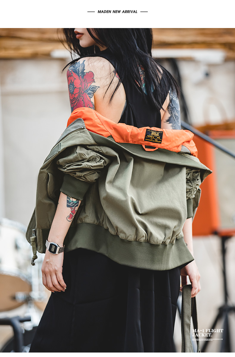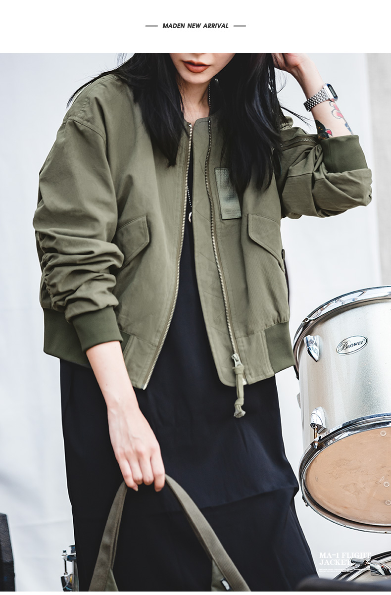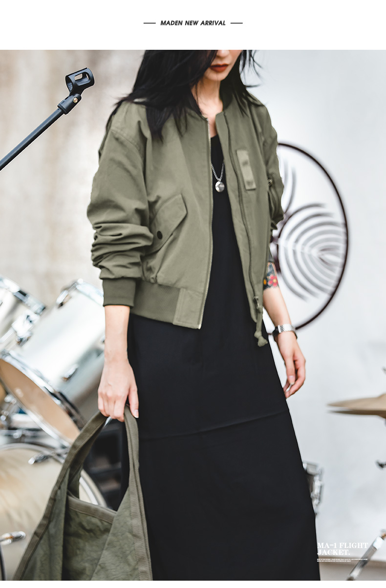 马登美式飞行员外套女立领夹克工装外套短款棒球服上衣春秋女