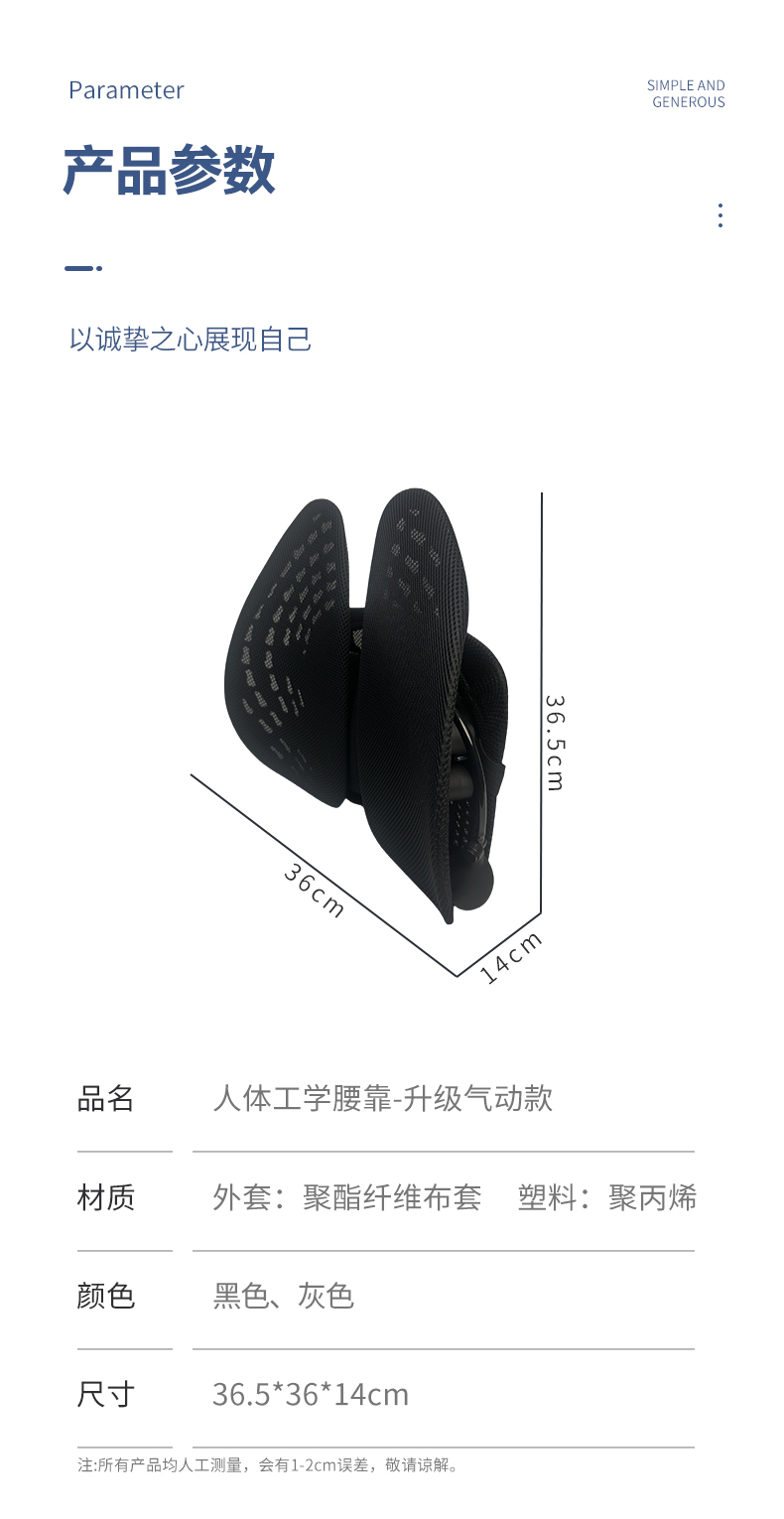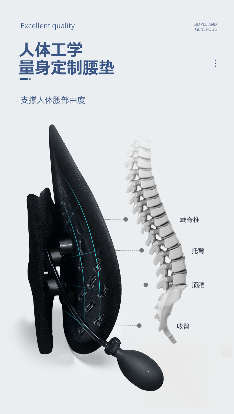 【全新升级气动款 背板包裹】柔先生人体工学腰靠(气动款) 气囊调节 舒适透气