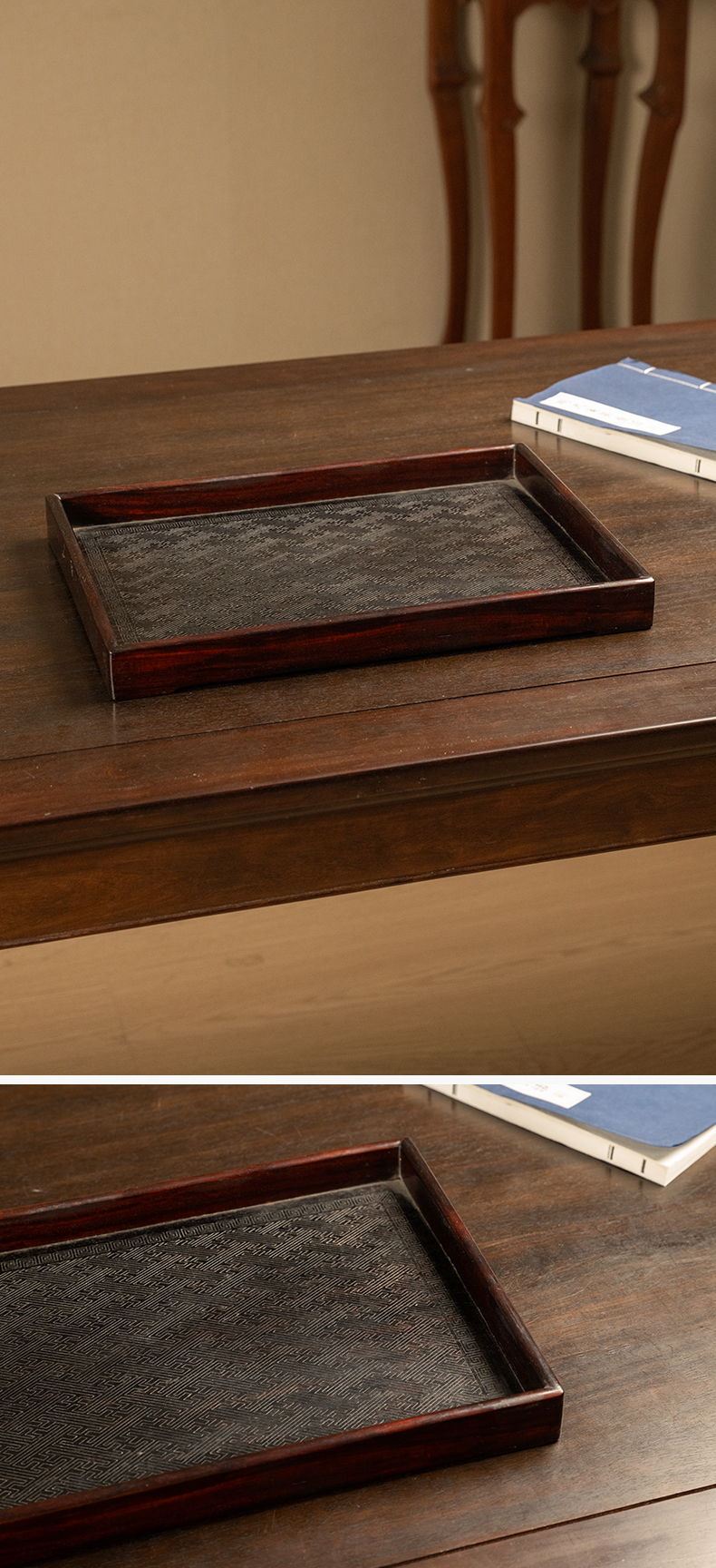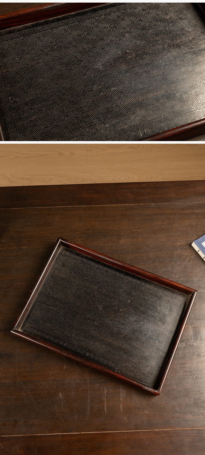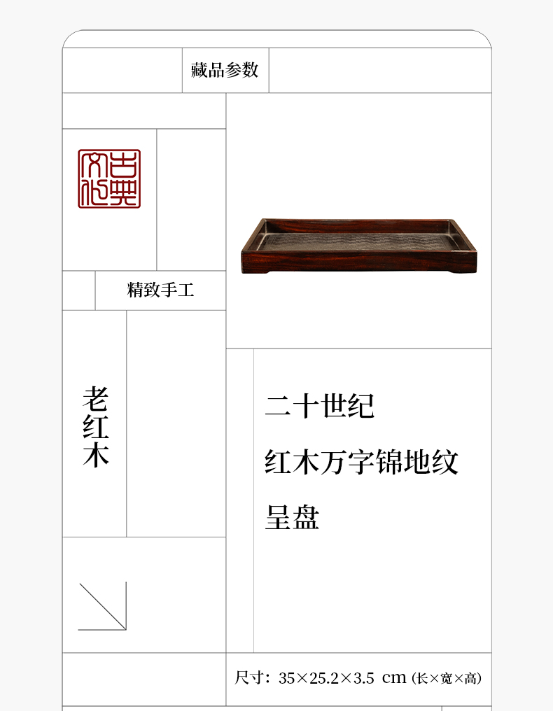 二十世纪 红木万字锦地纹呈盘