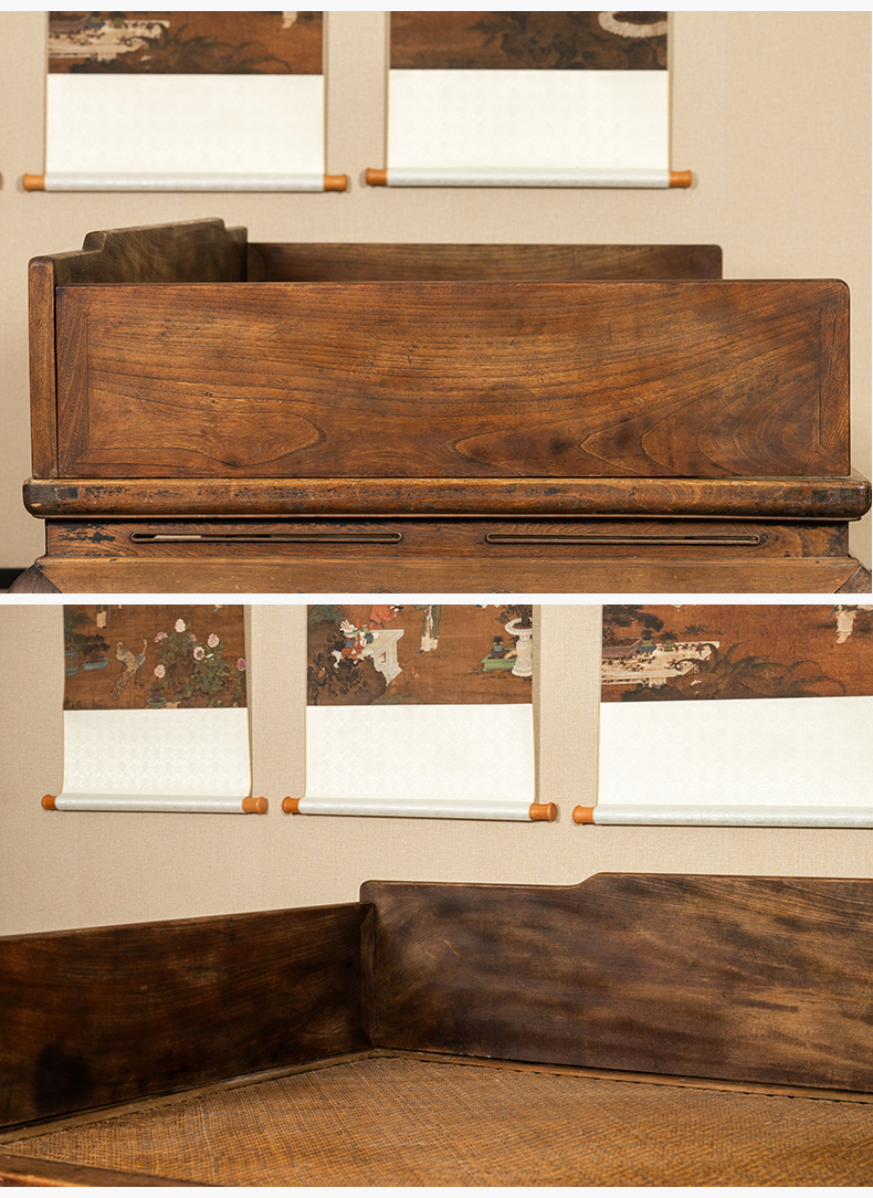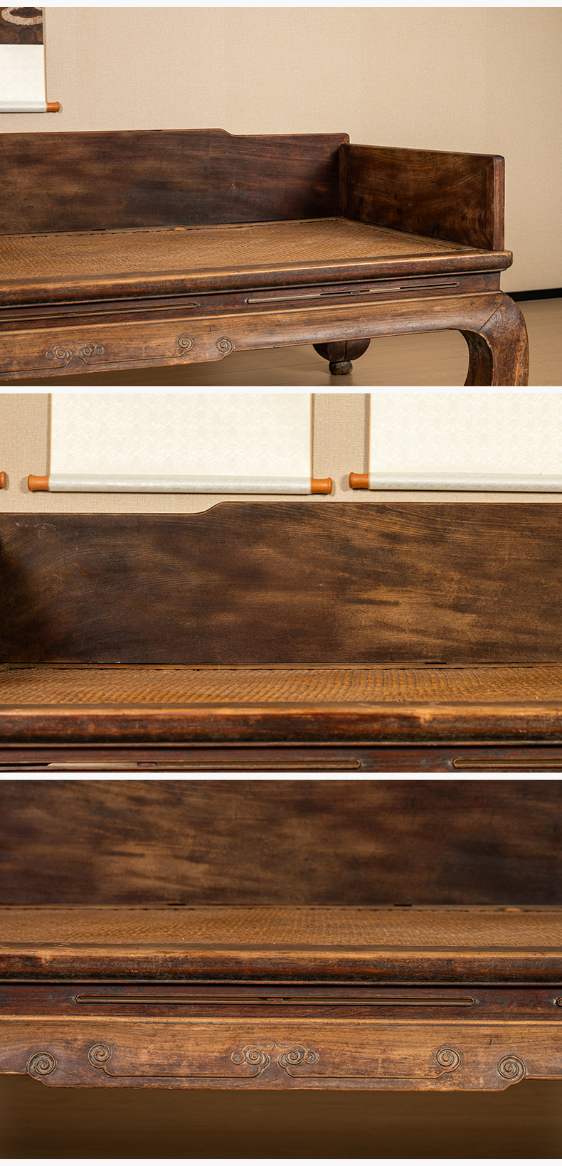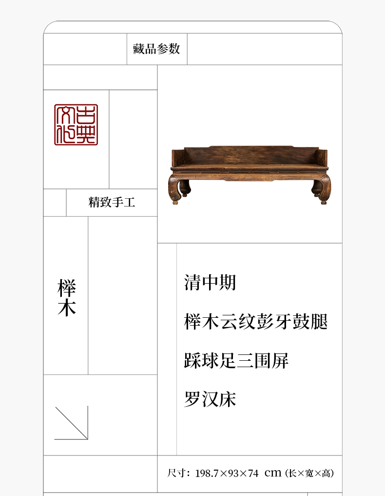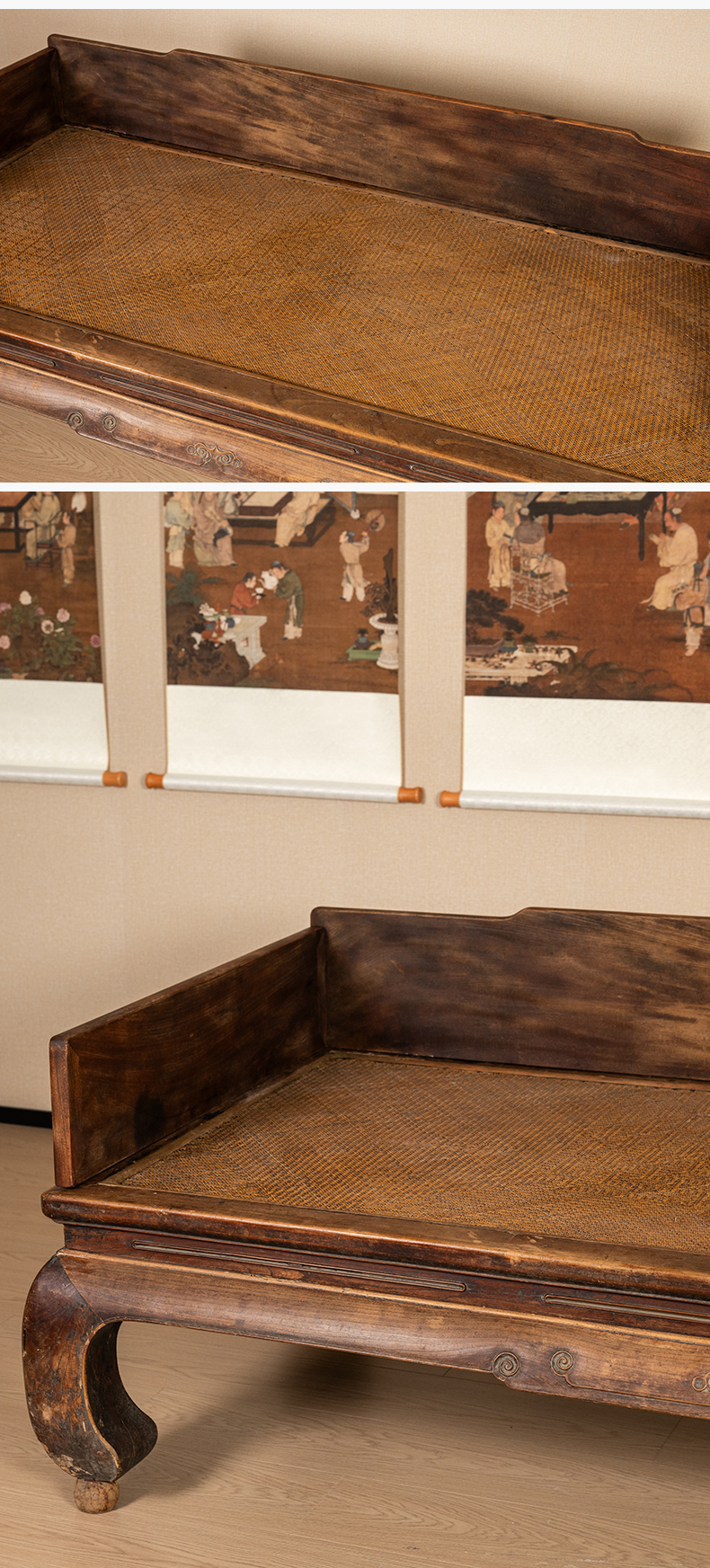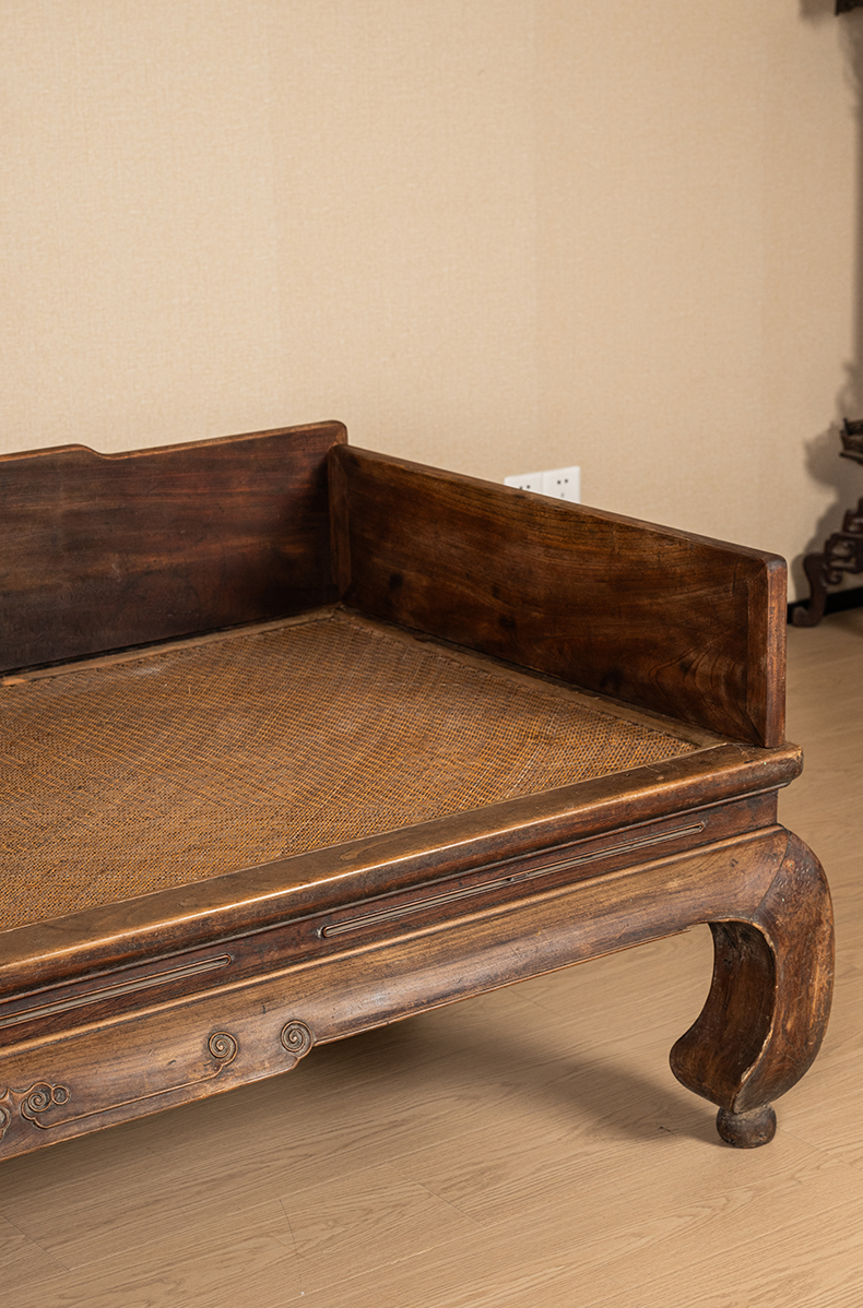 清中期 榉木云纹彭牙鼓腿踩球足三围屏罗汉床