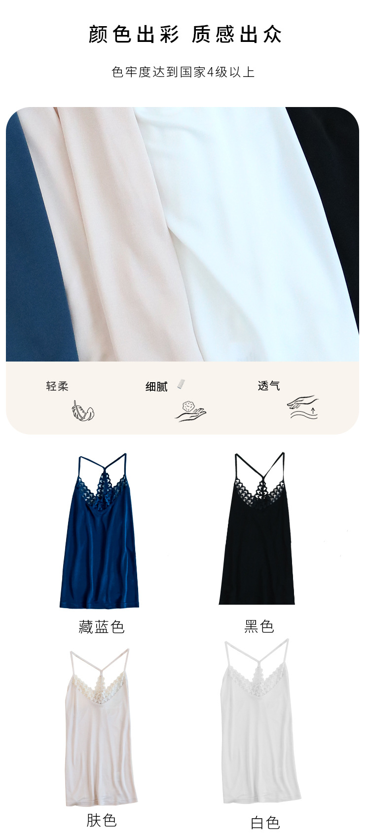 TG-TG03S235真丝吊带背心女 蕾丝性感美背桑蚕丝上衣打底外穿百搭