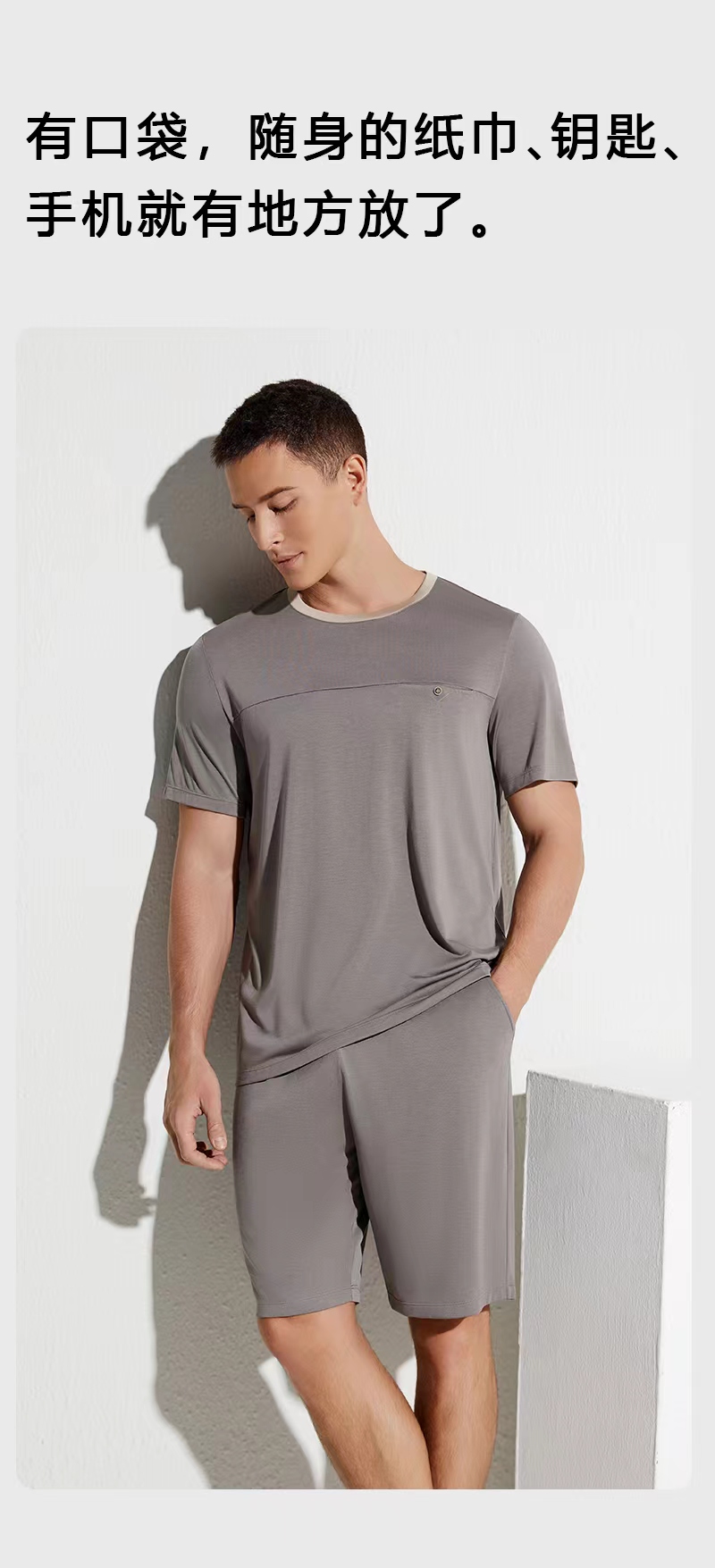 【品名】LS竹纤维男士圆领半袖短裤家居套96061