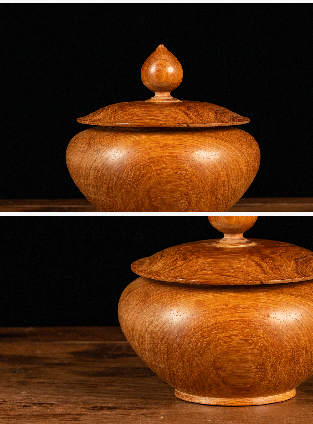 黄花梨整挖荷叶盖罐