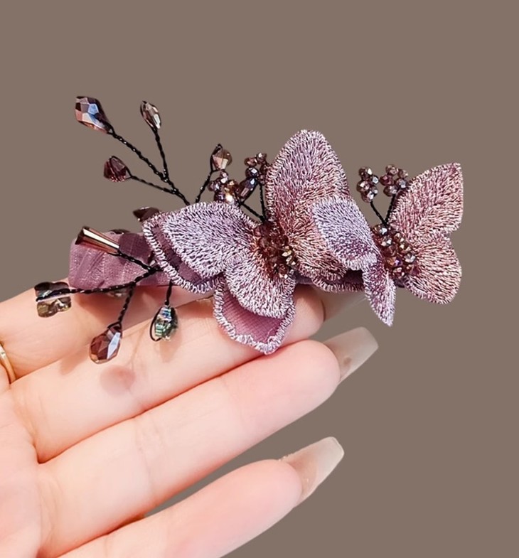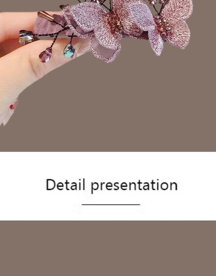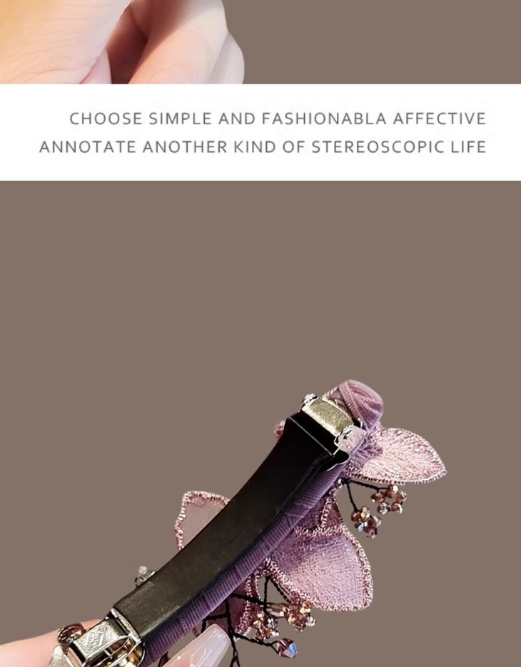 浪漫紫色仿水晶蝴蝶发夹高档横夹一字夹后脑勺弹簧夹顶夹发卡头饰