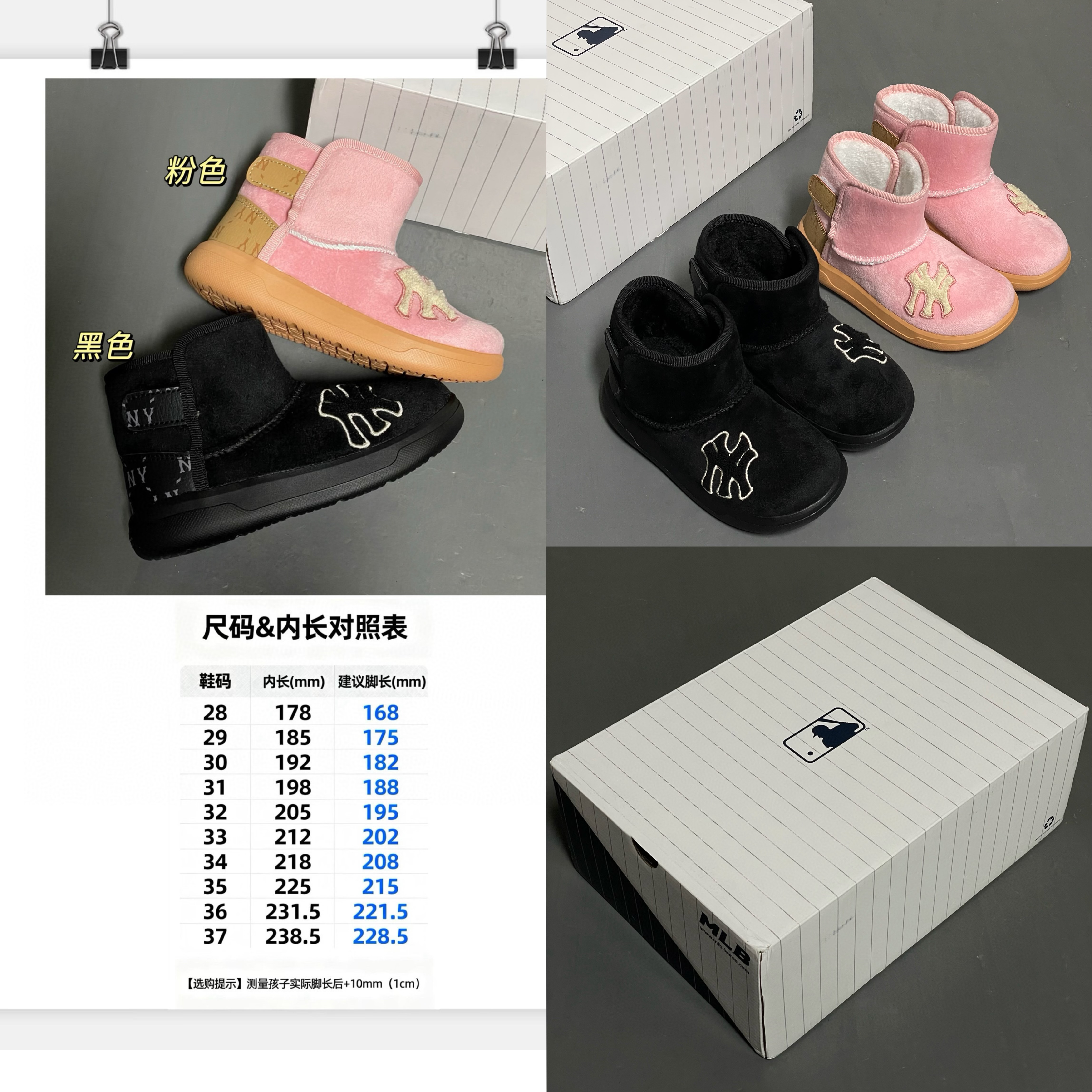 M*LB x NY联名设计,粉色甜酷、黑色百搭,男女宝宝都能穿~✨ 核心亮点:内里加绒锁温保暖,防滑橡胶底稳固不滑,上脚柔软舒适,日常穿搭超百搭! 全新带盒发货,尺码:28-37码 全覆盖,承包宝宝秋冬时尚与温暖,上学、出游都适配~