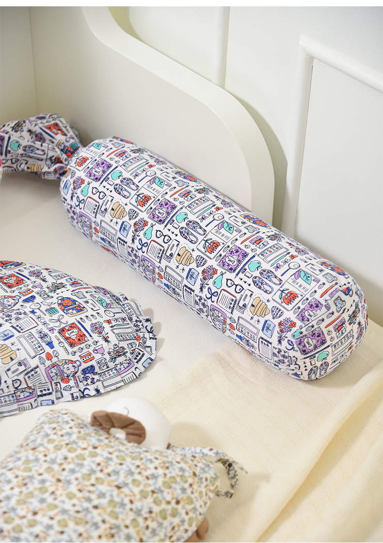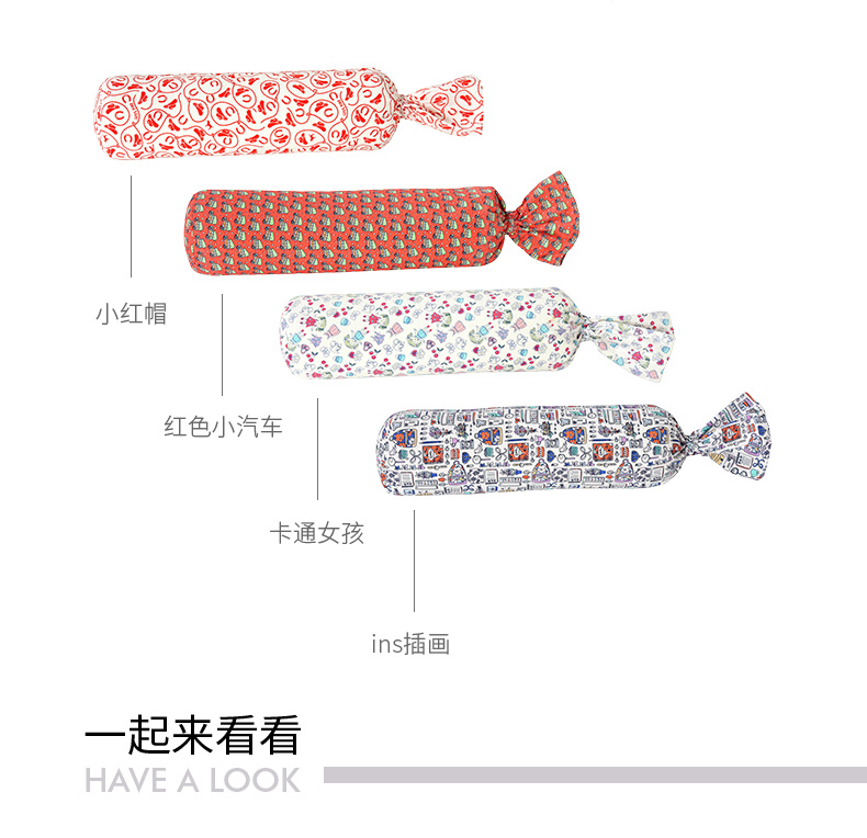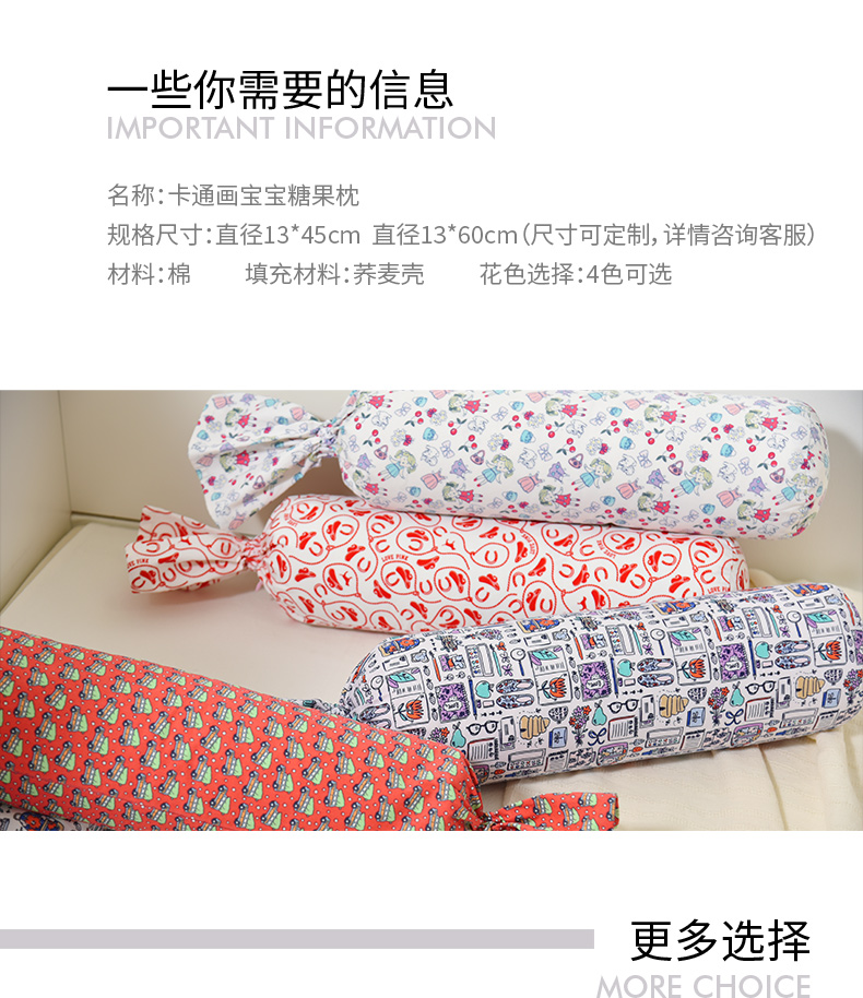 卡通画宝宝儿童糖果枕抱枕睡觉荞麦壳枕头圆柱枕单人家用卡通可拆洗