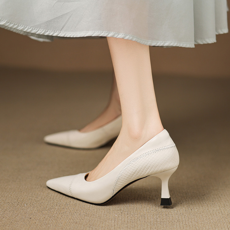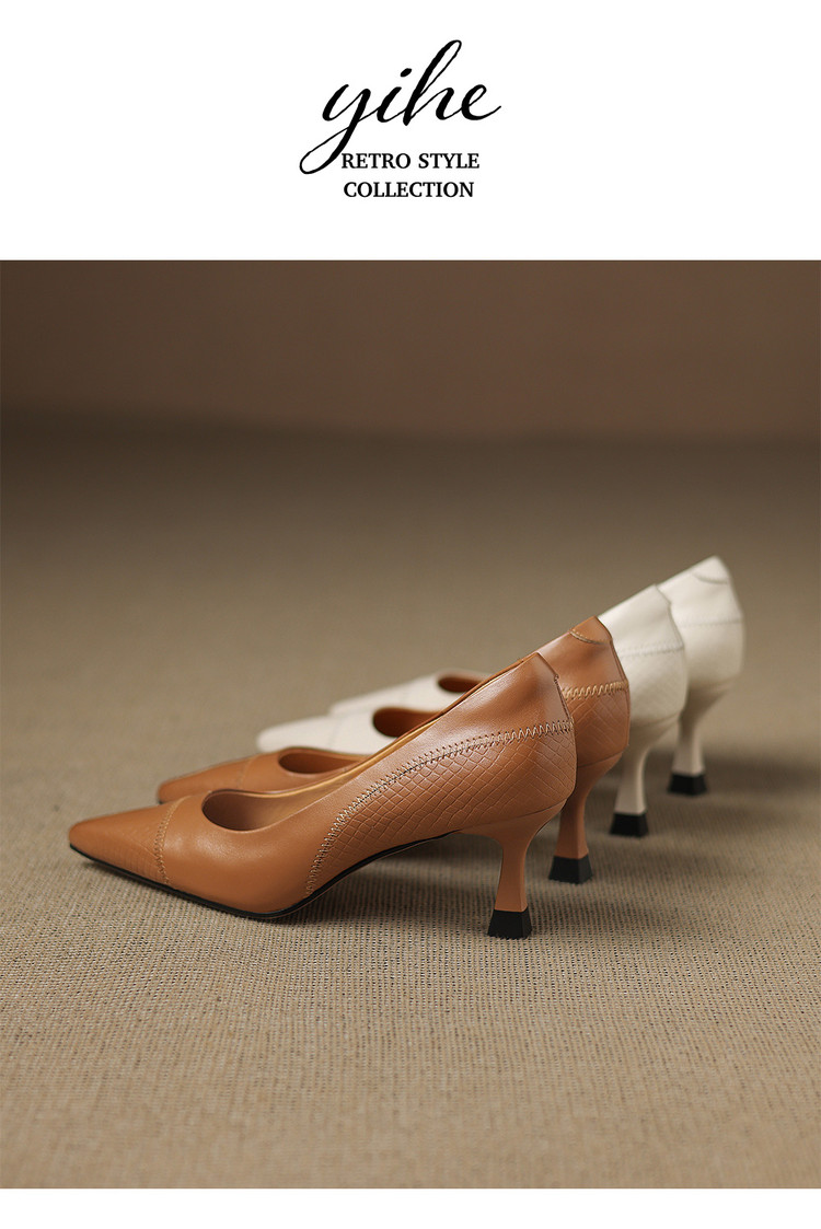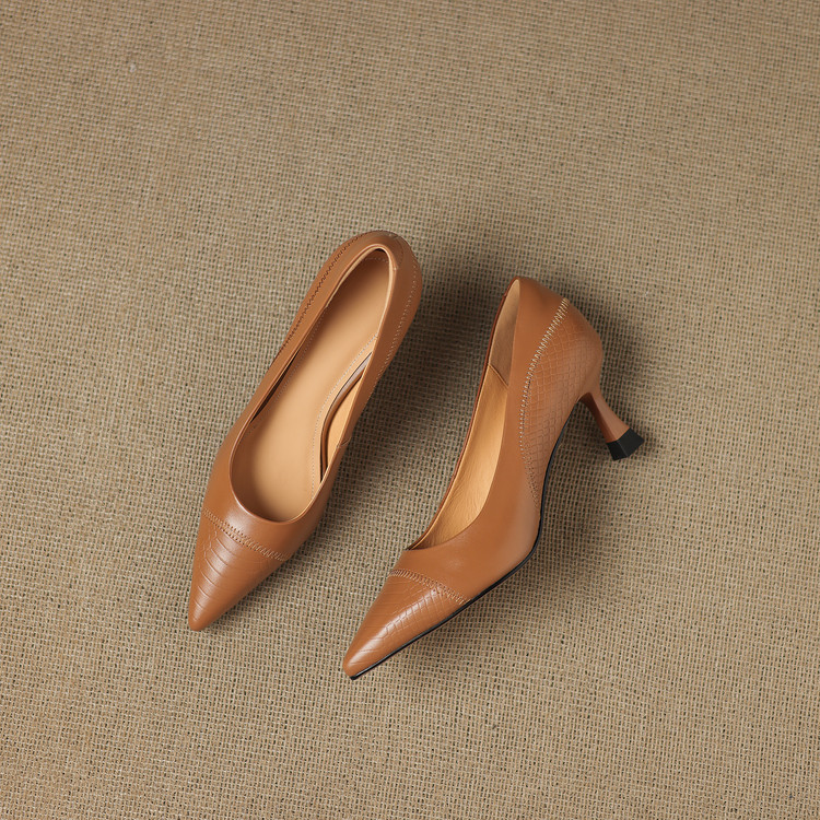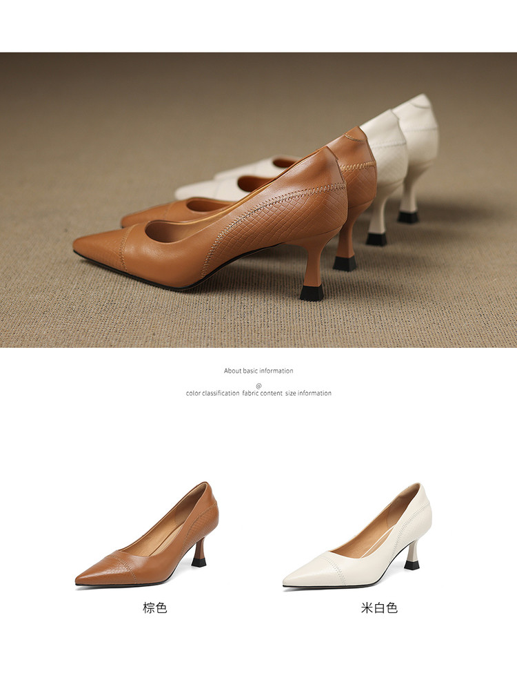 【预售5天】新款春秋法式棕色软牛皮尖头单鞋女浅口中跟细跟气质百搭FDME&FD9210